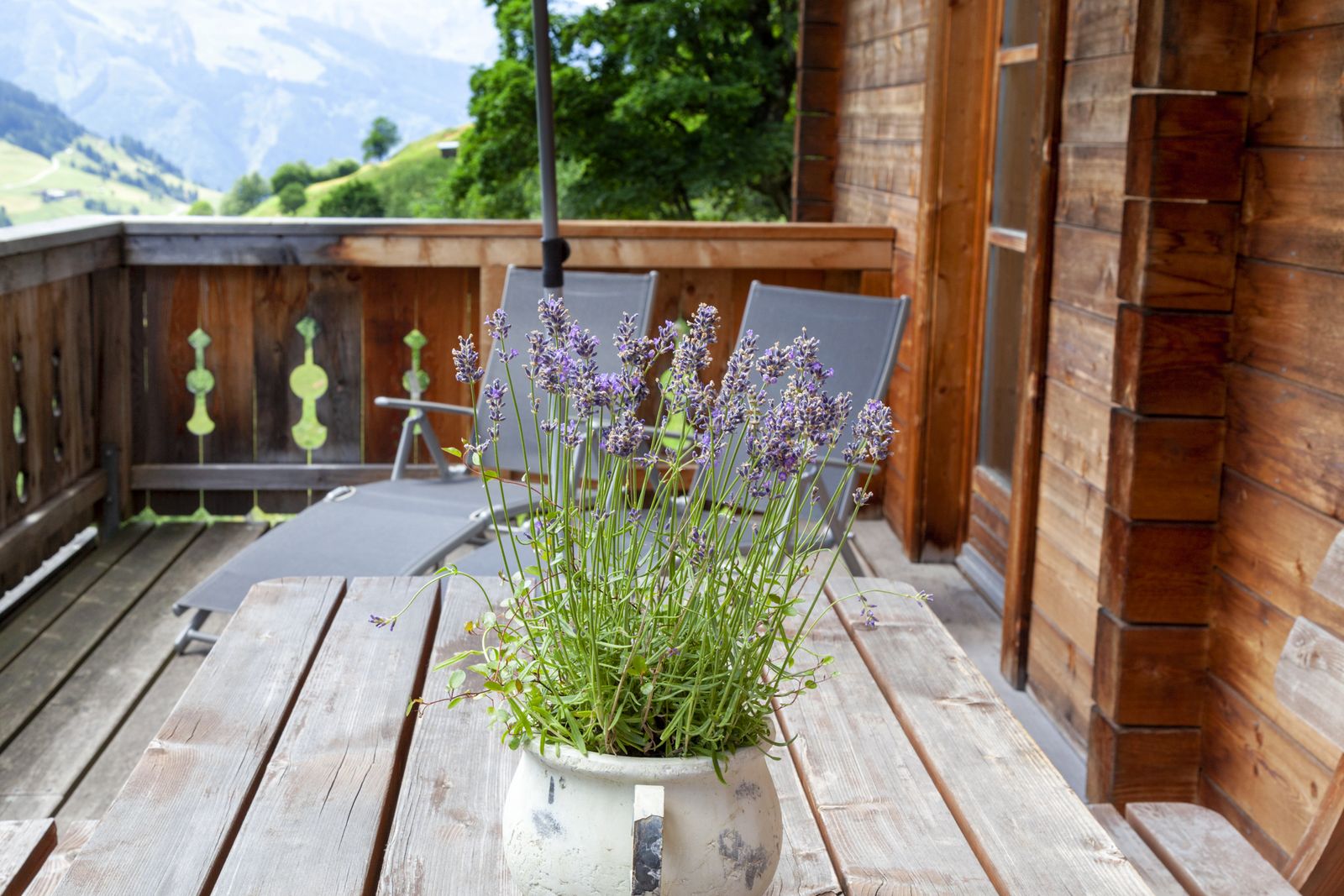 - möblierter Balkon und Liegewiese