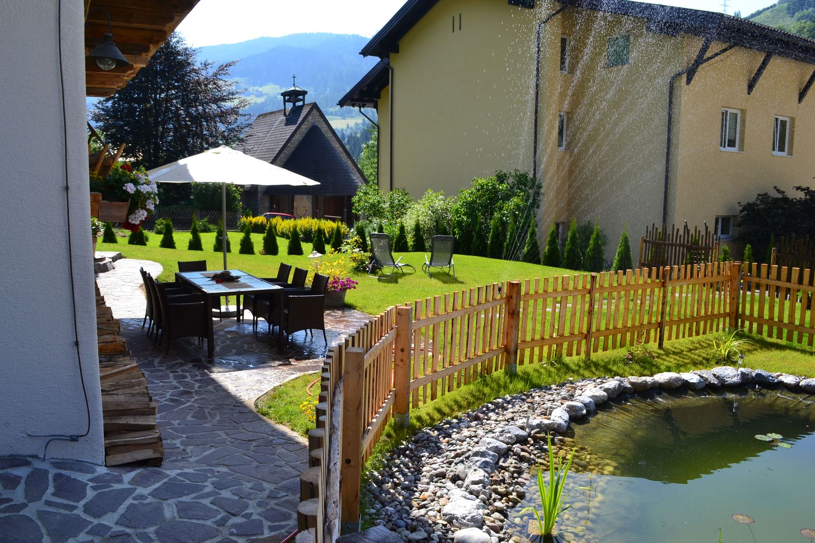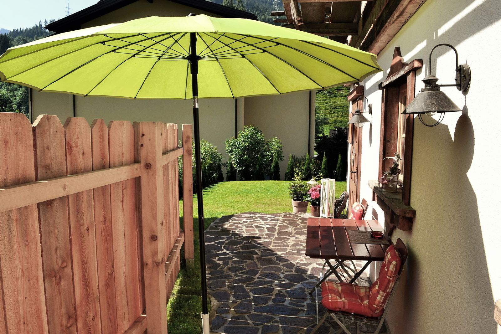 - Terrasse mit Gartengrill und Gartenmöbel