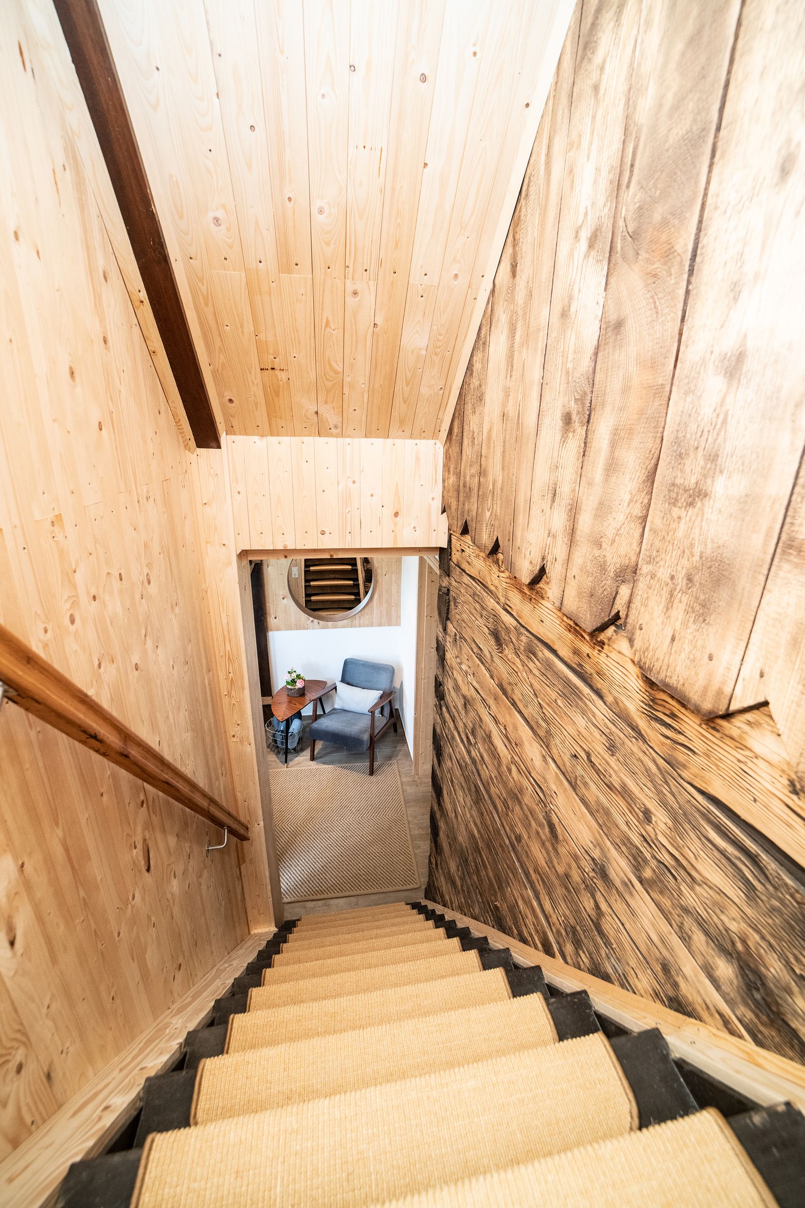 - Die Schlafzimmer sind über eine steile Treppe erreichbar