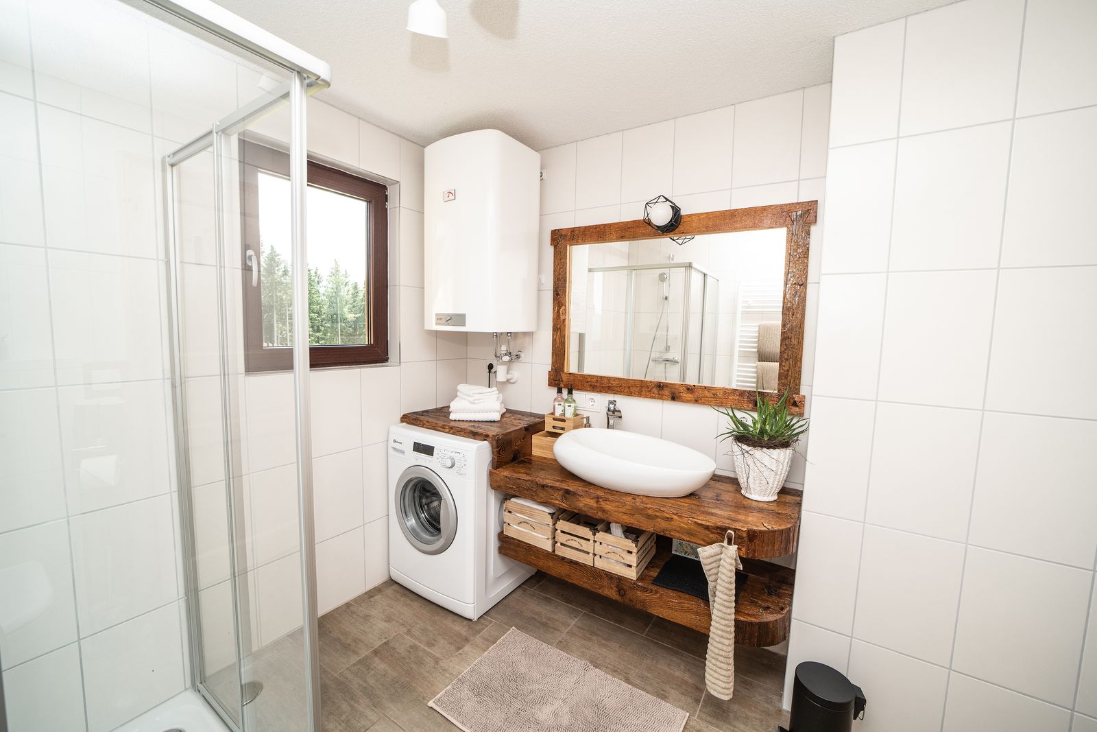 - Waschmaschine und Wäscheständer, sowie Bügeleisen und Bügelbrett vor Ort
