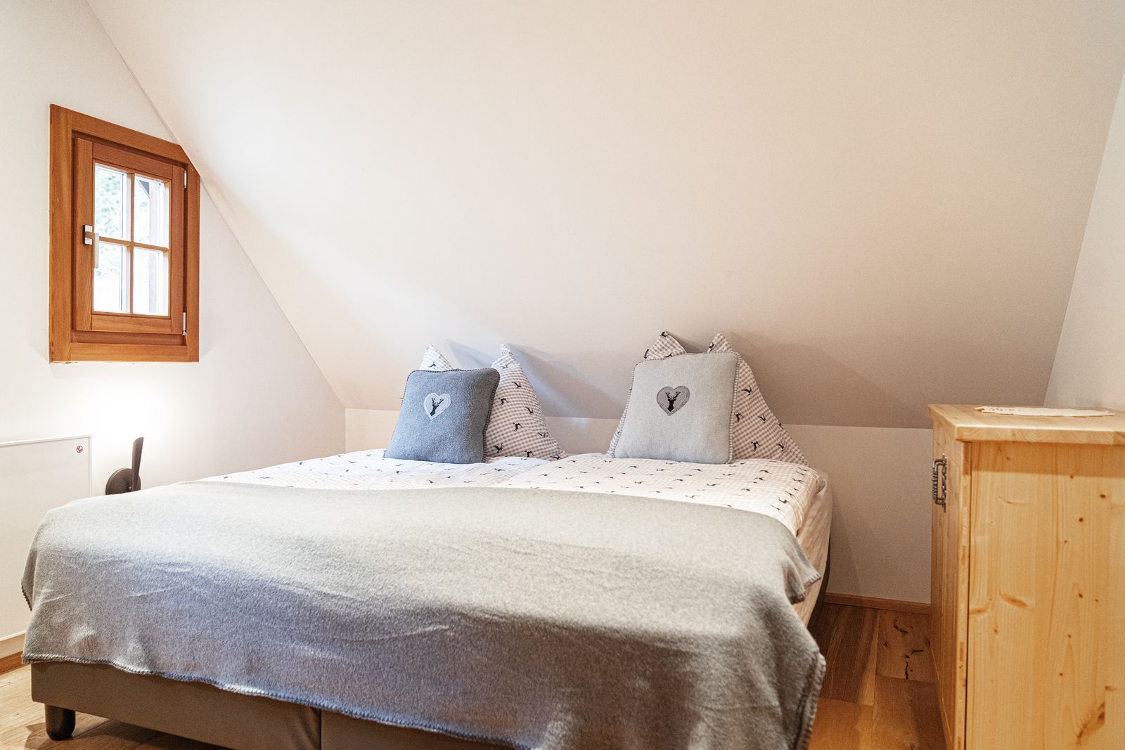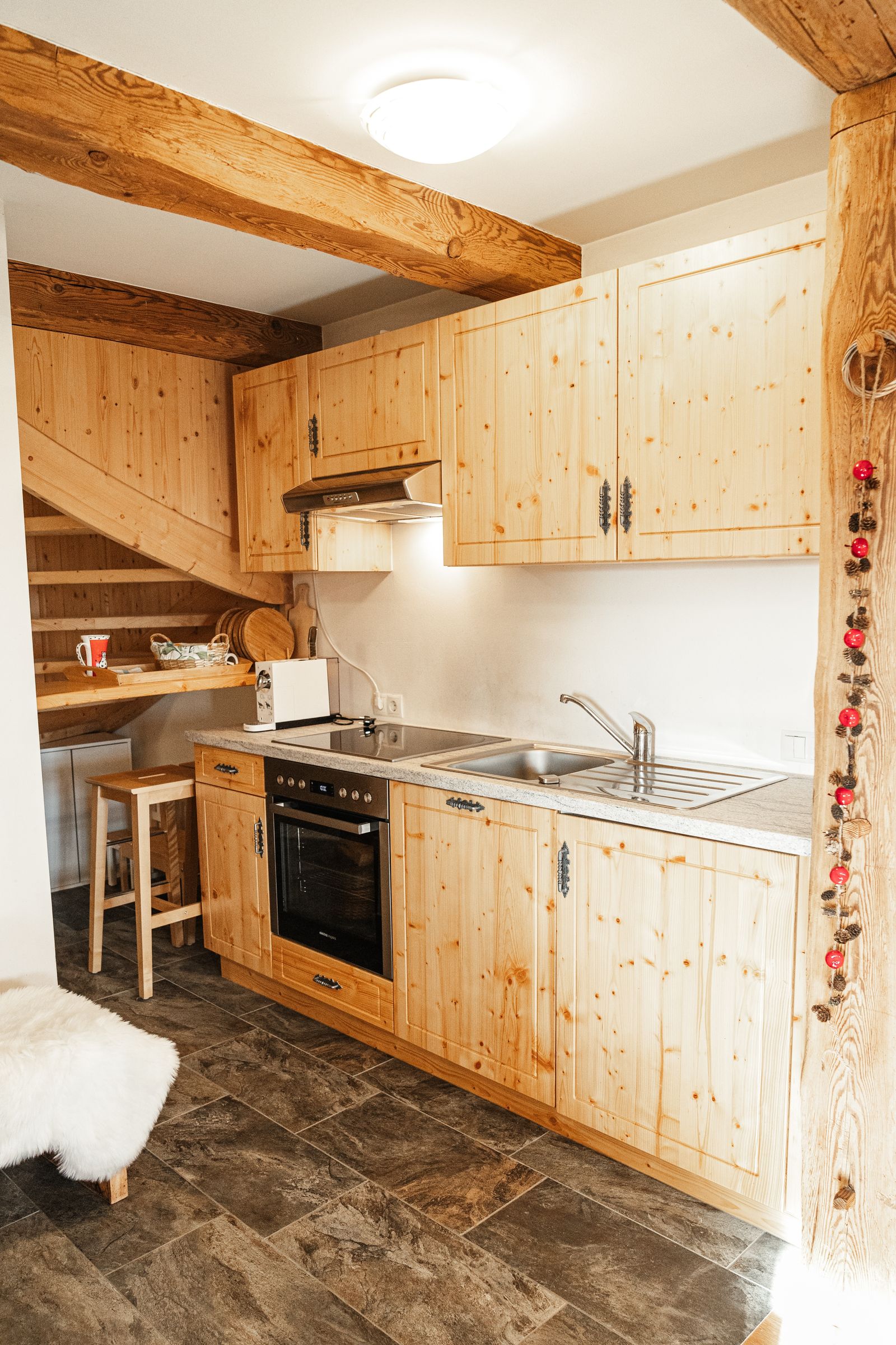 Das Innere der Hütte besticht durch seine gemütliche Atmosphäre und die hochwertige Ausstattung. Die voll ausgestattete Küche lädt zum Kochen ein und das geräumige Wohnzimmer mit seinem Schwedenofen bietet den perfekten Ort für gesellige Abende und Entspannung. Die Schlafzimmer sind komfortabel eingerichtet und versprechen erholsame Nächte nach einem ereignisreichen Tag in den Bergen. Außerdem gibt es eine Sauna, einen SAT-TV und Wlan.