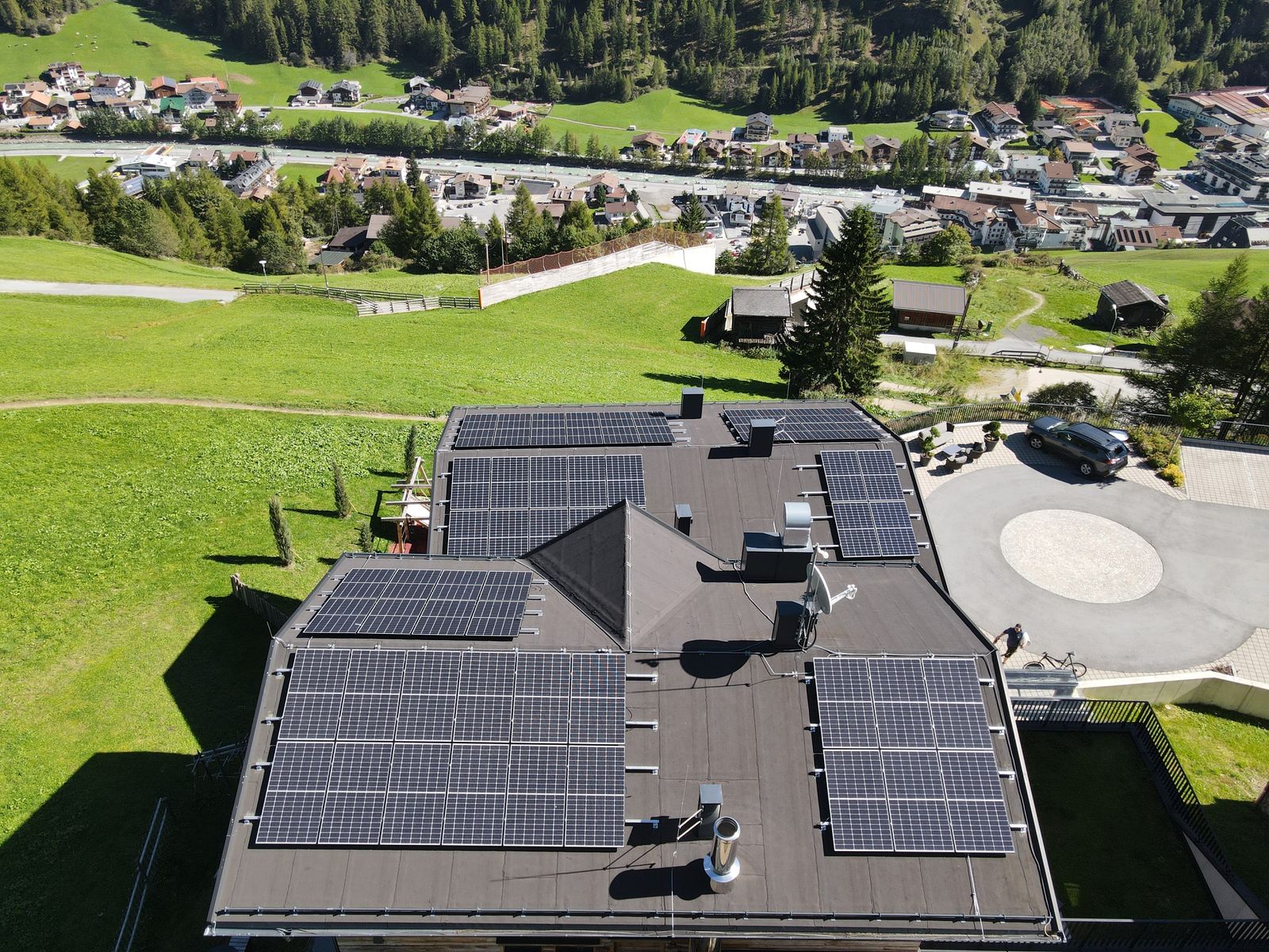 Mit der neuen 48 kwP Photovoltaikanlage werden der Strom für die Häuser, E-Tankstellen sowie die Erwärmung des Warmwassers selbst erzeugt.
