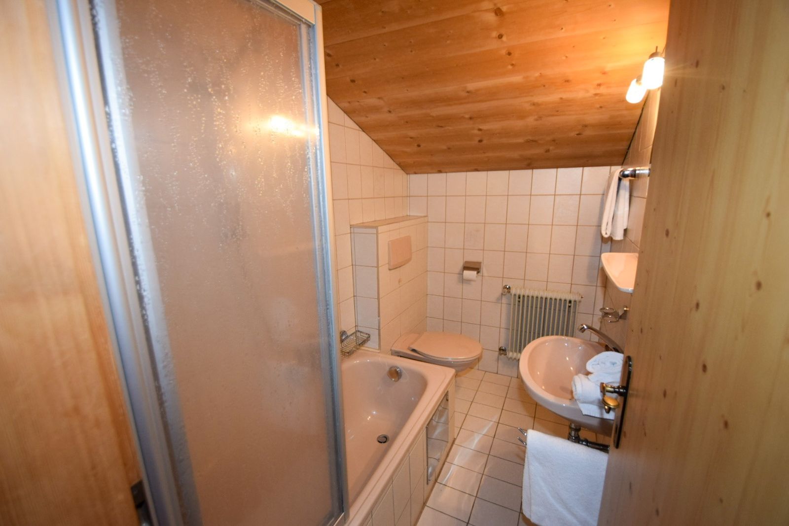 - 1 Badezimmer mit Waschbecken, Badewanne und WC