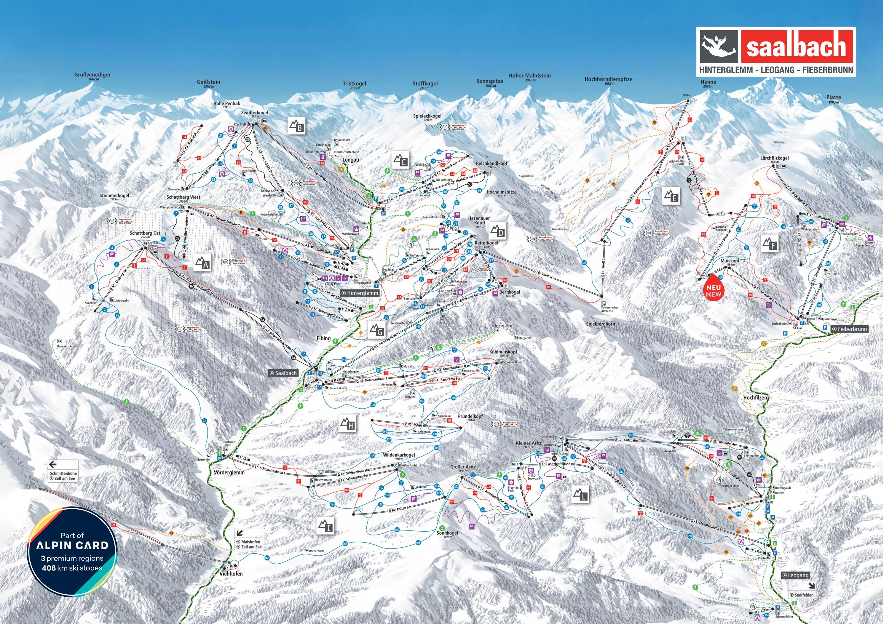Im Skicircus Saalbach Hinterglemm Leogang geht´s rund! Pulverschnee und Pistenspaß - perfekt präparierte Pisten den ganzen Winter lang! Mit den Top-modernen Beschneiungsanlagen ist die Wintersaison kompromisslos gesichert. Drei Snowparks und ein Boarder Cross stehen den Freestylern zur Verfügung. Der Monster Energy NIGHTPARK bei der Unterschwarzachbahn in Hinterglemm, sowie der NITRO SNOWPARK in Leogang und der Learn to Ride Easy Park sowie der Skier- & Boardercross am Bernkogel in Saalbach lassen die Freestyle-Herzen im Skicircus Saalbach Hinterglemm Leogang höherschlagen.