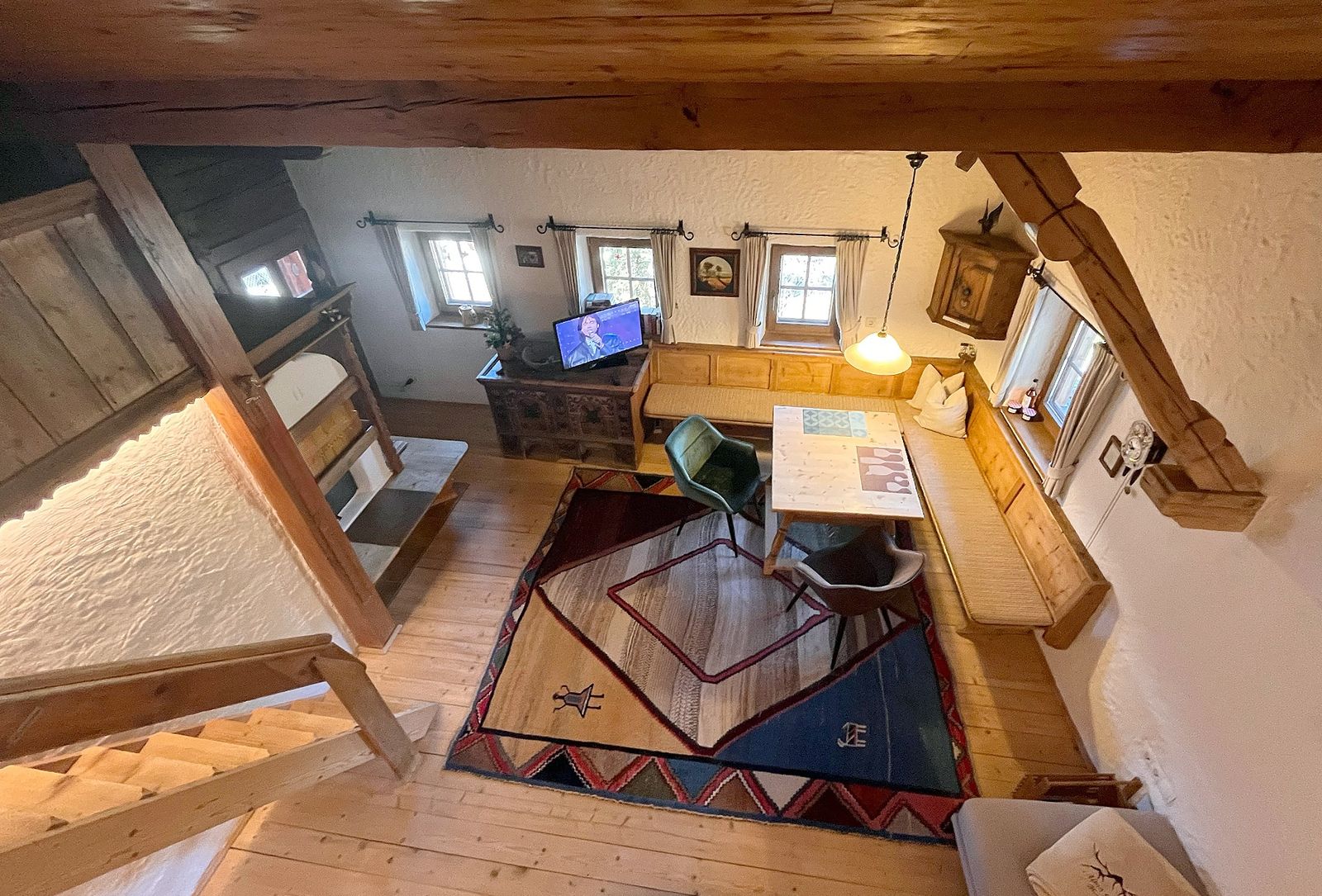 Die gemütliche ca. 55 m² große Maisonette-Wohnung »Edelweiß« liegt im oberen Seitentrakt des Hauses und bietet Platz für 2 bis 4 Personen. Im unteren Teil der Wohnung befinden sich die Küche, das Badezimmer, eine liebevoll eingerichtete Bauernstube mit Kachelofen und gemütlichem Ecksofa. Auf der Galerie gibt es zwei Doppelbetten, welche man über eine Leiter erreicht. Wohn- und Schlafbereich bilden somit zusammen einen schönen großen Raum mit direktem Zugang zu einem eigenen sonnigen Balkon, von dem Sie einen herrlichen Panoramablick genießen können. Selbst Haustiere dürfen sich hier wohlfühlen.