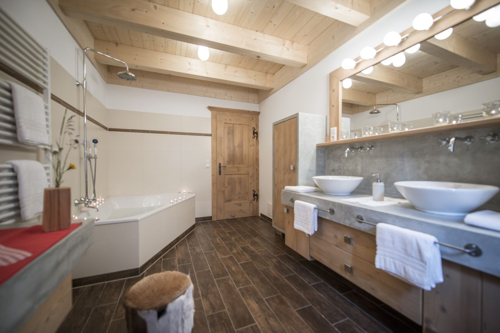 - 1 Badezimmer mit Badewanne, Dusche und 2 Waschbecken
