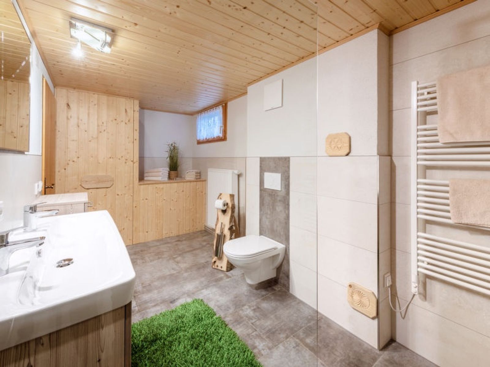 "Simons Blockhütte", 4-Zimmer-Chalet 120 m2 auf 3 Stockwerken. Teilweise renoviert im Jahre 2018, sehr gemütlich und mit viel Holz eingerichtet: Wohnzimmer mit Esstisch, Essecke, Sat-TV und Stereoanlage. 1 Zimmer mit 1 Doppelbett. Küche (Backofen, Geschirrspüler, 4 Glaskeramikplatten, Toaster, Wasserkocher, Mikrowelle, elektrische Kaffeemaschine). Dusche/WC. Unteres Geschoss: Dusche/WC. Obergeschoss: 1 abgeschrägtes Zimmer, Deckenhöhe 70 - 250 cm mit 2 Betten. Ausgang zum Balkon. 1 abgeschrägtes Zimmer, Deckenhöhe 70 - 250 cm mit 1 Doppelbett. Ausgang zum Balkon. Holzheizung. Holzdielenboden. 2 Balkone, Terrasse überdacht. Terrassenmöbel, Gartengrill (mobil), Abstellkammer. Sehr schöne Panoramasicht auf die Berge und das Tal. Zur Verfügung: Internet (WLAN, gratis). Bitte beachten: Nichtraucher-Haus. Maximal 1 Haustier/Hund erlaubt. Rauchmelder. Hinweis: Das Mitbringen eines Haustieres ist kostenfrei. Ab dem 2. Haustier werden Euro 25,-/Aufenthalt vor Ort berechnet.