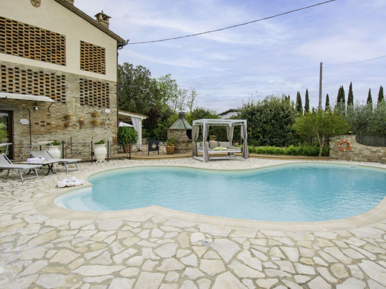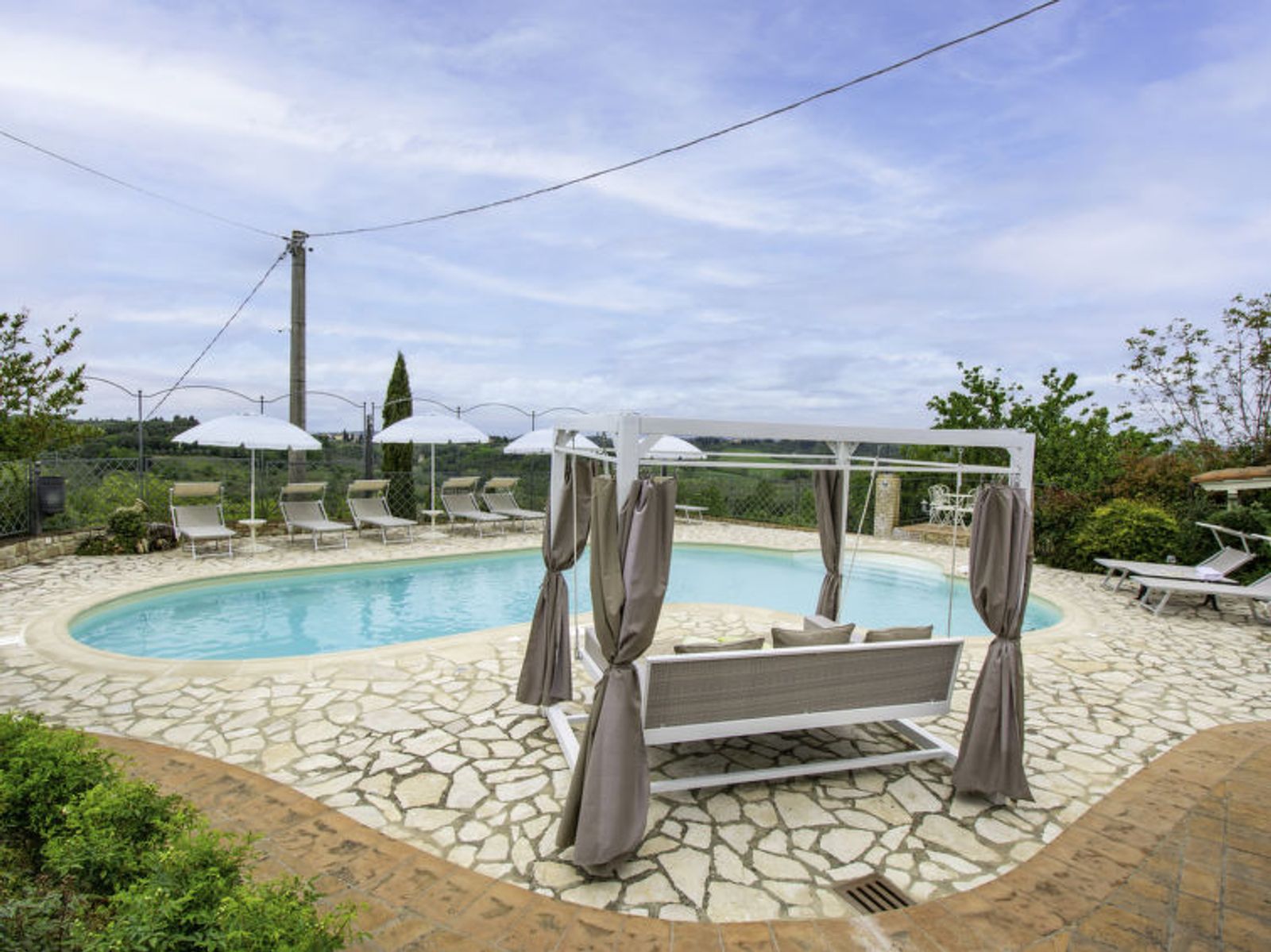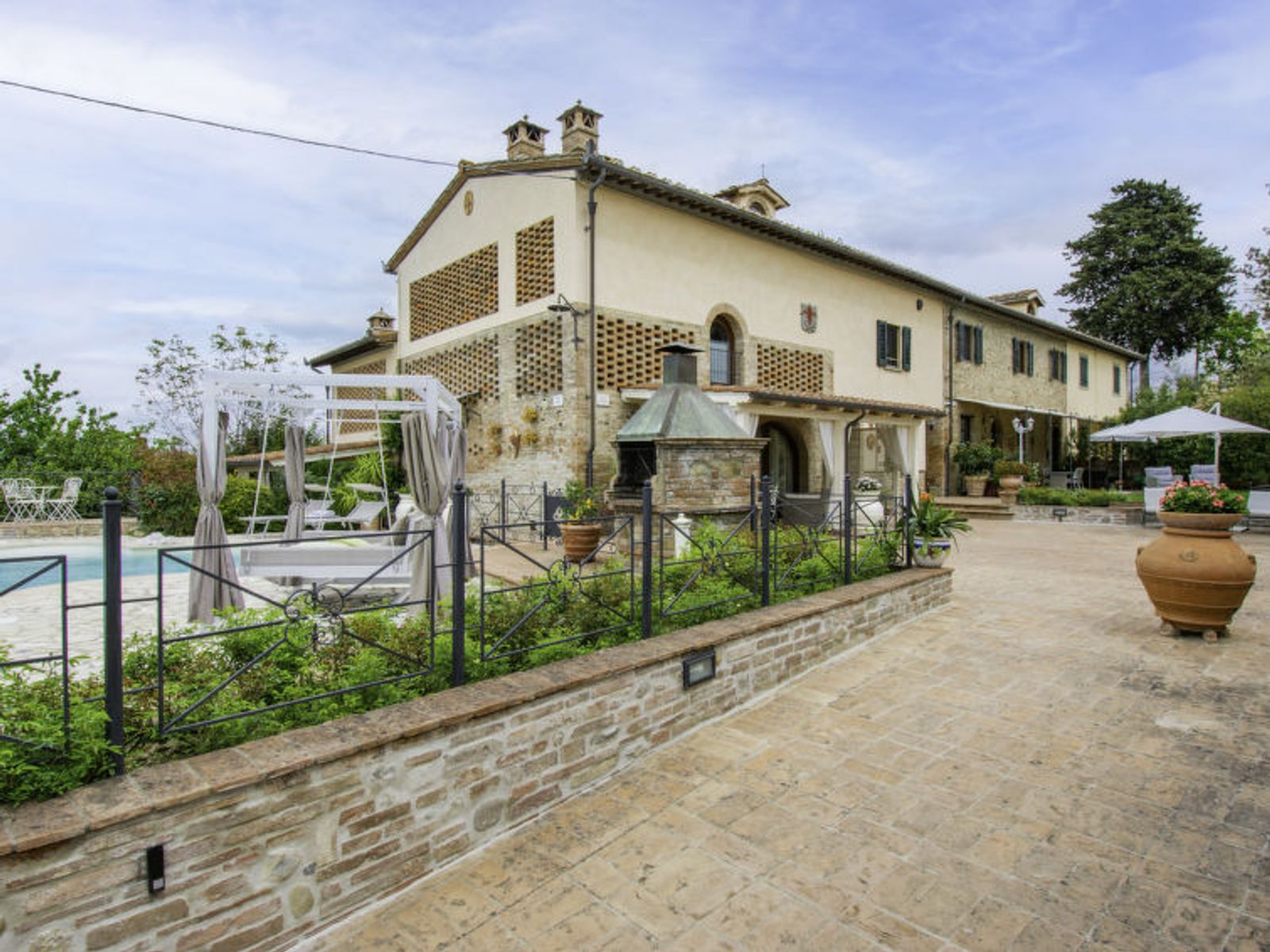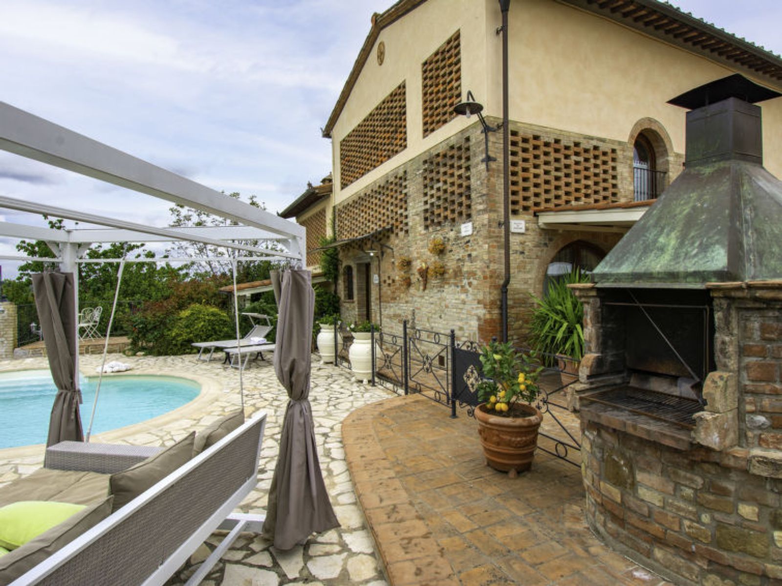 Schöner Landsitz "La Vecchia Pieve", auf 3 Stockwerken, einseitig angebaut, renoviert. Ruhige, sonnige Lage auf einem Hügel, im Grünen. Zur Mitbenutzung: Grundstück 15'000 m2, Garten (eingezäunt) Pflanzen und Blumen, Schwimmbad (4 x 14 m, 120 - 180 cm tief, saisonale Verfügbarkeit: 27.Mar. - 23.Okt.). Aussendusche, Tischtennis, Terrasse, Gartenmöbel, Grill (Rutschbahn, Schaukel). Zur Alleinbenutzung: gepflegter terrassierter Garten mit Pflanzen und Blumen. Terrasse, Gartenmöbel, Grill. In der Anlage: Wireless LAN, Waschmaschine (zur Mitbenutzung, extra), Heizung nur verfügbar von 01.Nov. - 29.Mar.. Parkplatz. Carport. Einkaufsgeschäft 3 km, Supermarkt 2.5 km, Restaurant 3 km, Bushaltestelle 4 km, Bahnstation "Castelfiorentino" 3 km. Golfplatz 14 km, Tennis 3 km, Reitstall 3 km. Nahe gelegene Sehenswürdigkeiten: Firenze 40 km, Siena 50 m, San Gimignano 20 km. Bitte beachten: Der Besitzer wohnt auf dem gleichen Grundstück. In der Unterkunft gibt es Kameras, die nur eventuelle Bewegungen aufzeichnen und von 1:00 am bis 6:00 am Uhr aktiv sind, zur Sicherheit der Gäste und des Hauses.