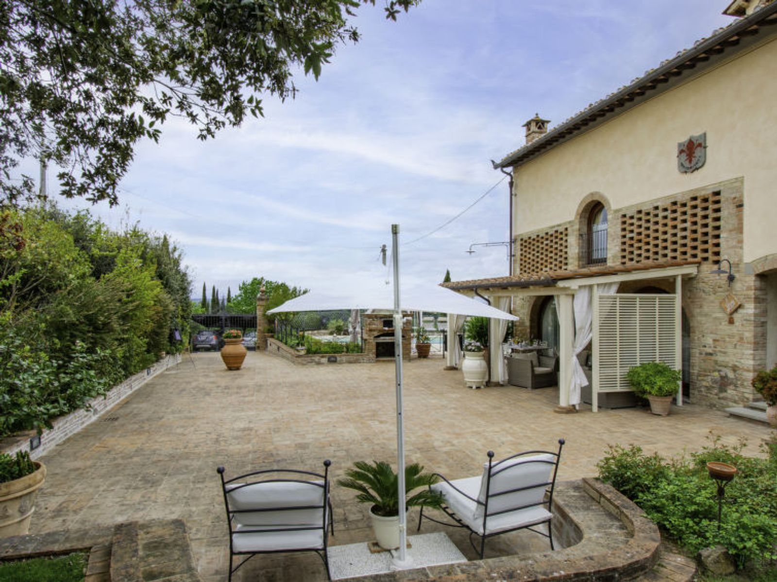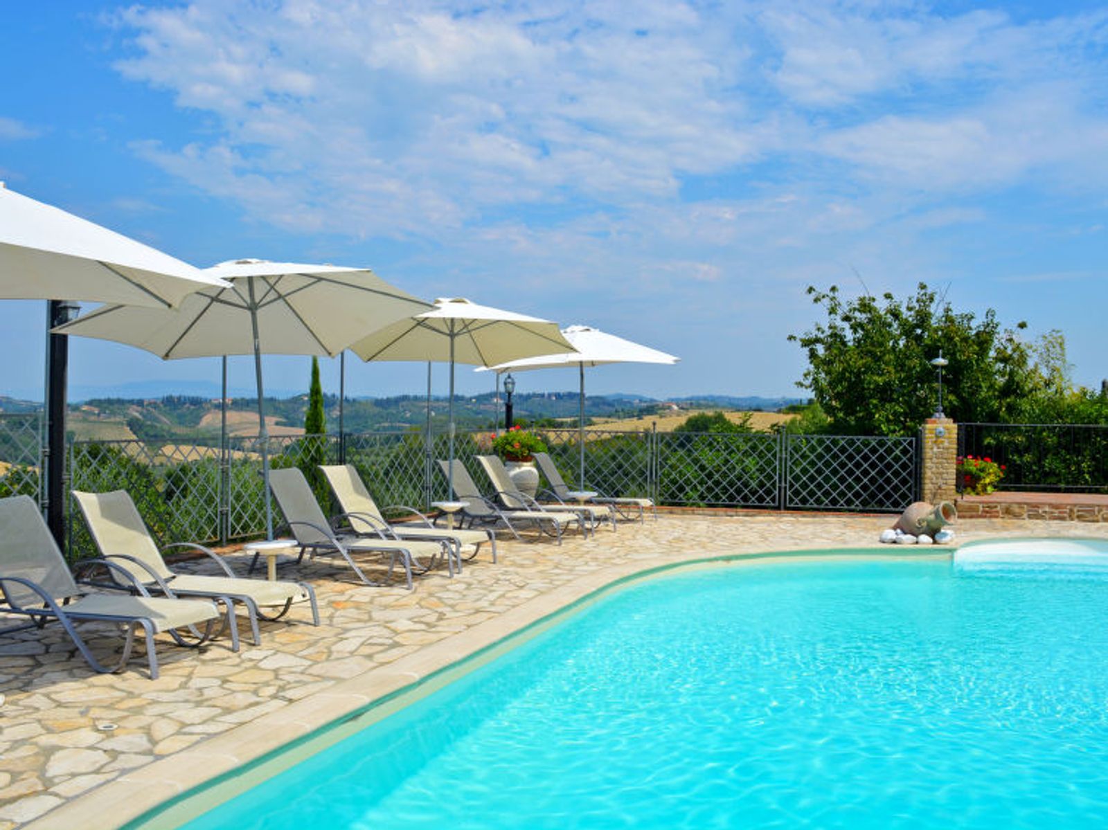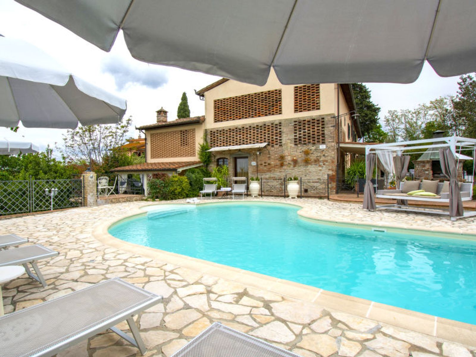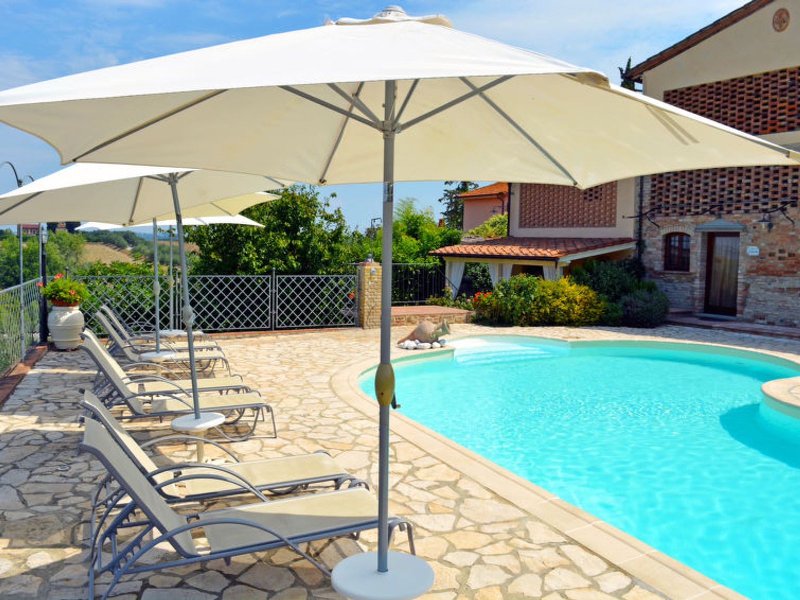 Schöner Landsitz "La Vecchia Pieve", auf 3 Stockwerken, einseitig angebaut, renoviert. Ruhige, sonnige Lage auf einem Hügel, im Grünen. Zur Mitbenutzung: Grundstück 15'000 m2, Garten (eingezäunt) Pflanzen und Blumen, Schwimmbad (4 x 14 m, 120 - 180 cm tief, saisonale Verfügbarkeit: 27.Mar. - 23.Okt.). Aussendusche, Tischtennis, Terrasse, Gartenmöbel, Grill (Rutschbahn, Schaukel). Zur Alleinbenutzung: gepflegter terrassierter Garten mit Pflanzen und Blumen. Terrasse, Gartenmöbel, Grill. In der Anlage: Wireless LAN, Waschmaschine (zur Mitbenutzung, extra), Heizung nur verfügbar von 01.Nov. - 29.Mar.. Parkplatz. Carport. Einkaufsgeschäft 3 km, Supermarkt 2.5 km, Restaurant 3 km, Bushaltestelle 4 km, Bahnstation "Castelfiorentino" 3 km. Golfplatz 14 km, Tennis 3 km, Reitstall 3 km. Nahe gelegene Sehenswürdigkeiten: Firenze 40 km, Siena 50 m, San Gimignano 20 km. Bitte beachten: Der Besitzer wohnt auf dem gleichen Grundstück. In der Unterkunft gibt es Kameras, die nur eventuelle Bewegungen aufzeichnen und von 1:00 am bis 6:00 am Uhr aktiv sind, zur Sicherheit der Gäste und des Hauses.