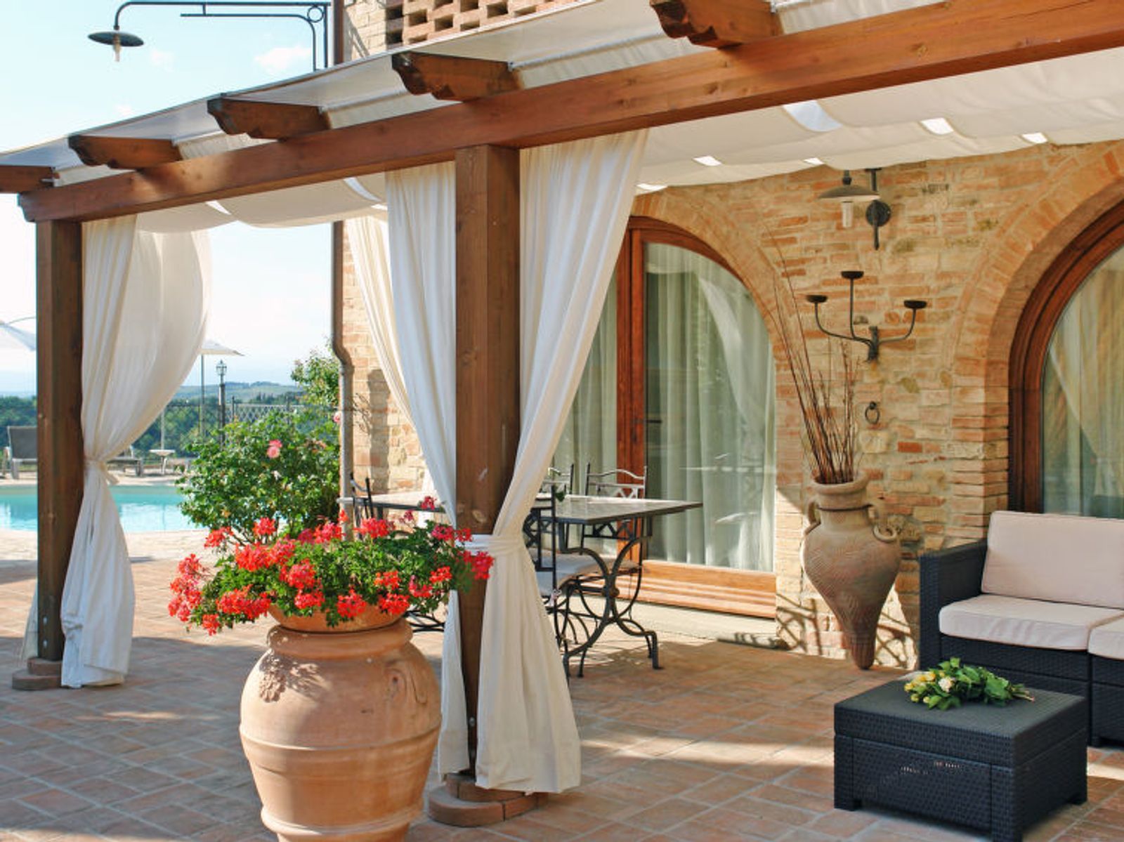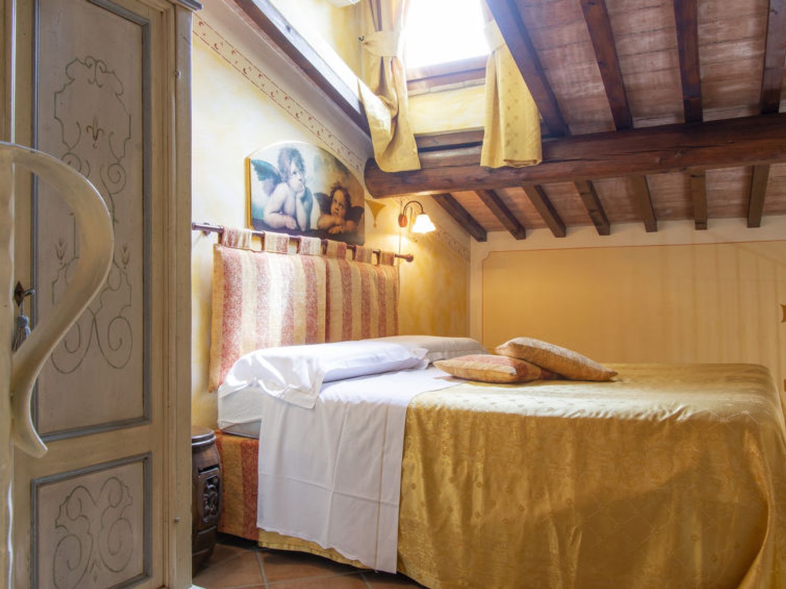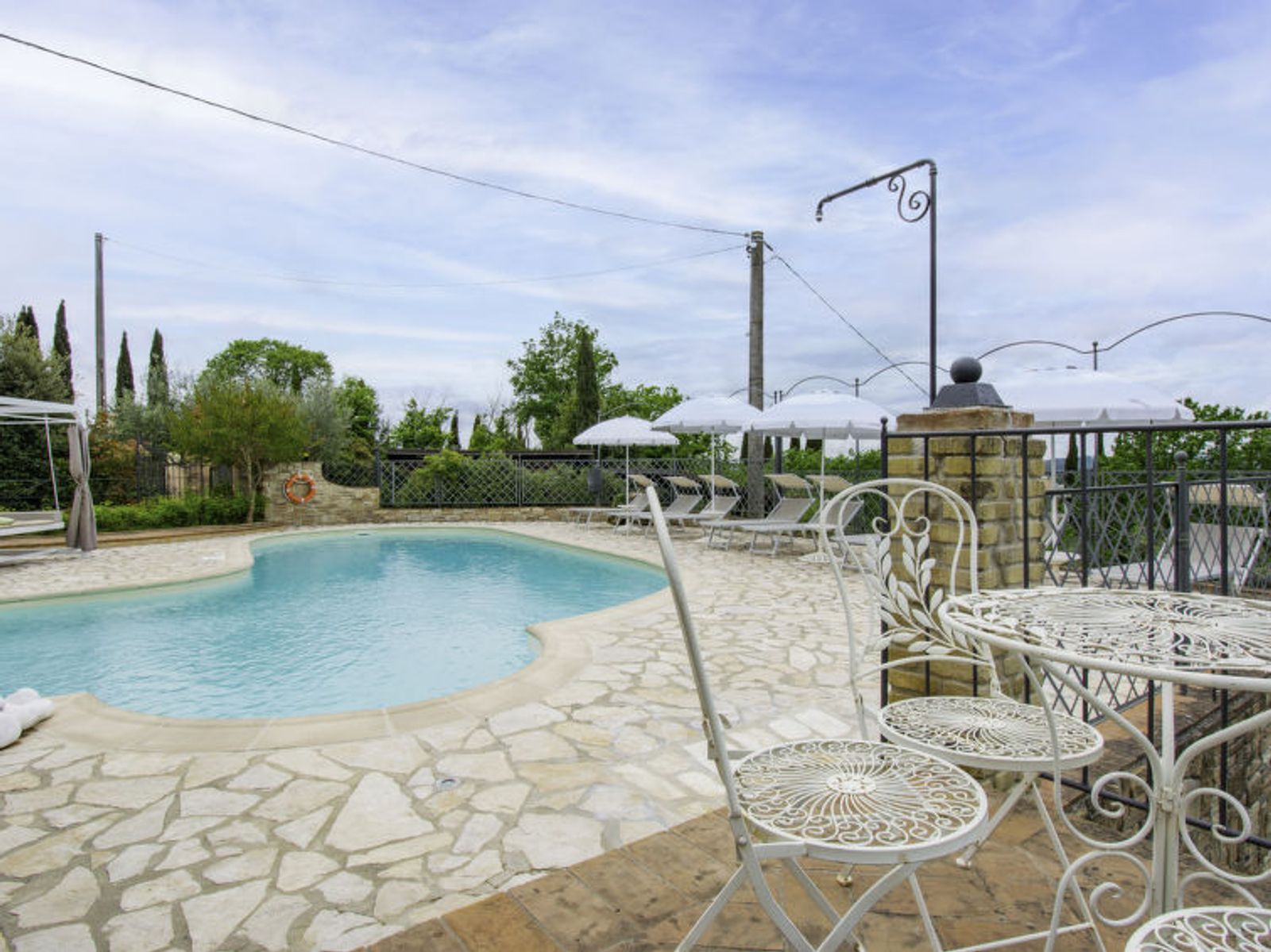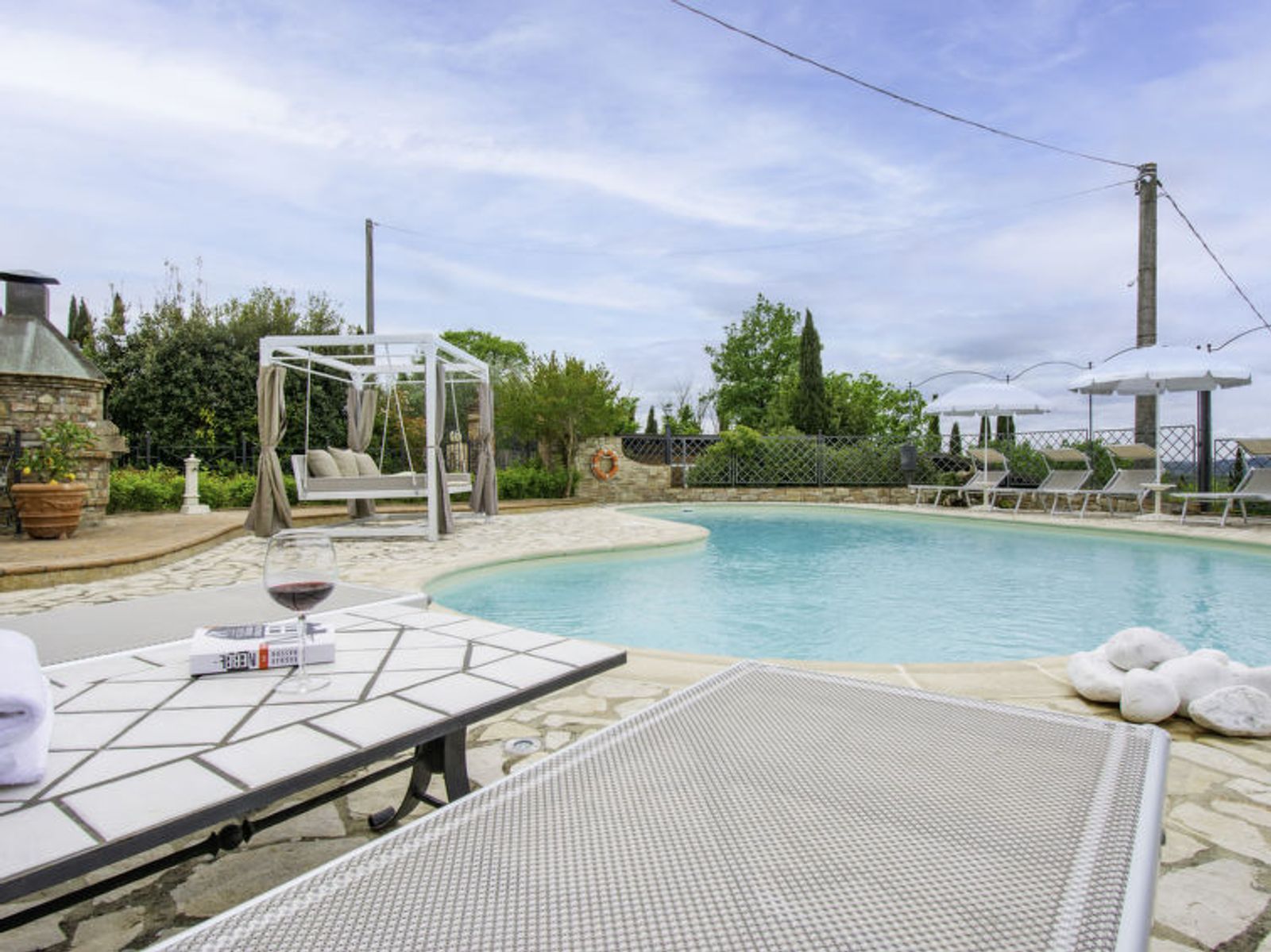 Schöner Landsitz "La Vecchia Pieve", auf 3 Stockwerken, einseitig angebaut, renoviert. Ruhige, sonnige Lage auf einem Hügel, im Grünen. Zur Mitbenutzung: Grundstück 15'000 m2, Garten (eingezäunt) Pflanzen und Blumen, Schwimmbad (4 x 14 m, 120 - 180 cm tief, saisonale Verfügbarkeit: 27.Mar. - 23.Okt.). Aussendusche, Tischtennis, Terrasse, Gartenmöbel, Grill (Rutschbahn, Schaukel). Zur Alleinbenutzung: gepflegter terrassierter Garten mit Pflanzen und Blumen. Terrasse, Gartenmöbel, Grill. In der Anlage: Wireless LAN, Waschmaschine (zur Mitbenutzung, extra), Heizung nur verfügbar von 01.Nov. - 29.Mar.. Parkplatz. Carport. Einkaufsgeschäft 3 km, Supermarkt 2.5 km, Restaurant 3 km, Bushaltestelle 4 km, Bahnstation "Castelfiorentino" 3 km. Golfplatz 14 km, Tennis 3 km, Reitstall 3 km. Nahe gelegene Sehenswürdigkeiten: Firenze 40 km, Siena 50 m, San Gimignano 20 km. Bitte beachten: Der Besitzer wohnt auf dem gleichen Grundstück. In der Unterkunft gibt es Kameras, die nur eventuelle Bewegungen aufzeichnen und von 1:00 am bis 6:00 am Uhr aktiv sind, zur Sicherheit der Gäste und des Hauses.