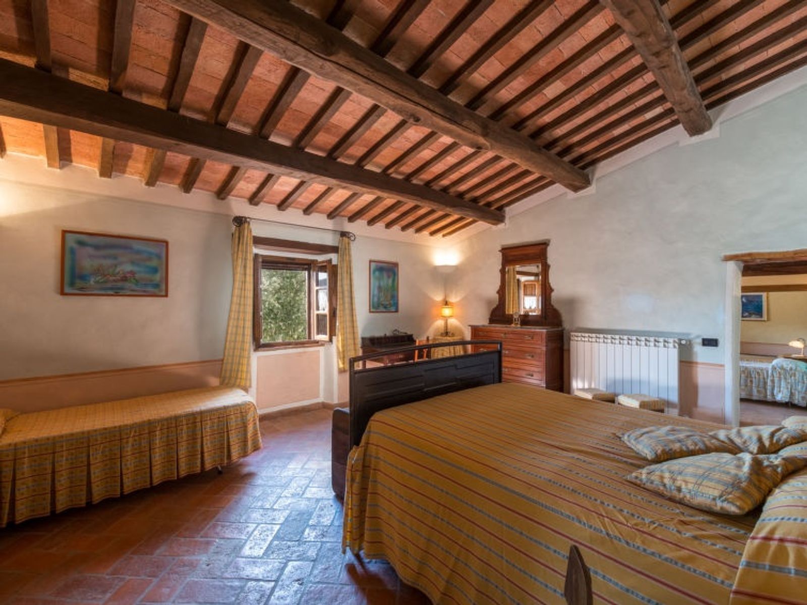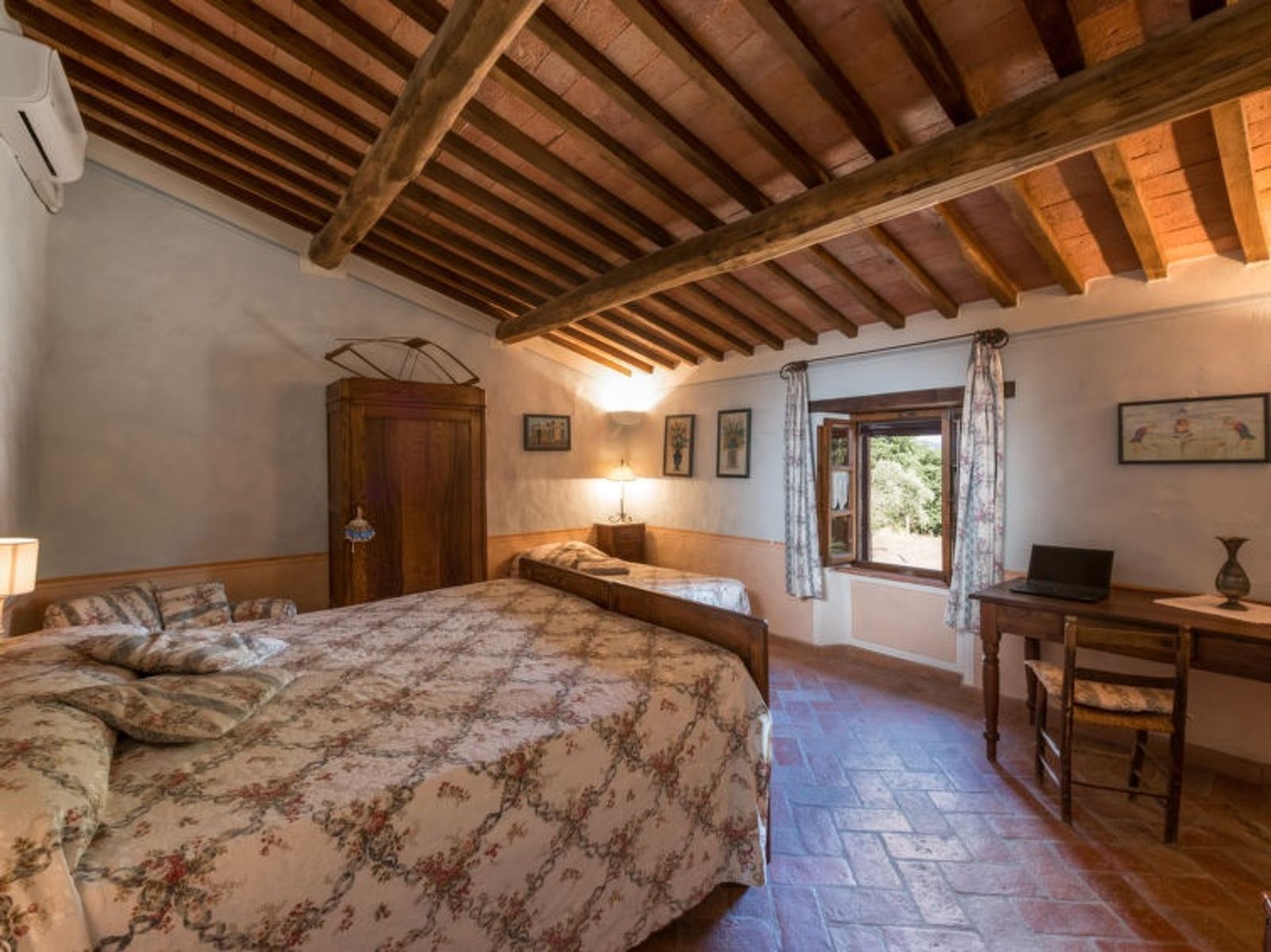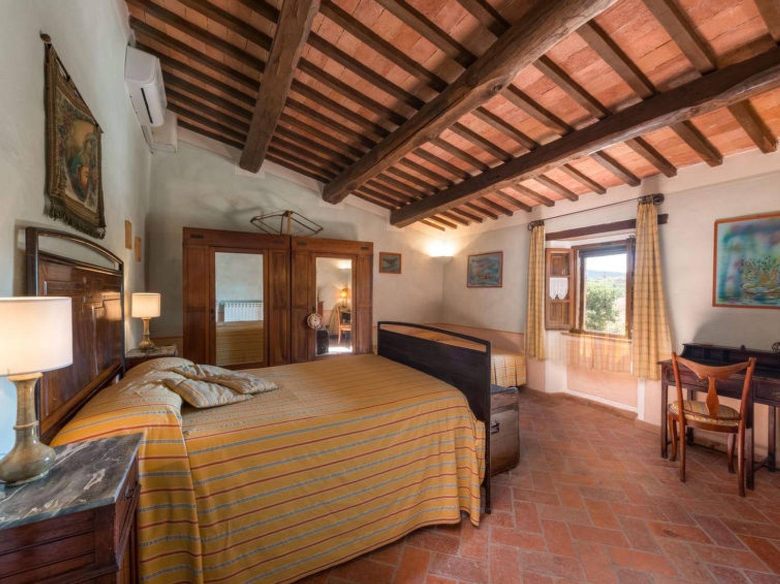5-Zimmer-Haus 170 m2 auf 2 Stockwerken. Rustikal und gemütlich eingerichtet: Wohnzimmer mit Sat-TV. Ausgang zum Garten. Offene Küche (Backofen, Geschirrspüler, 5 Flammen, Mikrowelle, elektrische Kaffeemaschine) mit Esstisch. Ausgang zur Terrasse. Dusche/Bidet/WC. Obergeschoss: 1 Zimmer mit 1 Bett, 1 Doppelbett und Klimaanlage. 1 Zimmer mit 1 Bett, 1 Doppelbett, Dusche/Bidet/WC und Klimaanlage. 1 Zimmer mit 2 Betten und Klimaanlage. 1 Zimmer mit 2 Betten, Dusche/Bidet/WC und Klimaanlage. Dusche/Bidet/WC. G-Heizung. Komfortable Einrichtung im Landhausstil. Gartengrill. Schöne Sicht auf die Landschaft. Zur Verfügung: Fliegengitter. Internet (WLAN, gratis). Maximal 2 Haustiere/Hunde erlaubt. IT053014C2Z7EWODFS