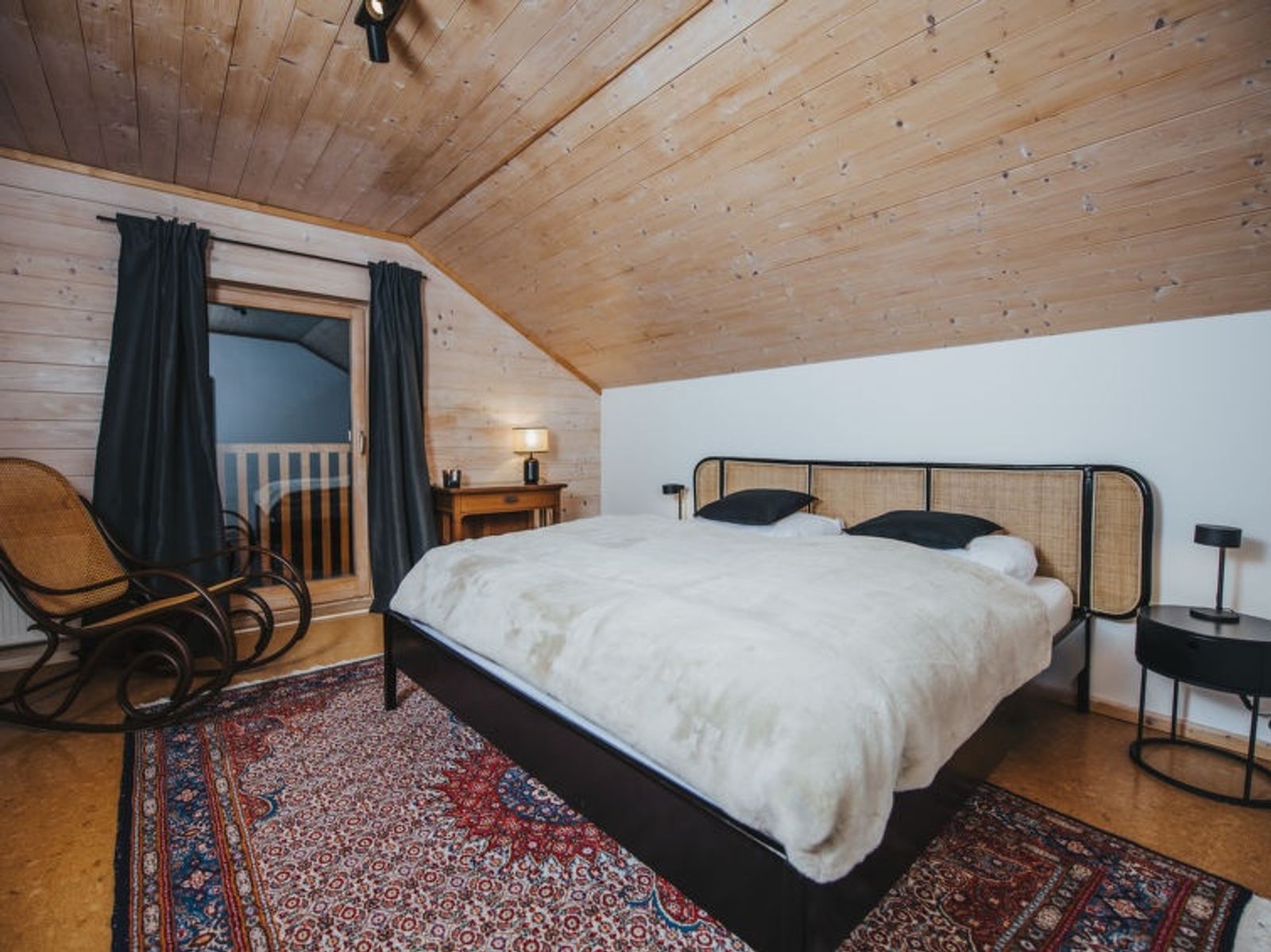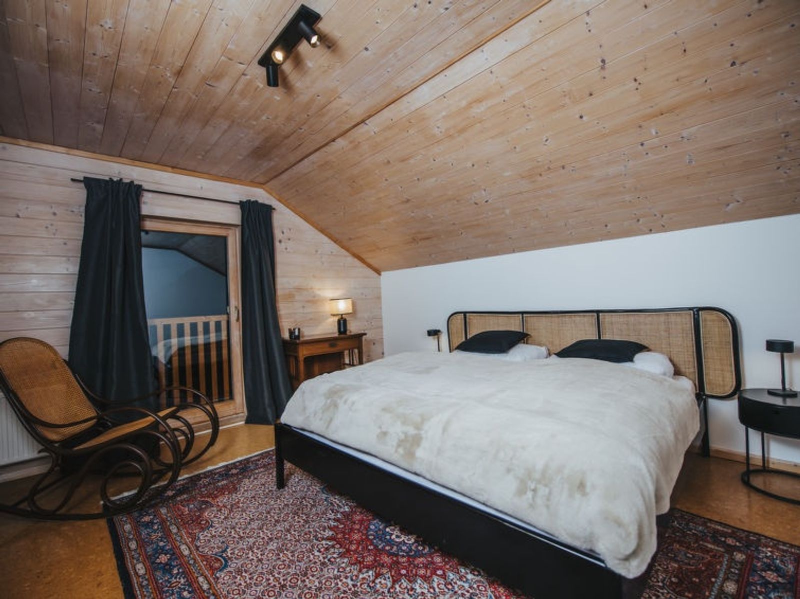 "Chalet 1018", 5-Zimmer-Chalet 110 m2 auf 2 Stockwerken. Vollständig renoviert im Jahre 2022, sehr schön und modern eingerichtet: Eingang mit sep. WC. Wohn-/Esszimmer mit Esstisch und Kabel-TV (Flachbildschirm), Kachelofen. Ausgang zur Terrasse. Grosses Büro. Grosse Wohnküche (4 Kochplatten, Backofen, Geschirrspüler, 4 Glaskeramikplatten, Toaster, Wasserkocher, Mikrowelle, Tiefkühler, elektrische Kaffeemaschine). Obergeschoss: 3 Doppelzimmer. Dusche/WC, Bad/Dusche/WC. E-Heizung. Parkettboden. Terrasse. Terrassenmöbel, Balkonmöbel, Liegestühle. Schöne Sicht auf die Berge und den Wald. Zur Verfügung: Waschmaschine, Wäschetrockner, Haartrockner. Internet (Wireless LAN, gratis). Bitte beachten: Nichtraucher-Unterkunft. Rauchmelder, Feuerlöscher. 50403-000483-2023