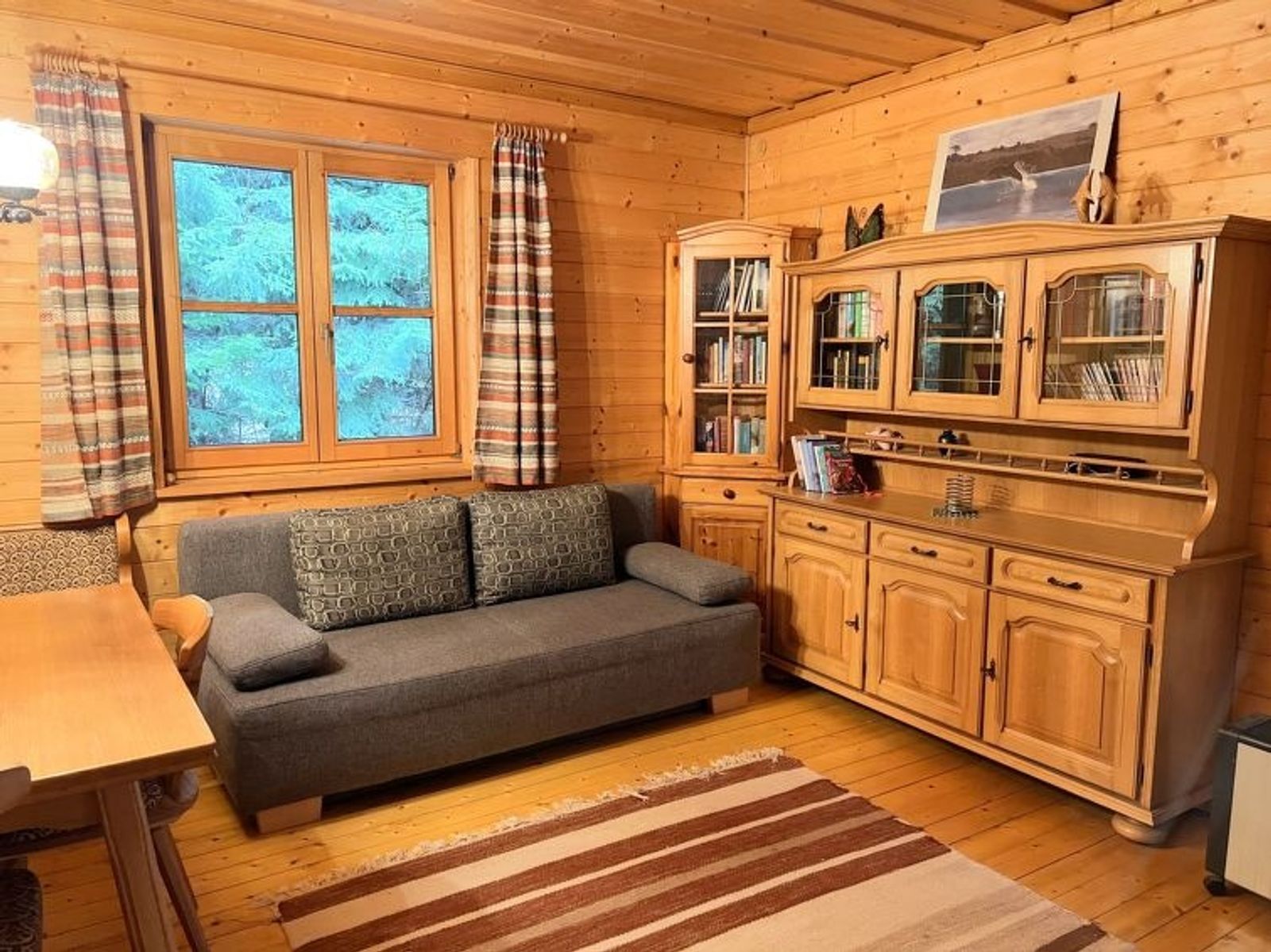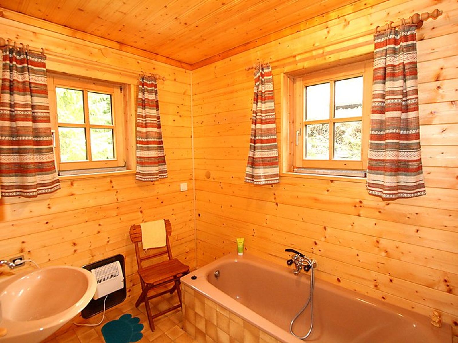 2-Zimmer-Chalet 65 m2. Komfortabel und mit viel Holz eingerichtet: Eingang. Wohn-/Esszimmer mit 1 Doppeldiwanbett (160 cm, Länge 200 cm), Essecke, Radio und Kachelofen. Ausgang zum Garten, zur Terrasse. 1 Doppelzimmer mit E-Heizung. Küche (Backofen, Geschirrspüler, 4 Glaskeramikplatten, elektrische Kaffeemaschine) mit Essecke. Bad, sep. WC. E-Heizung. Holzdielenboden. Terrasse. Terrassenmöbel, Gartengrill, Liegestühle. Sehr schöne Sicht auf den Garten und die Landschaft. Zur Verfügung: Haartrockner, Holz (gratis). Internet (WLAN). Bitte beachten: Nichtraucher-Unterkunft. 1 Haustier/Hund erlaubt. Beheizt wird mit Kachelofen und 2 mobilen Elektroöfen.