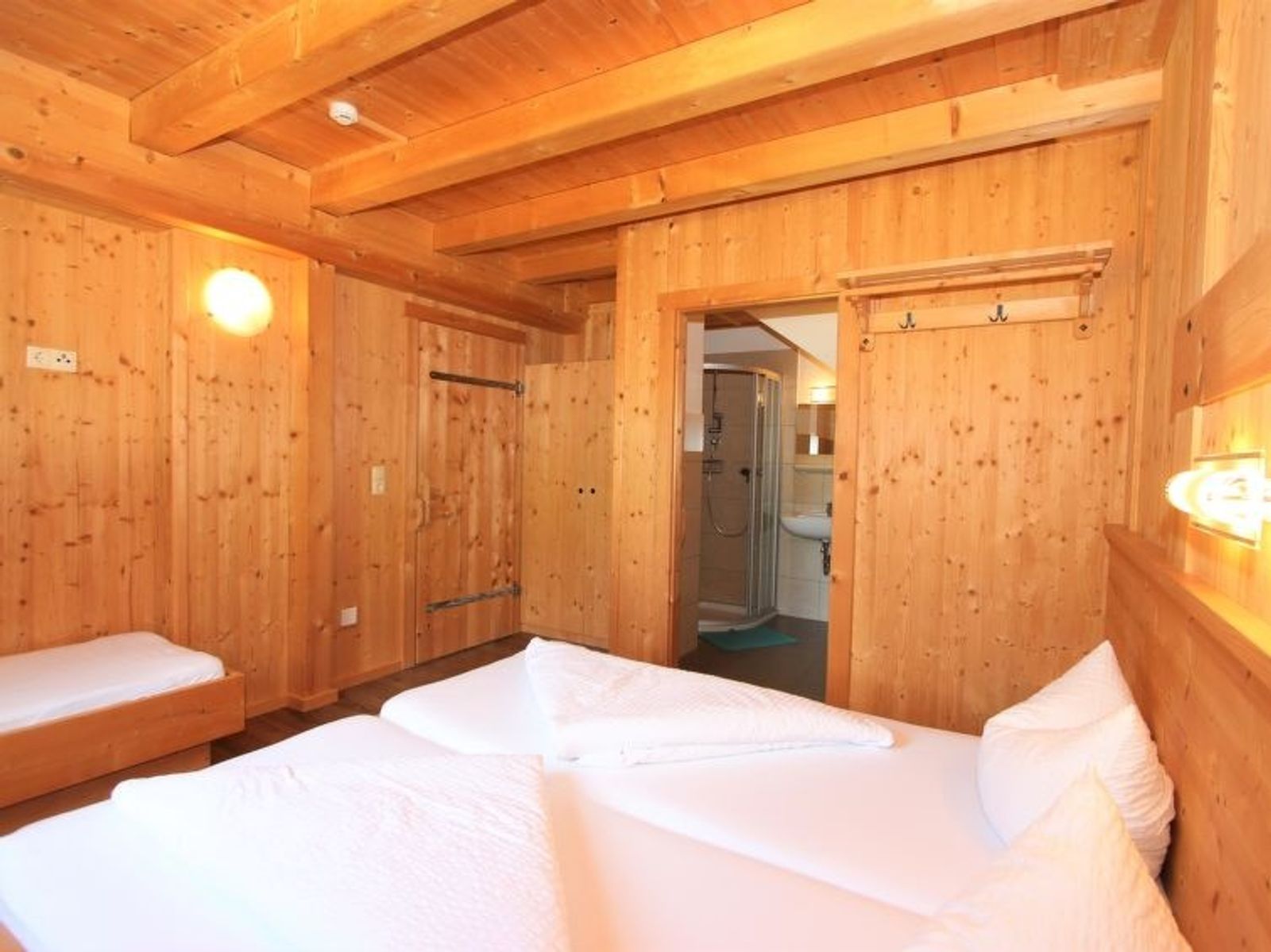 "Chalet Alois", 5-Zimmer-Chalet 120 m2 auf 2 Stockwerken. Komfortabel und geschmackvoll eingerichtet: Eingang. 1 Doppelzimmer mit Dusche/WC. Grosses Wohn-/Esszimmer 35 m2 mit Esstisch und Sat-TV (Flachbildschirm), Radio und CD. Offene Küche (Backofen, Geschirrspüler, 4 Glaskeramikplatten, Mikrowelle, Tiefkühler). Dusche, sep. WC, Sauna. Obergeschoss: 2 Doppelzimmer, jedes Zimmer mit Dusche/WC. 1 Zimmer mit 1 Bett, 1 Doppelbett und Dusche/WC. Fussbodenheizung. Holzdielenboden, Natursteinboden. Terrasse. Terrassenmöbel, Gartengrill. Schöne Sicht auf die Berge. Zur Verfügung: Kinderhochstuhl, Babybett. Internet (Wireless LAN). Parkplatz (überdacht, 3 Autos). Bitte beachten: Nichtraucher-Haus. Rauchmelder. Hochwertige Einrichtung mit handgefertigten Möbeln vom Tischlermeister. Wichtig: Das Haus darf maximal mit 9 Personen und 1 Baby bis 2 Jahren belegt werden.
