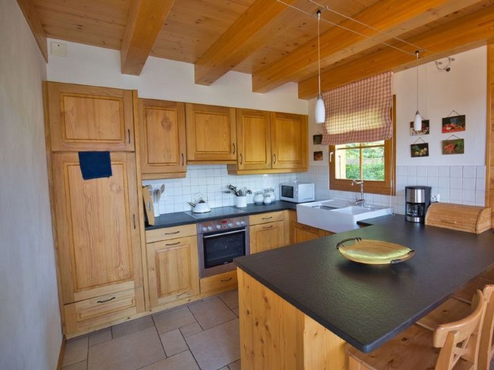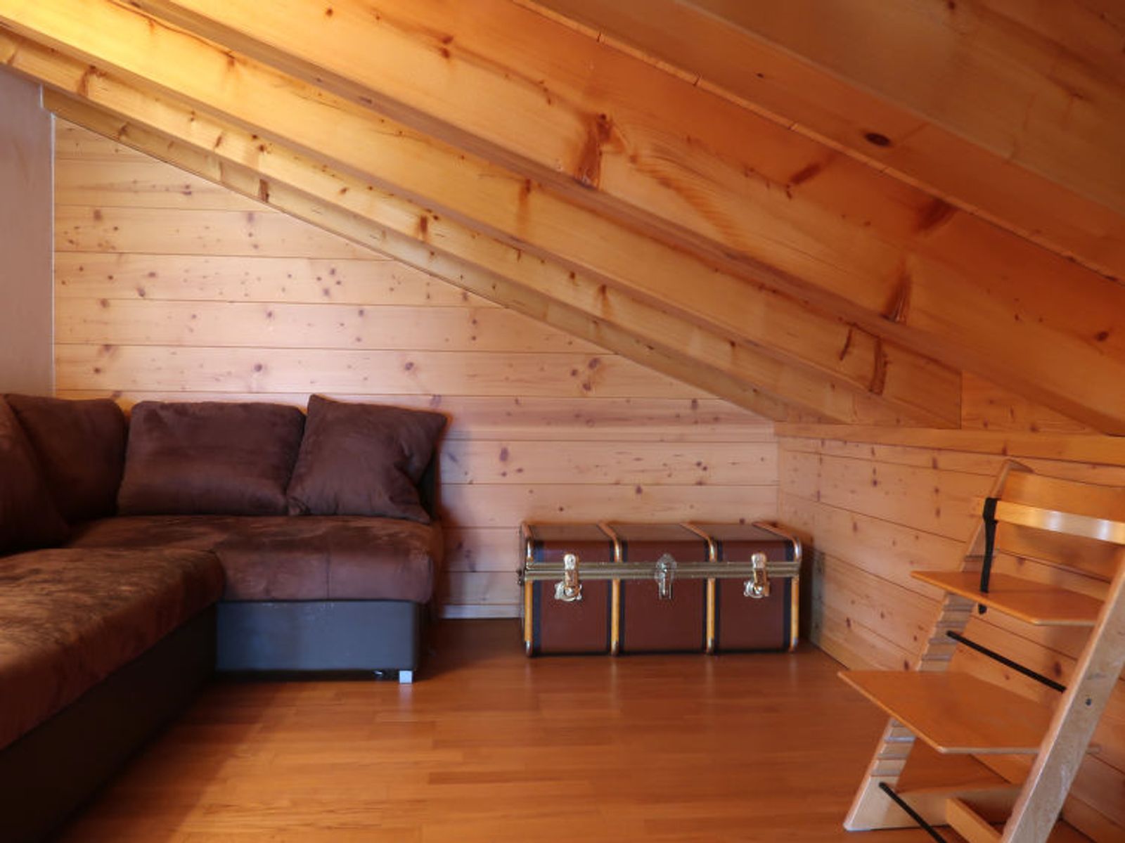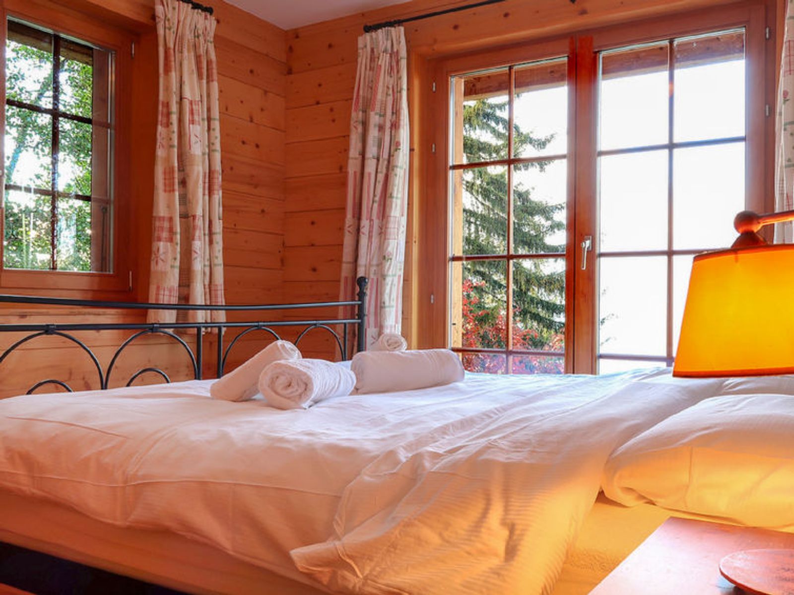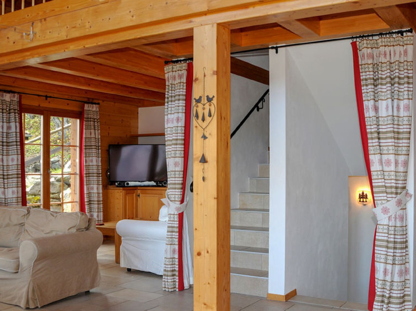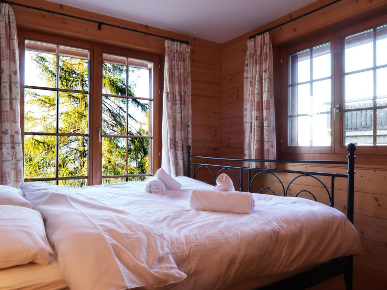 "Altamira", 5-Zimmer-Chalet 240 m2 auf 3 Stockwerken. Geräumig, komfortabel und schön eingerichtet: Wohn-/Esszimmer mit offenem Kamin und Kabel-TV. Ausgang zum Balkon, Richtung Norden und Richtung Osten. Offene Küche (Backofen, Geschirrspüler, 4 Glaskeramikplatten, Toaster, Wasserkocher, Mikrowelle, Tiefkühler, elektrische Kaffeemaschine, Kapseln für die Kaffeemaschine (nespresso) extra, Racletteofen, Fondue Set (Chinoise, Käse)). Ausgang zur Terrasse, Richtung Westen. Heizung. Unteres Geschoss: 2 Zimmer, jedes Zimmer mit 1 Doppelbett (2 x 90 cm, Länge 200 cm). 1 Zimmer mit 2 Betten (90 cm, Länge 200 cm). Dusche/WC. Obergeschoss: Eingang. Abgeschrägte, offene Galerie. 1 Zimmer mit 1 Doppelbett (2 x 90 cm, Länge 200 cm), Dusche/WC. Sep. WC. Balkon, Nordlage und Ostlage, grosse Terrasse, Westlage. Terrassenmöbel, Gartengrill. Sicht auf die Berge. Zur Verfügung: Waschmaschine, Wäschetrockner, Kinderhochstuhl, Babybett, Haartrockner. Internet (WLAN, gratis). Parkplatz (2 Autos). Bitte beachten: Nichtraucher-Haus.