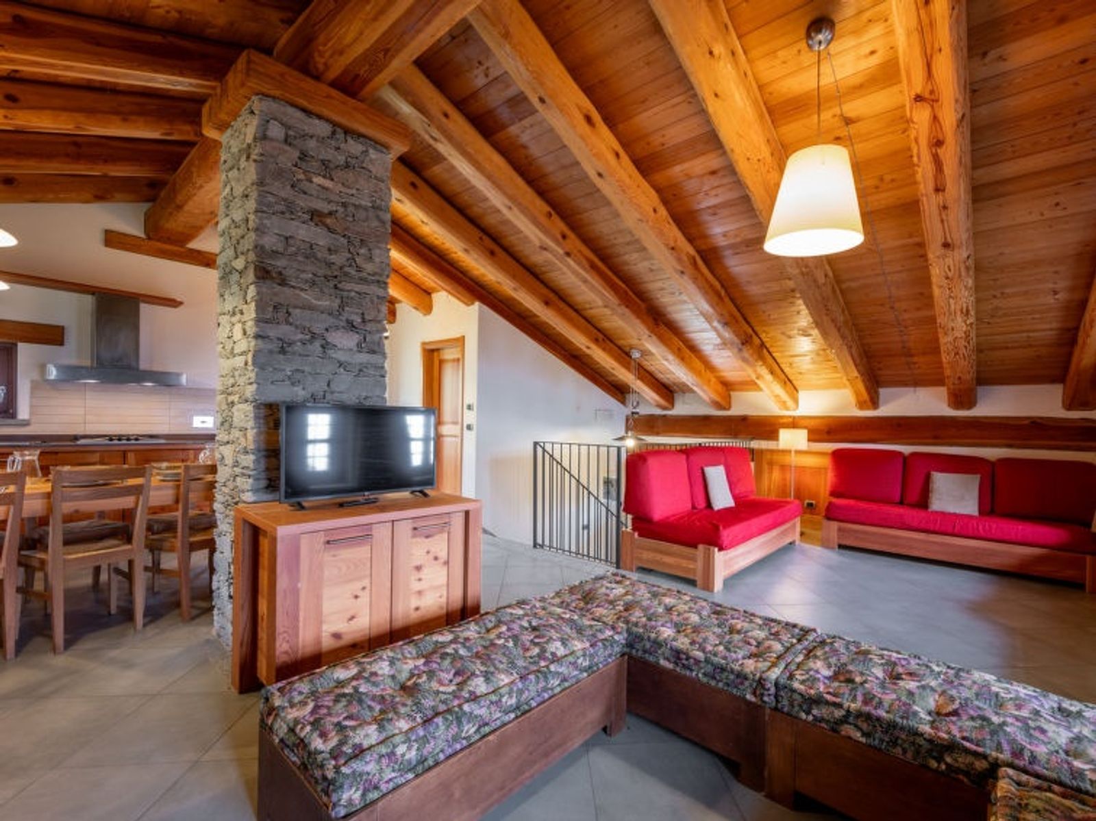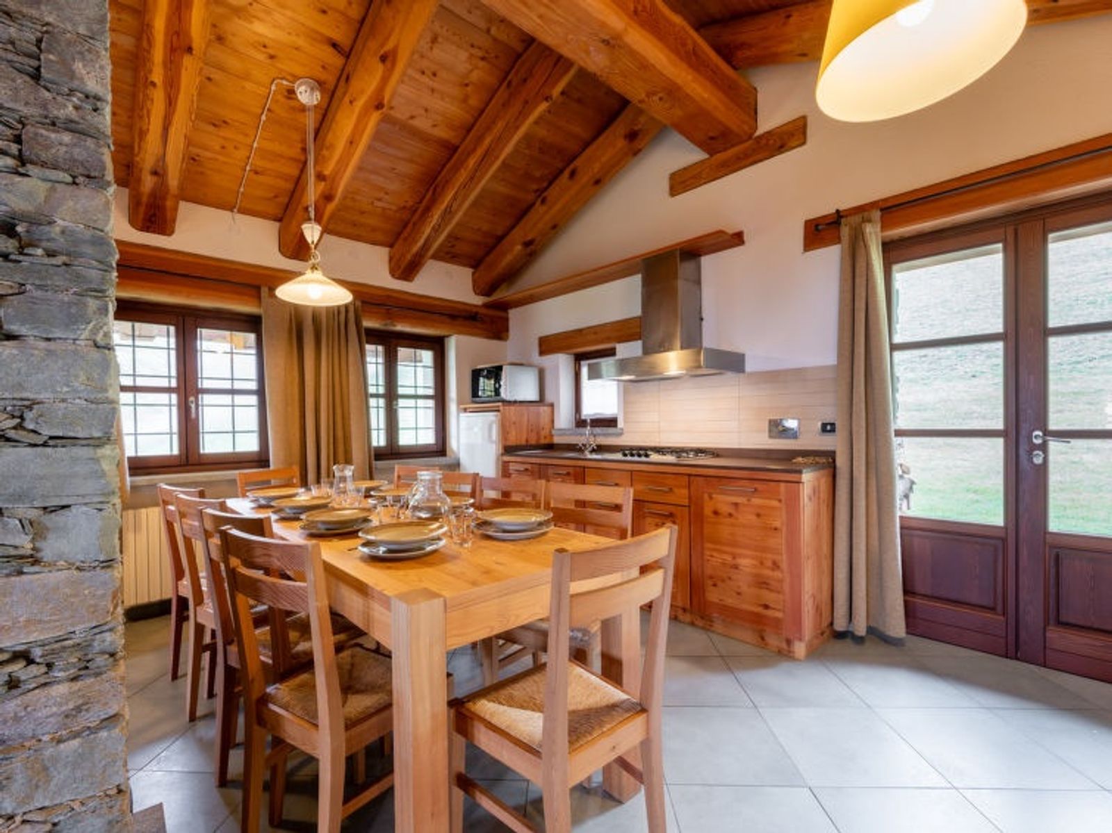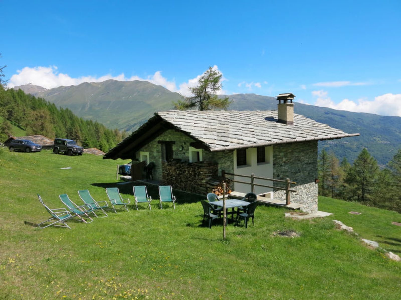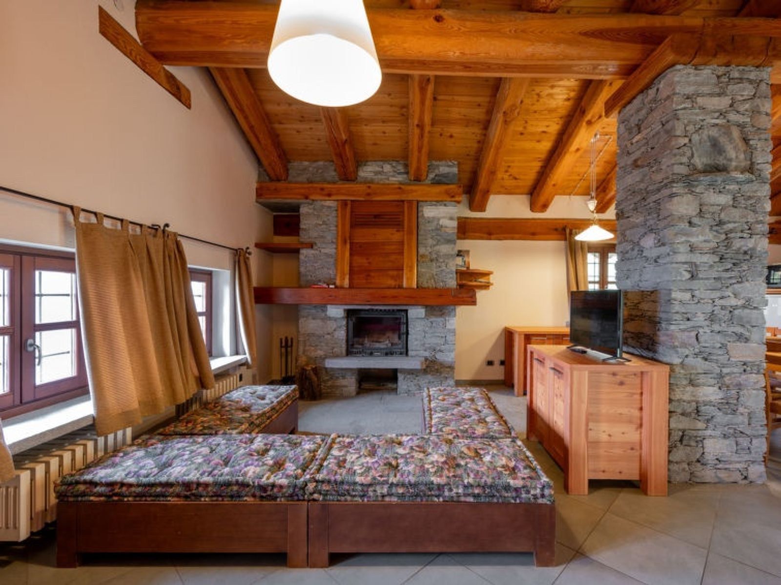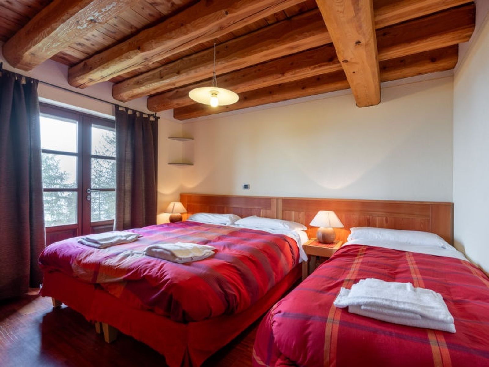 "Casot Brusa", 4-Zimmer-Chalet 90 m2 auf 2 Stockwerken, im erhöhten Erdgeschoss. Geschmackvoll und mit viel Holz eingerichtet: 1 Zimmer mit 1 Bett und 1 Doppelbett. 2 Zimmer, jedes Zimmer mit 1 Doppelbett. Dusche/Bidet/WC. Obergeschoss: offenes Wohn-/Schlafzimmer mit 2 Diwanbetten, offenem Kamin, Esstisch und Sat-TV. Ausgang zum Garten. Kleine, offene Küche (4 Flammen, Mikrowelle). Dusche/WC. G-Heizung (extra). Holzdielenboden. Gartensitzplatz. Terrassenmöbel, Gartengrill (mobil). Panoramasicht auf die Berge und das Tal. Zur Verfügung: Kinderhochstuhl, Babybett. IT004205B4MVQGWBZX
