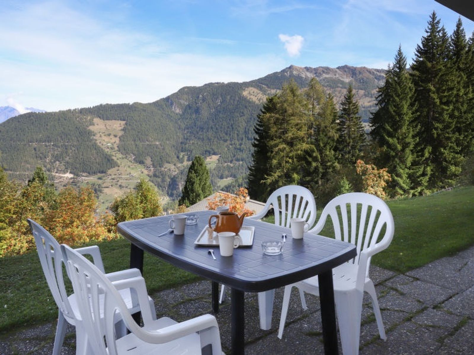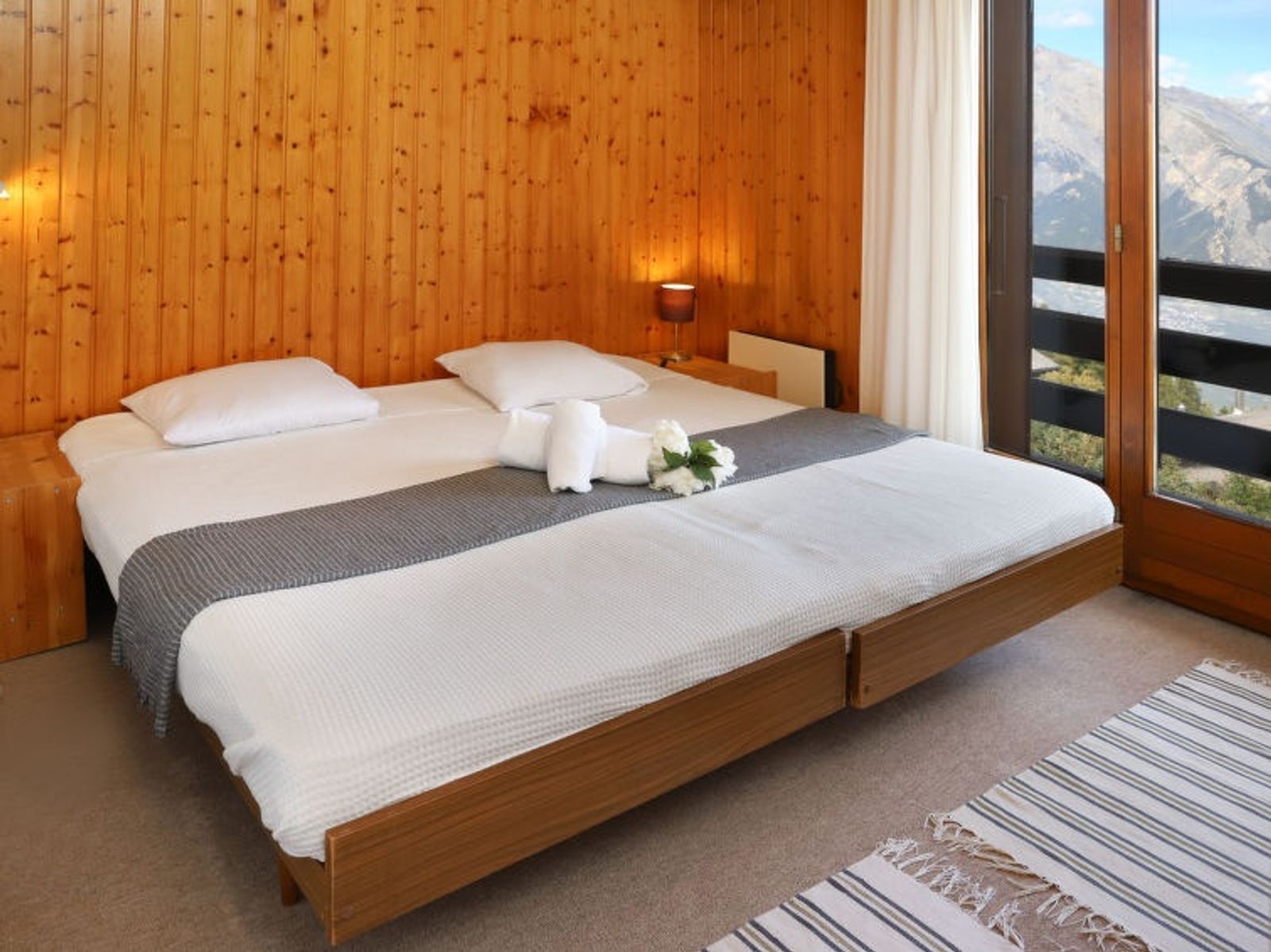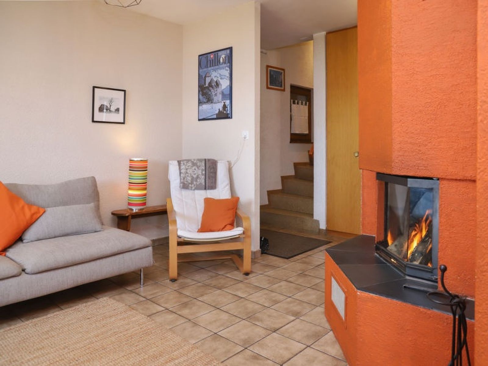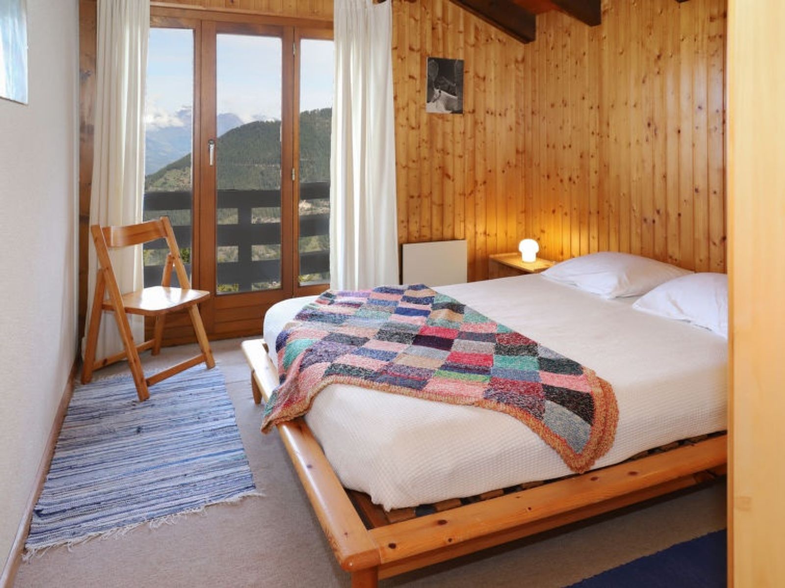 6-Zimmer-Chalet 90 m2 auf 2 Stockwerken. Komfortabel und gemütlich eingerichtet: offenes Wohnzimmer mit offenem Kamin, Sat-TV und Internationale TV-Sender. Offenes Esszimmer. Ausgang zur Terrasse. Offene Küche (Backofen, Geschirrspüler, 4 Glaskeramikplatten, Mikrowelle, Tiefkühler, elektrische Kaffeemaschine, Racletteofen, Fondue Set (Käse)). Dusche/WC. Obergeschoss: 1 Zimmer mit 2 Betten. Ausgang zum Balkon. 1 kleines Zimmer mit 1 x 2 Etagenbetten. 1 Zimmer mit 1 x 2 Etagenbetten. 1 Zimmer mit 1 franz. Bett (140 cm). Ausgang zum Balkon. Dusche/WC. Balkon, Ostlage, grosser Gartensitzplatz. Terrassenmöbel, Gartengrill (mobil). Herrliche Panoramasicht auf die Berge und die Landschaft. Zur Verfügung: Internet (Wireless LAN, gratis). Parkplatz beim Haus. Bitte beachten: Nichtraucher-Unterkunft.
