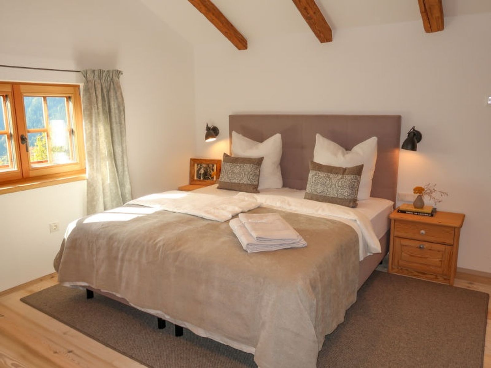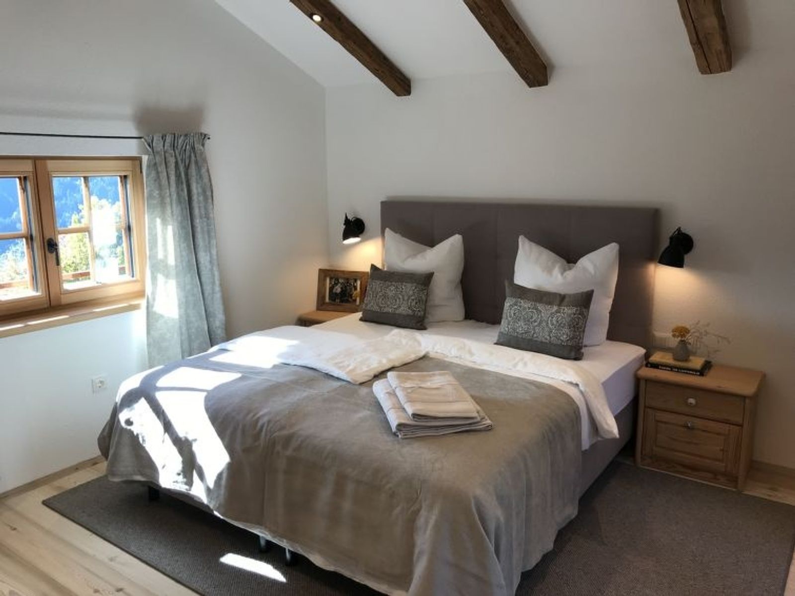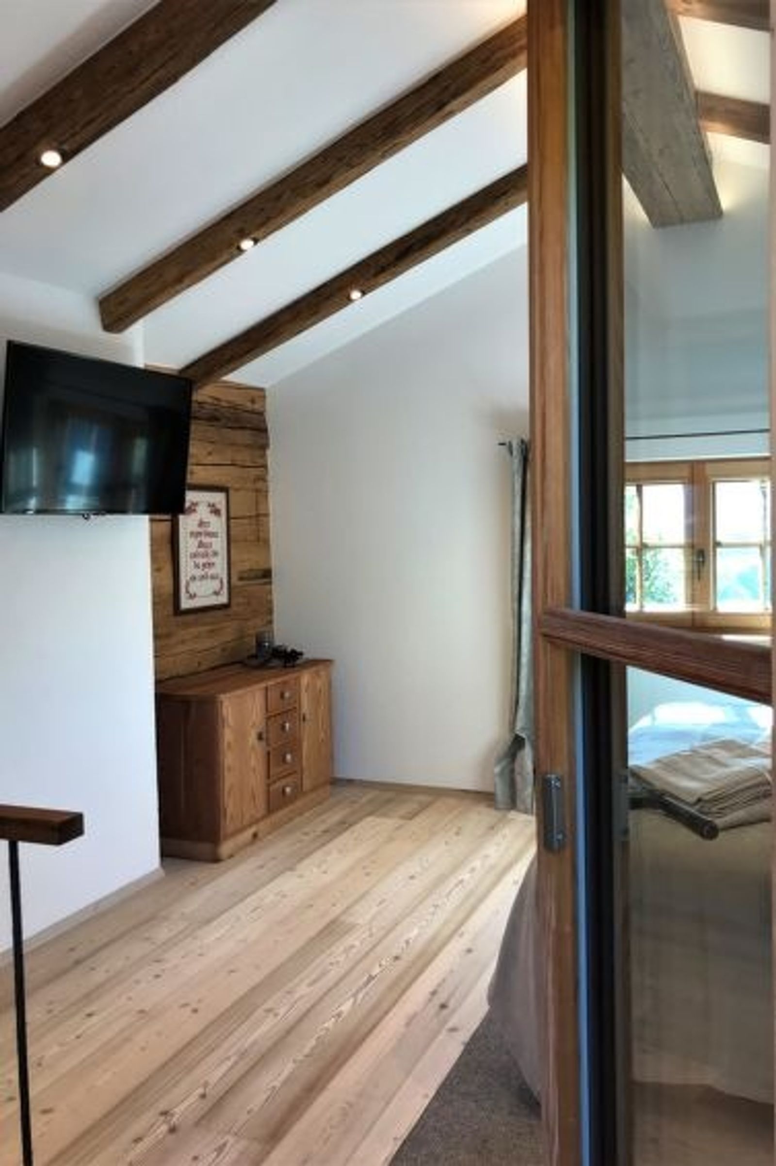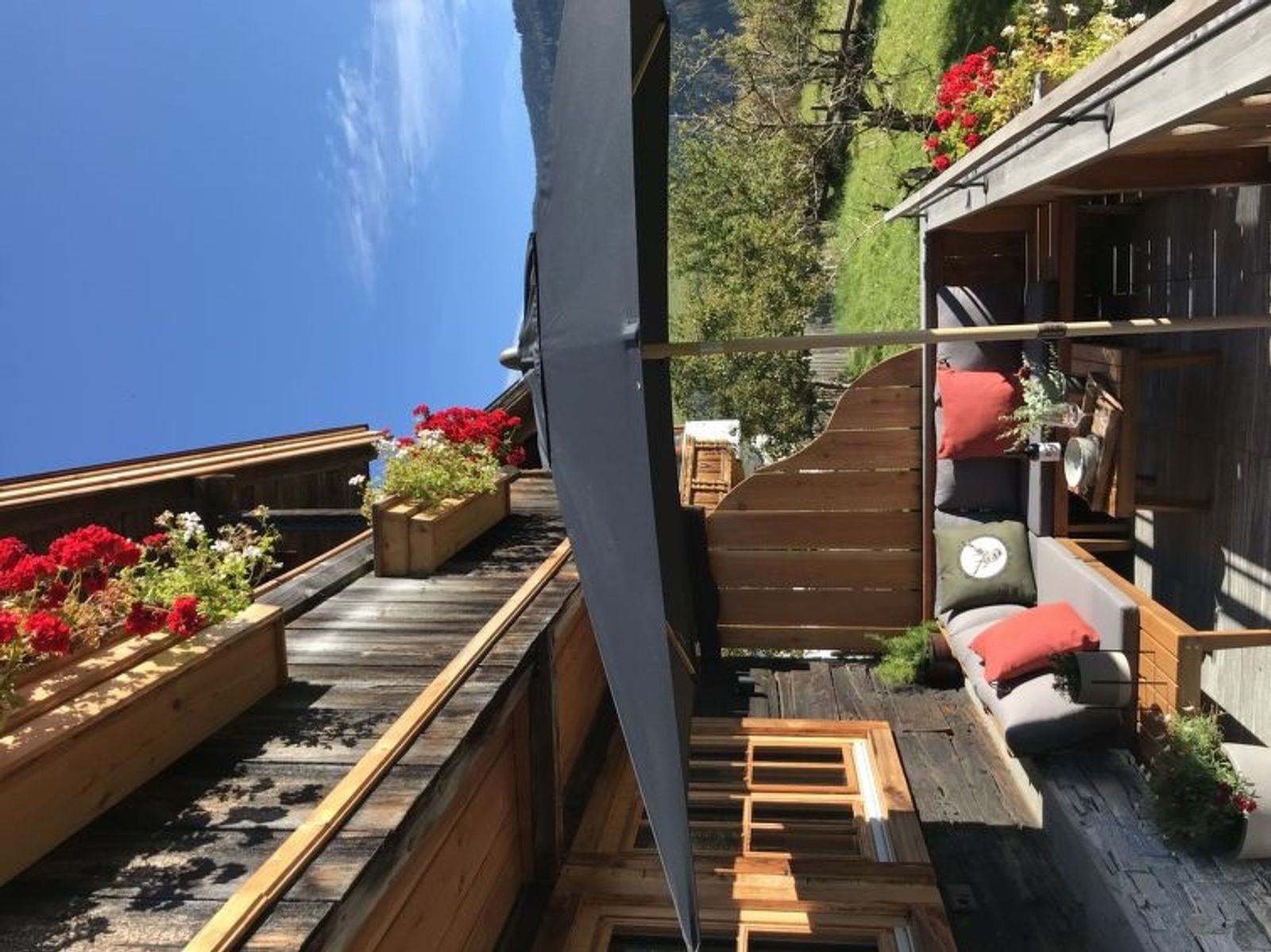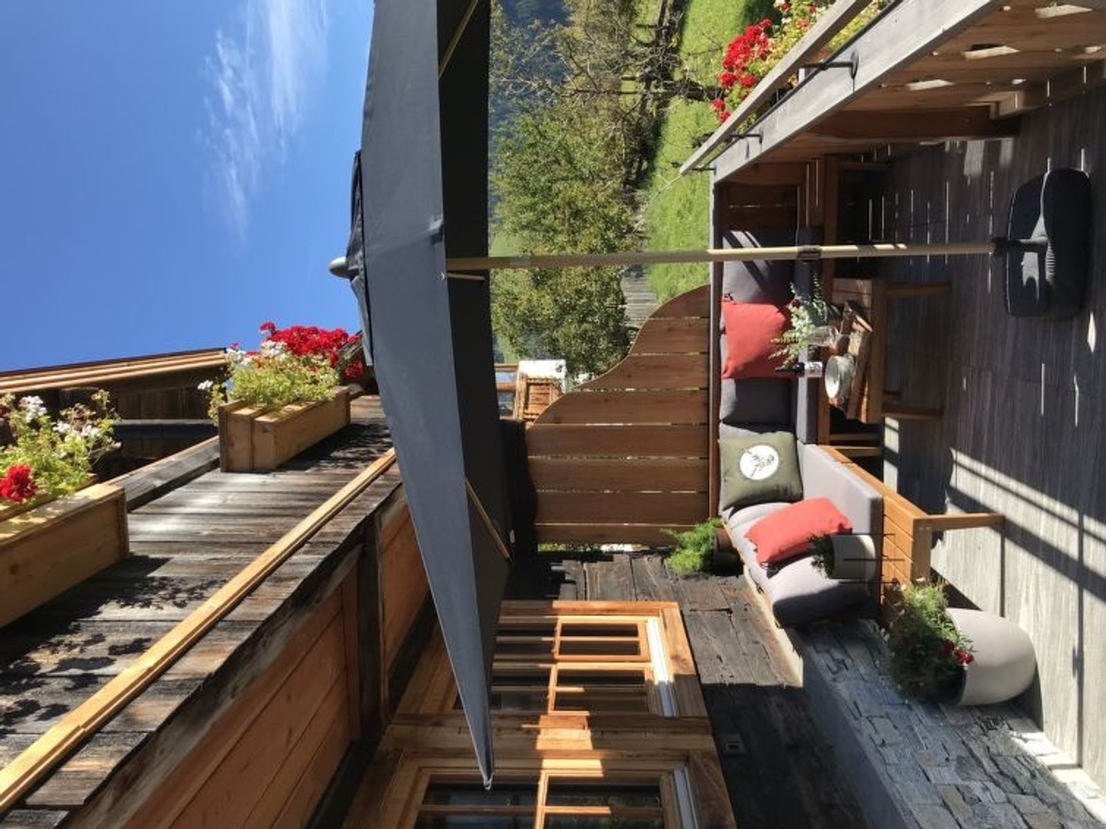 "Feldkasten", 2-Zimmer-Chalet 50 m2 auf 2 Stockwerken. Hell, teilweise abgeschrägt, vollständig renoviert im Jahre 2021, sehr geschmackvoll und gemütlich eingerichtet: grosse Wohnküche (Backofen, Geschirrspüler, 4 Glaskeramikplatten, Toaster, Wasserkocher, Mikrowelle, elektrische Kaffeemaschine, Kapseln für die Kaffeemaschine (Nespresso)) mit 1 Doppeldiwanbett (160 cm, Länge 200 cm), Essecke und Sat-TV (Flachbildschirm), E-Heizung. Ausgang zur Terrasse. Obergeschoss: (steile Treppe) 1 offenes grosses Doppelzimmer mit 1 Doppelbett (180 cm, Länge 200 cm), Dusche/WC und Sat-TV (Flachbildschirm), E-Heizung. Ausgang zum Balkon. Holzdielenboden. Komfortable Einrichtung im Landhausstil. Grosse Terrasse 18 m2. Terrassenmöbel, Gartengrill, Sitzplatz. Herrliche Panoramasicht auf die Berge und das Tal. Zur Verfügung: Haartrockner. Internet (Wireless LAN). Bitte beachten: Nichtraucher-Haus. Rauchmelder. Flexibilität bei der Bettenaufteilung: Es stehen mehr Schlafmöglichkeiten zur Verfügung als die maximal zugelassene Personenzahl, diese darf dennoch nicht überschritten werden.