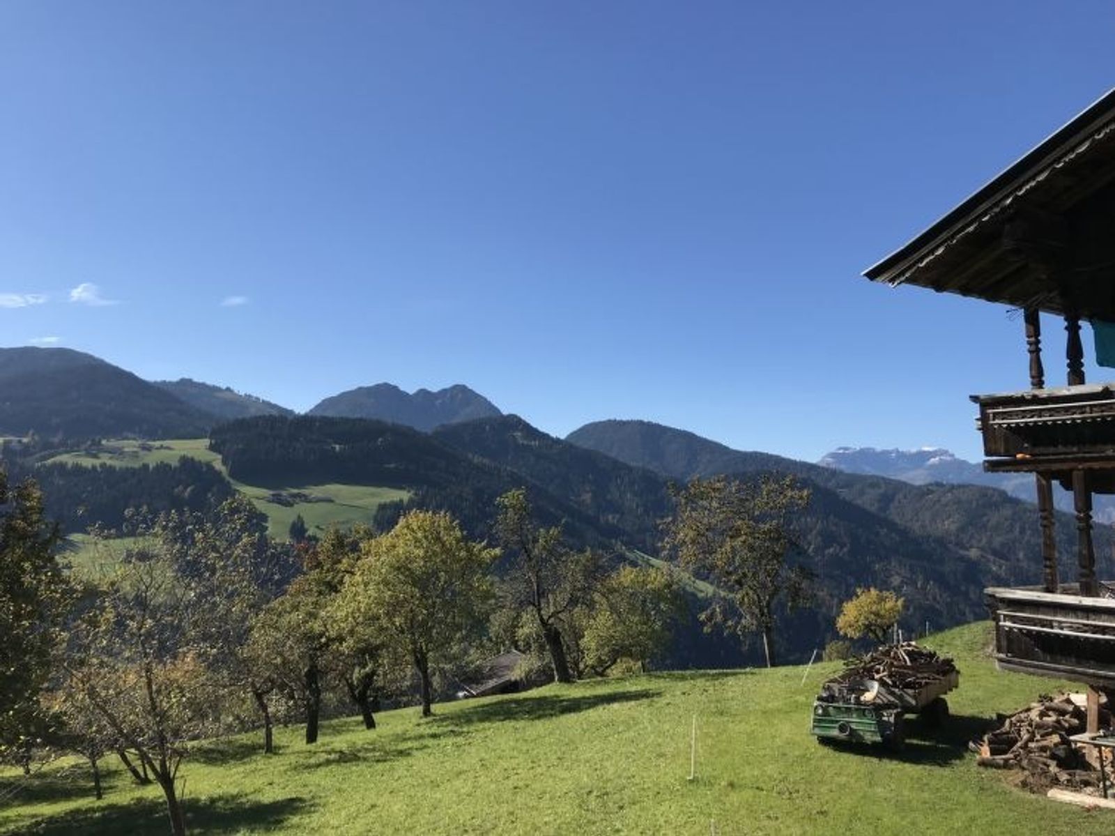 Oberau: Mit viel Geschmack und Liebe zum Detail renoviertes, aussergewöhnlich schönes, gemütliches, komfortables Chalet "Feldkasten", auf 2 Stockwerken, renoviert im Jahre 2021. Oberhalb von Oberau, in einem Weiler mit 20 Häusern, am Ortsrand, 1.5 km vom Zentrum von Oberau, ruhige, sonnige, erhöhte Lage. Im Hause: Einstellraum für Fahrräder, Sonnenterrasse, Skiraum, Skischuhtrockner. Im Winter bitte Schneeketten mitbringen, im Winter 4x4 empfohlen. Parkplatz beim Haus. Einkaufsgeschäft 1.5 km, Supermarkt 1.5 km, Restaurant 200 m, Bäckerei 1.5 km, Bushaltestelle "Oberau Dorferwirt" 1.2 km, Bahnstation "Wörgl Hauptbahnhof" 11.9 km, Freibad 3.5 km. Skilift 3.5 km, Gondelbahn 3.5 km, Skiverleih 1.5 km, Skibushaltestelle 1.2 km, Skischule 1.5 km, Kinderskischule 1.5 km, Langlaufloipe 1.5 km. Nahe gelegene Sehenswürdigkeiten: Drachental (Familienfreizeitpark) 1.5 km. Bekannte Skigebiete sind gut erreichbar: SkiJuwel Wildschönau-Alpbachtal 3.5 km. Wandergebiete: Wildschönau, Alpbachtal, Wilder Kaiser - Brixental 11 km. Auf dem Grundstück Tierhaltung. Bitte beachten: Der Besitzer wohnt auf dem gleichen Grundstück. Eigentümer hat einen Hund.