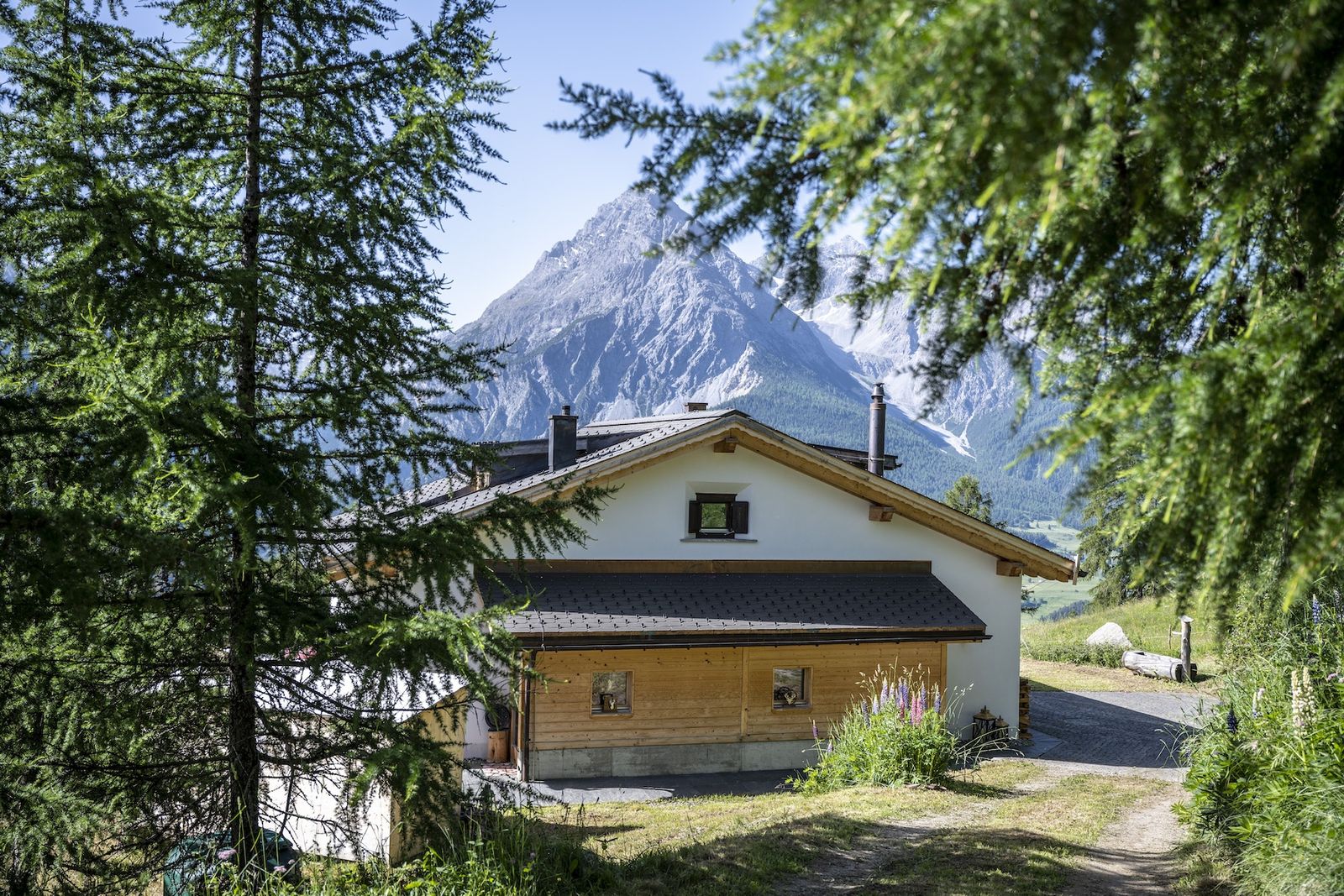 Das Chalet Flöna liegt oberhalb von Scoul auf 1.400m Höhe. Von hier oben bietet sich ein traumhafter Ausblick auf die Engadiner Dolomiten. Auf luxuriösen 120qm Wohnfläche gibt es Platz für maximal zehn Gäste. Ein Hund ist ebenfalls ein gern gesehener Gast.