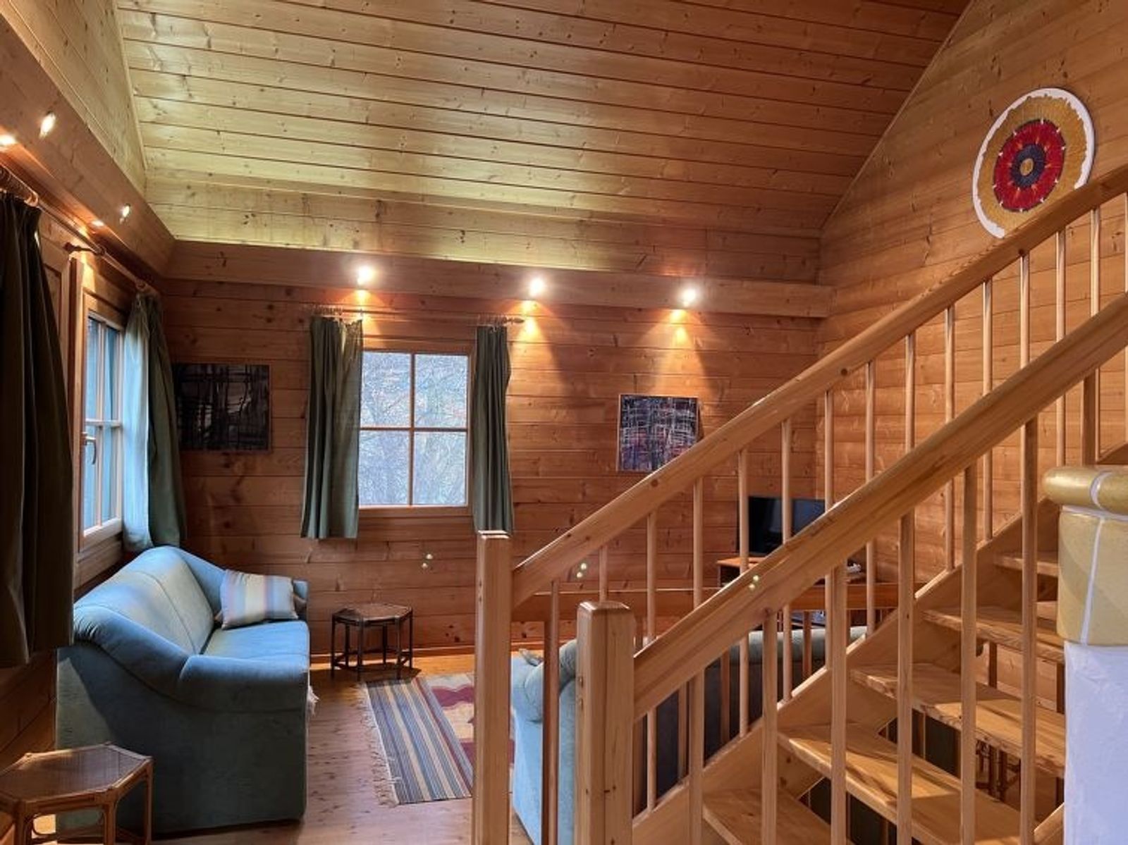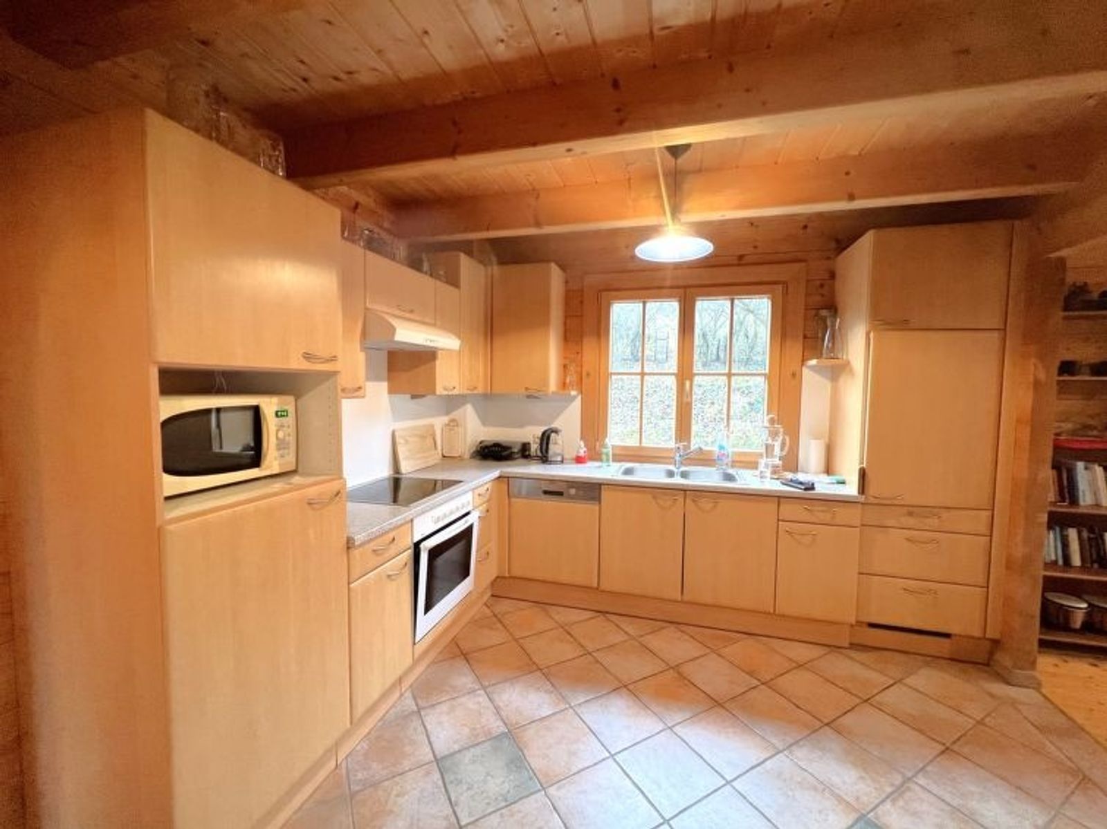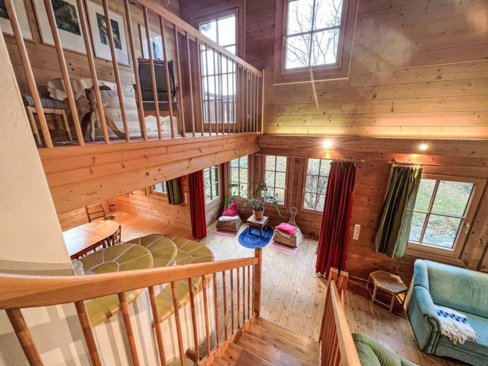 4-Zimmer-Landhaus 130 m2 auf 3 Stockwerken. Hell, komfortabel und mit viel Holz eingerichtet: grosser Eingang. Offenes Esszimmer. Ausgang zur Terrasse. Offenes Wohnzimmer mit 1 Doppeldiwanbett, Sat-TV, Flachbildschirm und Kachelofen. Ausgang zum Garten. 1 Doppelzimmer. Offene Galerie. Ausgang zum Balkon. Offene Küche (Backofen, Geschirrspüler, 4 Glaskeramikplatten, Mikrowelle, elektrische Kaffeemaschine). Bad/Dusche, sep. WC, Doppelwaschbecken mit Eckbadewanne. Fussbodenheizung. Obergeschoss: 1 grosses Doppelzimmer mit Dachfenster. Holzdielenboden. Balkon 10 m2, grosse Terrasse 15 m2. Terrassenmöbel, Gartengrill. Herrliche Sicht auf den Garten, die Landschaft und die Ortschaft. Zur Verfügung: Waschmaschine, Haartrockner. Internet (WLAN, gratis). Bitte beachten: Nichtraucher-Unterkunft. Rauchmelder.