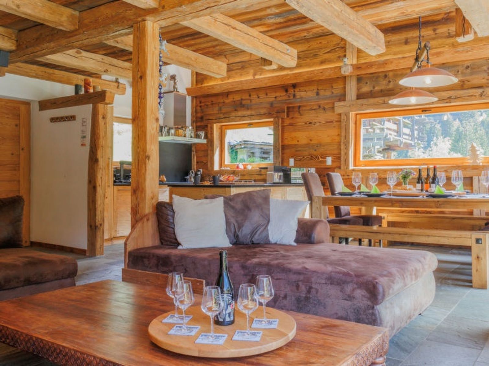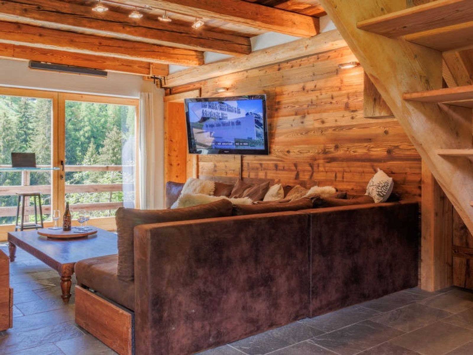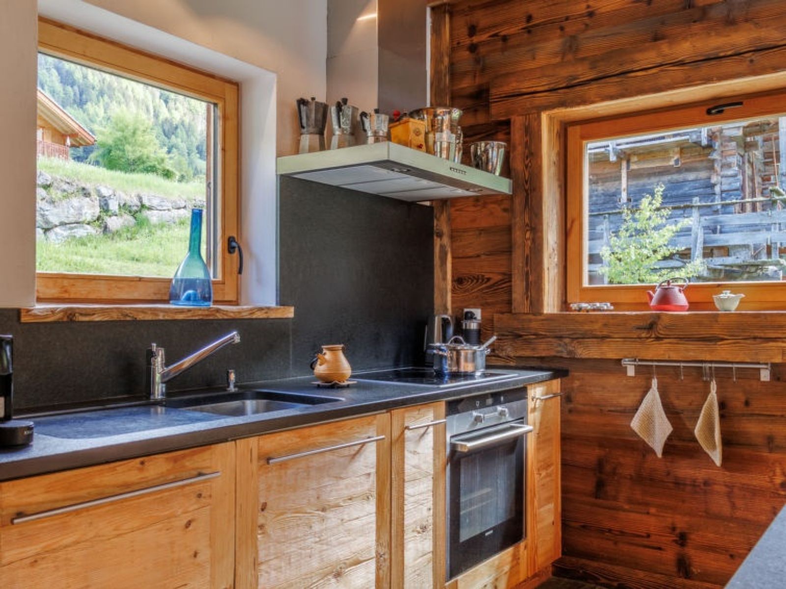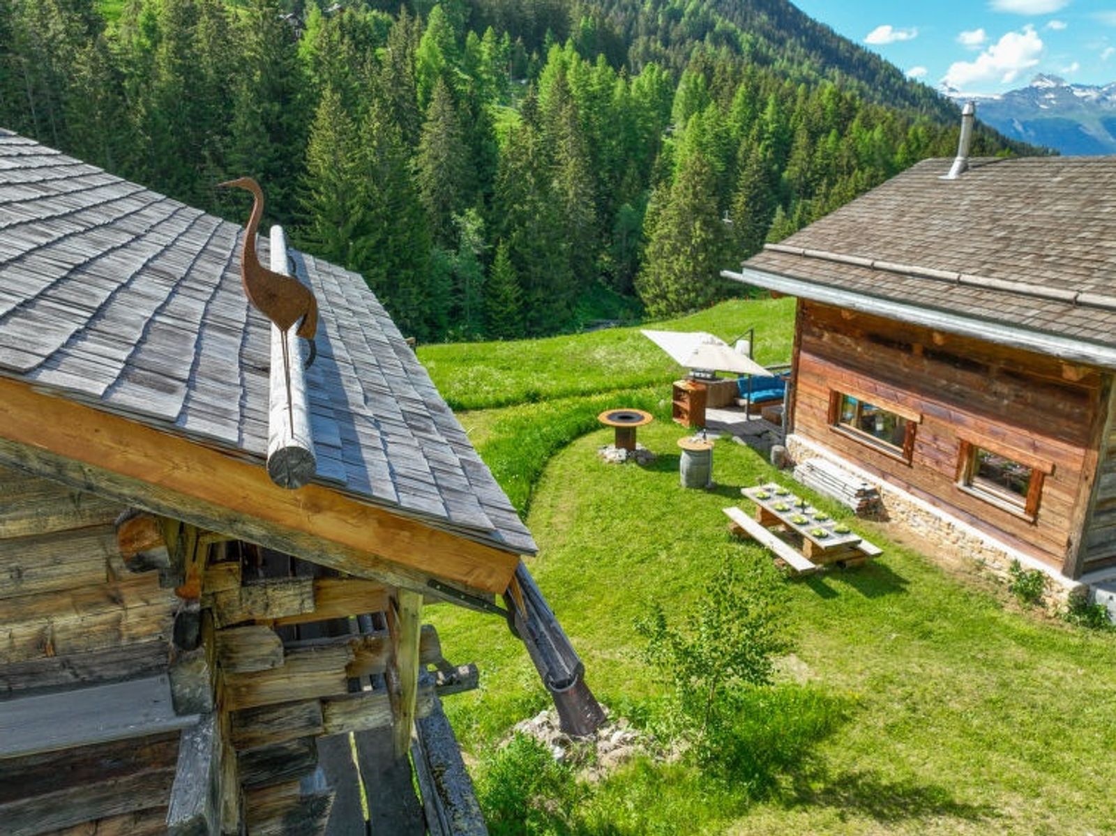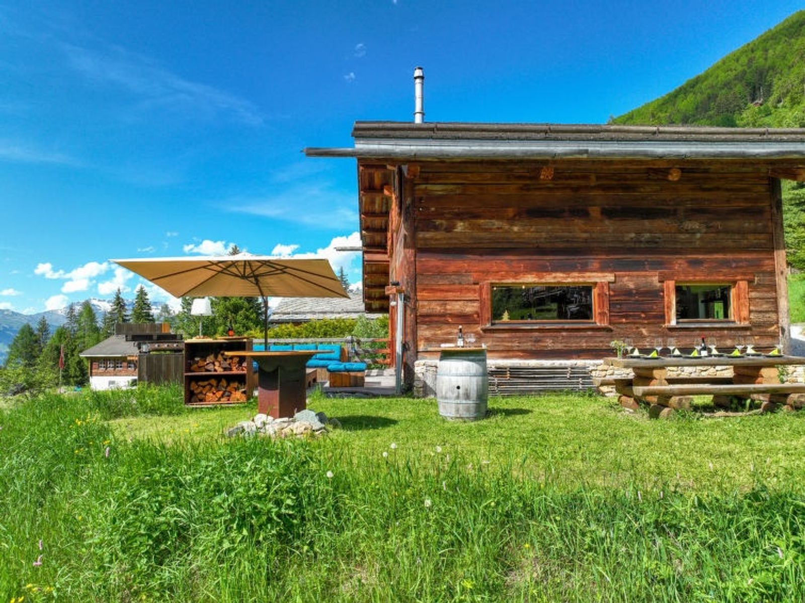 " Chalet Gaea", 5-Zimmer-Chalet 140 m2 auf 3 Stockwerken, Nordostlage. Objekt geeignet für 6 Erwachsene + 3 Kinder. Teilweise abgeschrägt, sehr komfortabel und schön eingerichtet: Eingang. Wohn-/Esszimmer mit Schwedenofen und Heimkino. Ausgang zur Terrasse. Offene Küche (Backofen, Geschirrspüler, 4 Induktionskochplatten, Toaster, Wasserkocher, Mikrowelle, Tiefkühler, elektrische Kaffeemaschine, Kapseln für die Kaffeemaschine (Nespresso) extra, Racletteofen, Fondue Set (Käse)). Bad/Dusche/WC. Unteres Geschoss: 1 Zimmer mit 1 franz. Bett (180 cm, Länge 200 cm), Bad/Dusche/WC. Obergeschoss: 1 Zimmer mit 1 Bett (90 cm, Länge 200 cm), 1 franz. Bett (160 cm, Länge 200 cm). (Leiter) abgeschrägte, offene kleine Galerie, Deckenhöhe 120 - 145 cm mit 1 Bett (90 cm, Länge 200 cm). 1 Zimmer, ohne Schrank mit 1 Doppeldiwanbett (140 cm, Länge 200 cm). Dachgeschoss: (Leiter) abgeschrägte, offene Galerie, Deckenhöhe 48 - 135 cm mit 1 Bett (90 cm, Länge 200 cm). Grosse Terrasse. Terrassenmöbel, Gartengrill, Liegestühle. Sehr schöne Sicht auf die Berge. Zur Verfügung: Waschmaschine, Wäschetrockner, Haartrockner. Internet (WLAN, gratis). Parkplatz (3 Autos). Bitte beachten: nicht geeignet für Kinder unter 8 Jahren. Nichtraucher-Unterkunft. Anstelle eines abgeschlossenen Schlafzimmers befinden sich manche Schlafplätze in einem offenen Bereich (Galerie, Nische etc.).