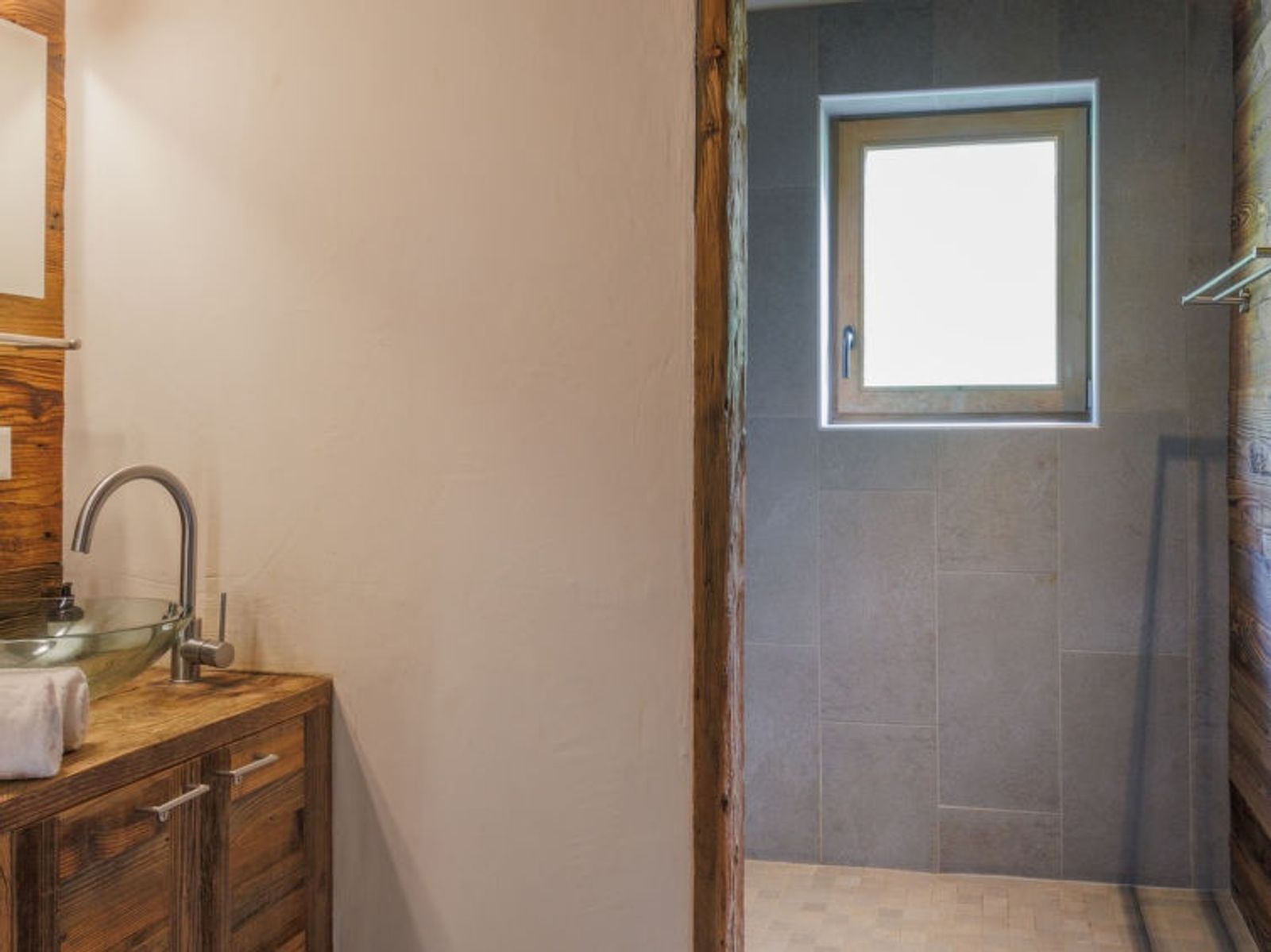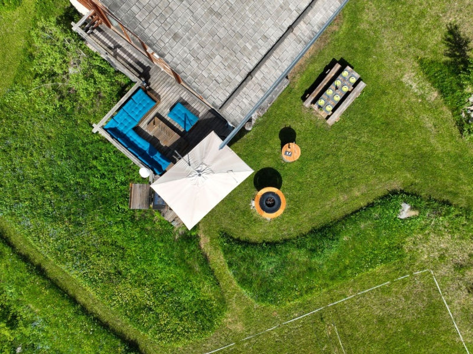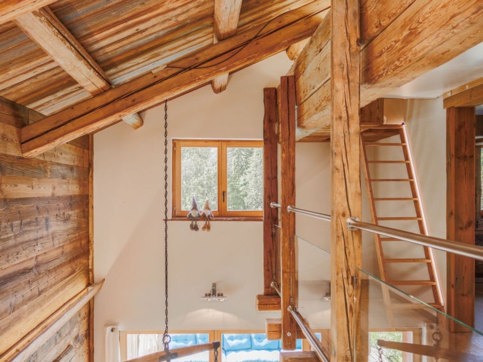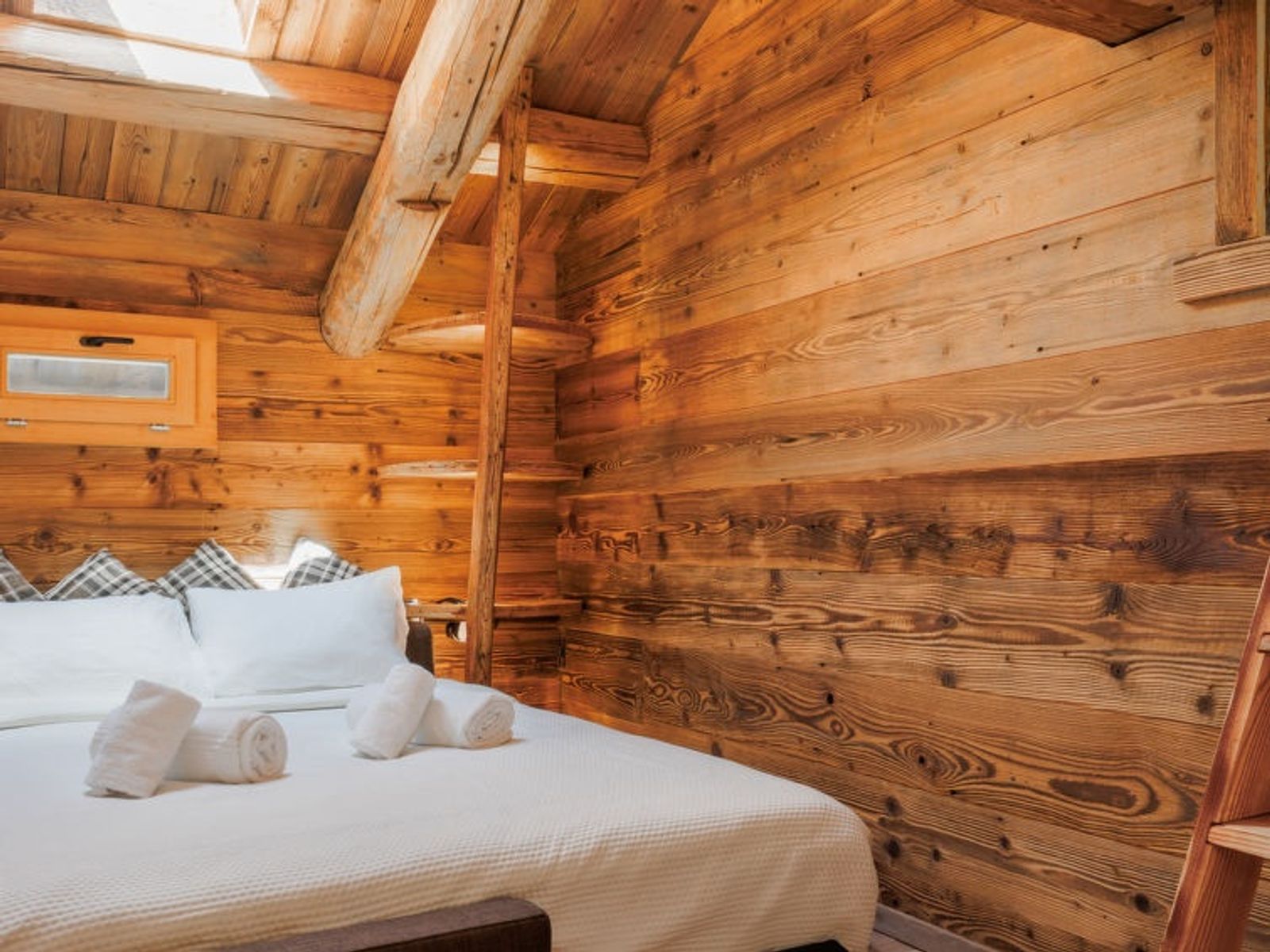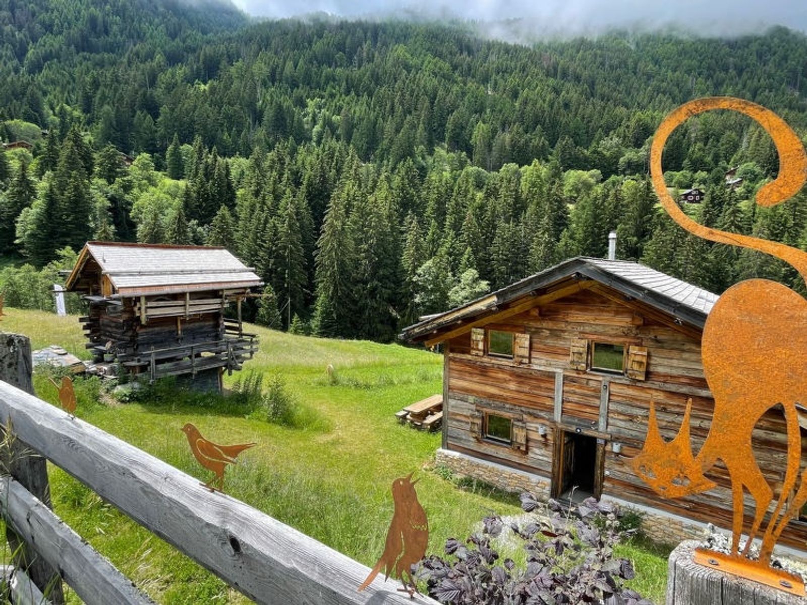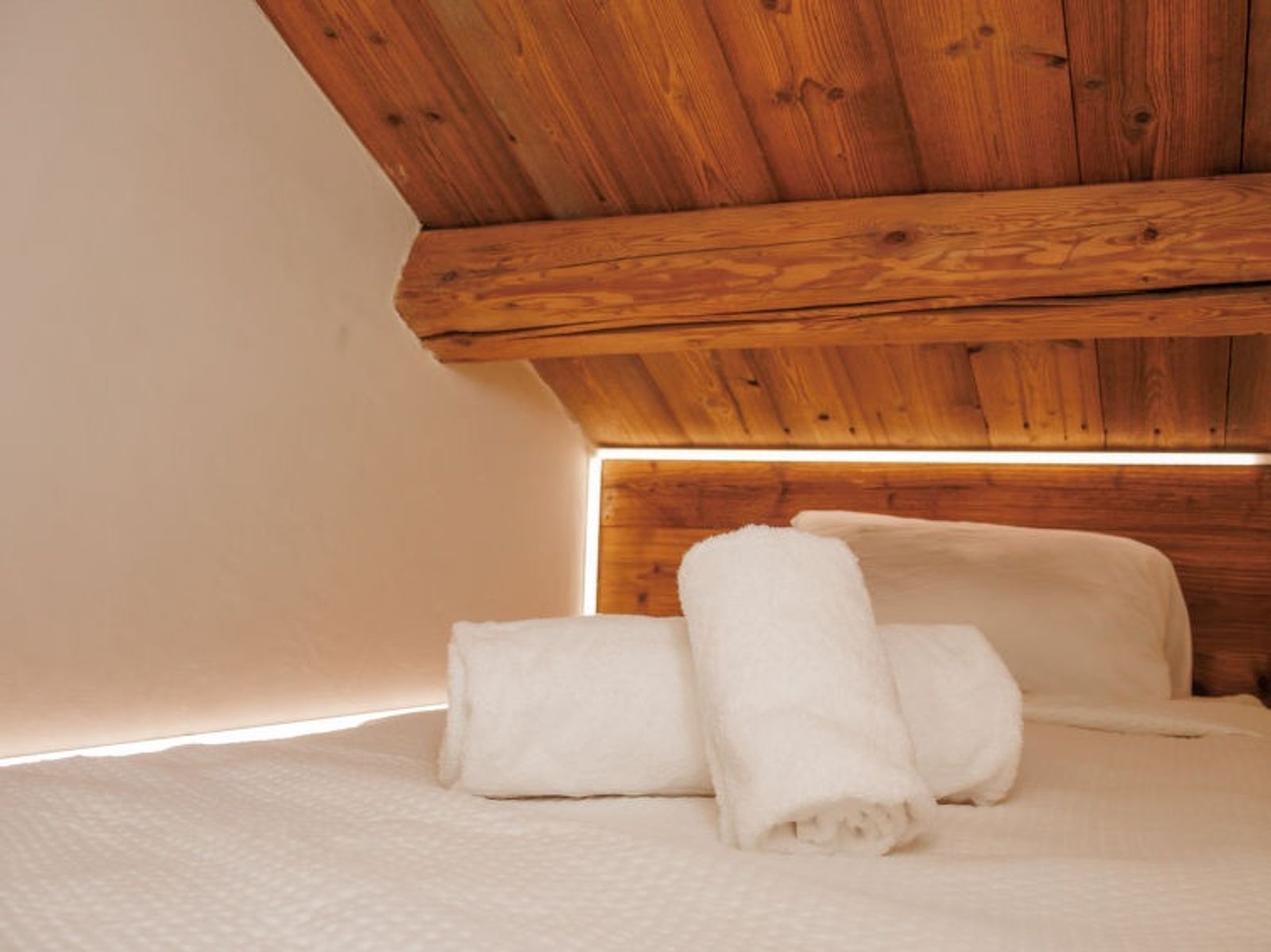 " Chalet Gaea", 5-Zimmer-Chalet 140 m2 auf 3 Stockwerken, Nordostlage. Objekt geeignet für 6 Erwachsene + 3 Kinder. Teilweise abgeschrägt, sehr komfortabel und schön eingerichtet: Eingang. Wohn-/Esszimmer mit Schwedenofen und Heimkino. Ausgang zur Terrasse. Offene Küche (Backofen, Geschirrspüler, 4 Induktionskochplatten, Toaster, Wasserkocher, Mikrowelle, Tiefkühler, elektrische Kaffeemaschine, Kapseln für die Kaffeemaschine (Nespresso) extra, Racletteofen, Fondue Set (Käse)). Bad/Dusche/WC. Unteres Geschoss: 1 Zimmer mit 1 franz. Bett (180 cm, Länge 200 cm), Bad/Dusche/WC. Obergeschoss: 1 Zimmer mit 1 Bett (90 cm, Länge 200 cm), 1 franz. Bett (160 cm, Länge 200 cm). (Leiter) abgeschrägte, offene kleine Galerie, Deckenhöhe 120 - 145 cm mit 1 Bett (90 cm, Länge 200 cm). 1 Zimmer, ohne Schrank mit 1 Doppeldiwanbett (140 cm, Länge 200 cm). Dachgeschoss: (Leiter) abgeschrägte, offene Galerie, Deckenhöhe 48 - 135 cm mit 1 Bett (90 cm, Länge 200 cm). Grosse Terrasse. Terrassenmöbel, Gartengrill, Liegestühle. Sehr schöne Sicht auf die Berge. Zur Verfügung: Waschmaschine, Wäschetrockner, Haartrockner. Internet (WLAN, gratis). Parkplatz (3 Autos). Bitte beachten: nicht geeignet für Kinder unter 8 Jahren. Nichtraucher-Unterkunft. Anstelle eines abgeschlossenen Schlafzimmers befinden sich manche Schlafplätze in einem offenen Bereich (Galerie, Nische etc.).