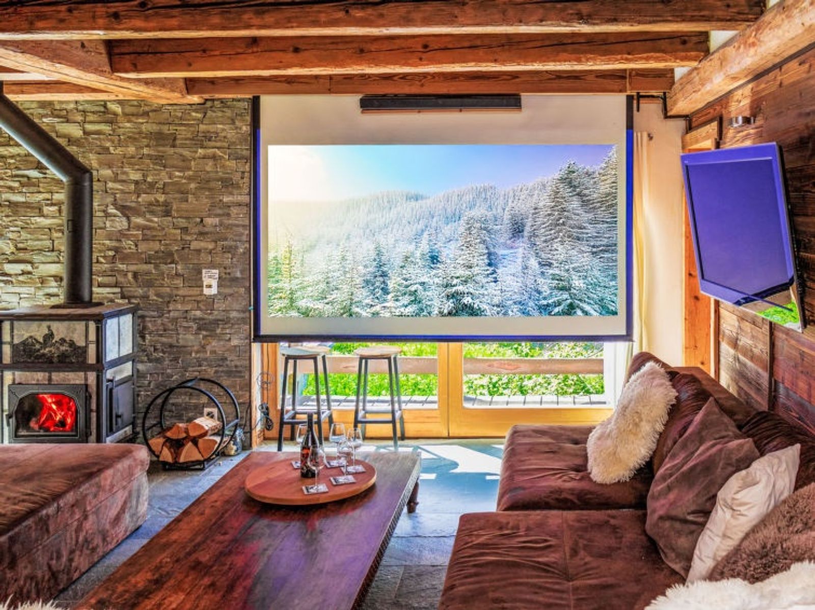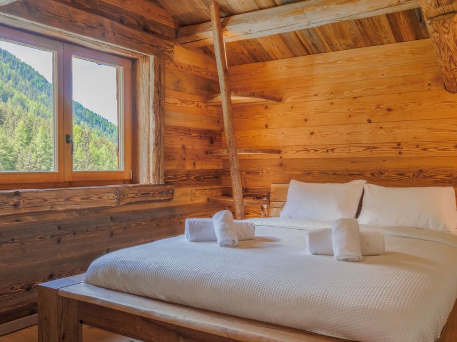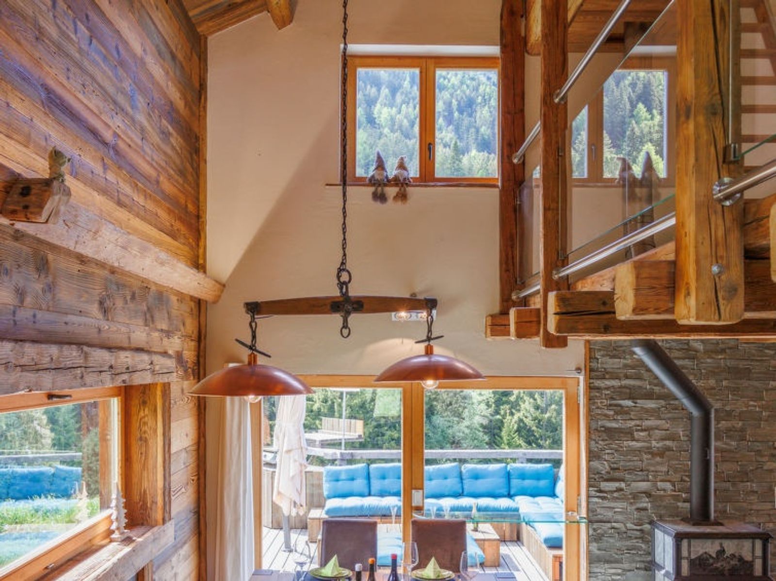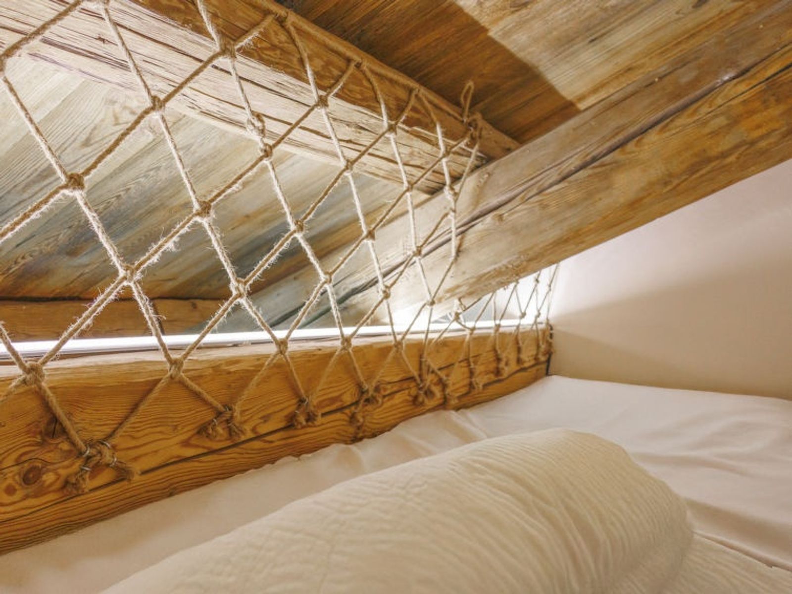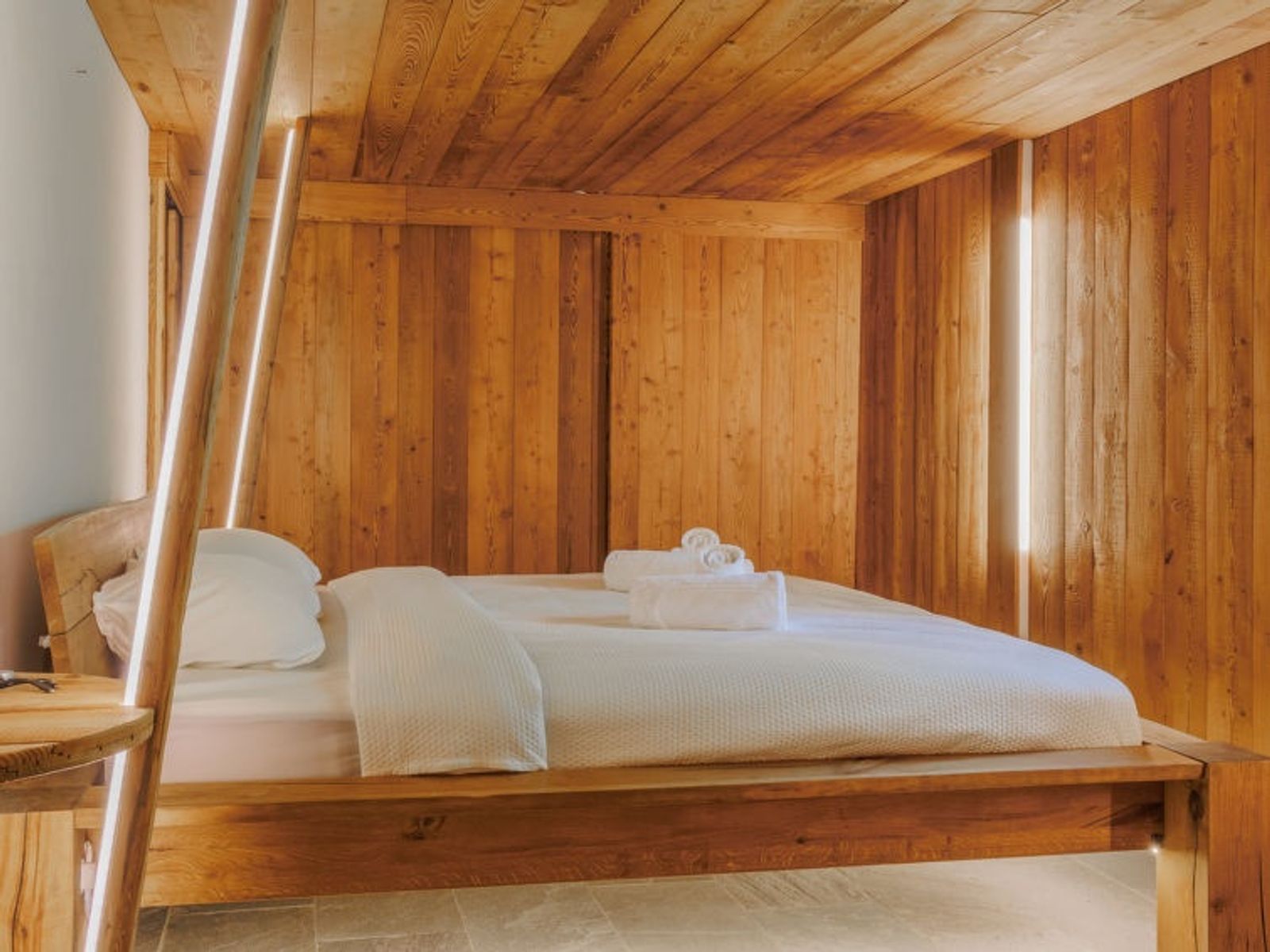 " Chalet Gaea", 5-Zimmer-Chalet 140 m2 auf 3 Stockwerken, Nordostlage. Objekt geeignet für 6 Erwachsene + 3 Kinder. Teilweise abgeschrägt, sehr komfortabel und schön eingerichtet: Eingang. Wohn-/Esszimmer mit Schwedenofen und Heimkino. Ausgang zur Terrasse. Offene Küche (Backofen, Geschirrspüler, 4 Induktionskochplatten, Toaster, Wasserkocher, Mikrowelle, Tiefkühler, elektrische Kaffeemaschine, Kapseln für die Kaffeemaschine (Nespresso) extra, Racletteofen, Fondue Set (Käse)). Bad/Dusche/WC. Unteres Geschoss: 1 Zimmer mit 1 franz. Bett (180 cm, Länge 200 cm), Bad/Dusche/WC. Obergeschoss: 1 Zimmer mit 1 Bett (90 cm, Länge 200 cm), 1 franz. Bett (160 cm, Länge 200 cm). (Leiter) abgeschrägte, offene kleine Galerie, Deckenhöhe 120 - 145 cm mit 1 Bett (90 cm, Länge 200 cm). 1 Zimmer, ohne Schrank mit 1 Doppeldiwanbett (140 cm, Länge 200 cm). Dachgeschoss: (Leiter) abgeschrägte, offene Galerie, Deckenhöhe 48 - 135 cm mit 1 Bett (90 cm, Länge 200 cm). Grosse Terrasse. Terrassenmöbel, Gartengrill, Liegestühle. Sehr schöne Sicht auf die Berge. Zur Verfügung: Waschmaschine, Wäschetrockner, Haartrockner. Internet (WLAN, gratis). Parkplatz (3 Autos). Bitte beachten: nicht geeignet für Kinder unter 8 Jahren. Nichtraucher-Unterkunft. Anstelle eines abgeschlossenen Schlafzimmers befinden sich manche Schlafplätze in einem offenen Bereich (Galerie, Nische etc.).