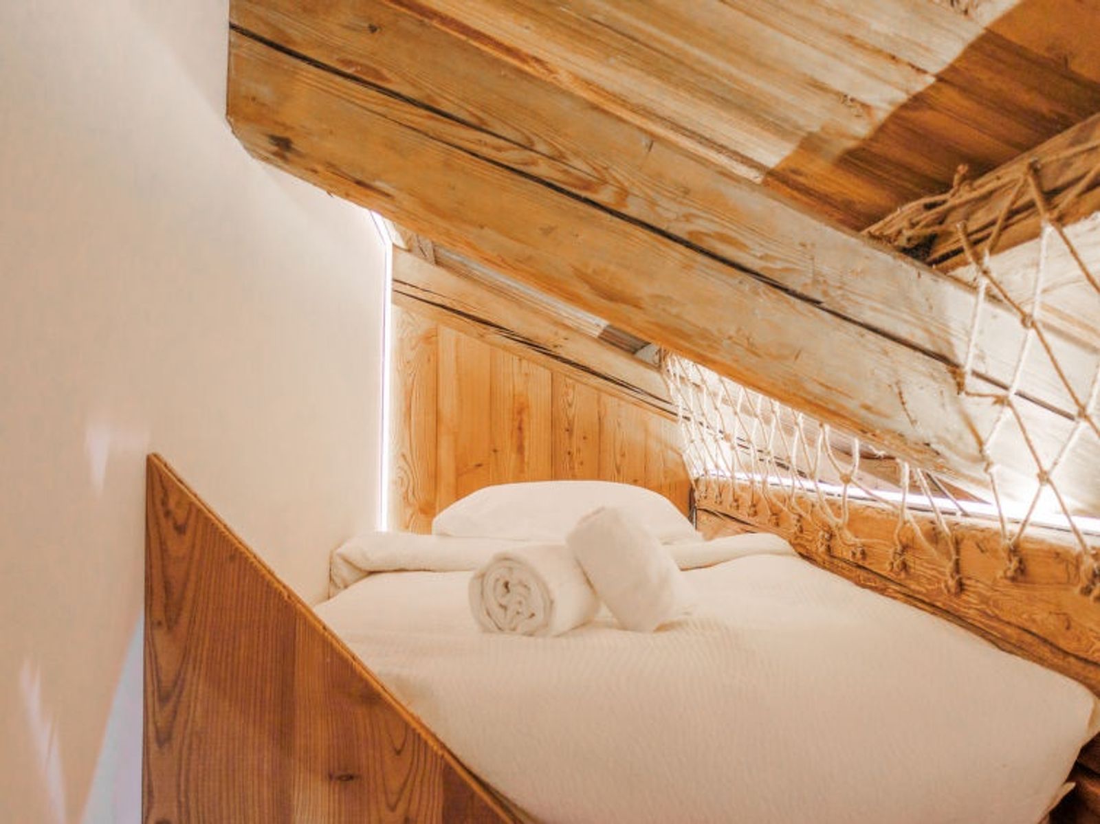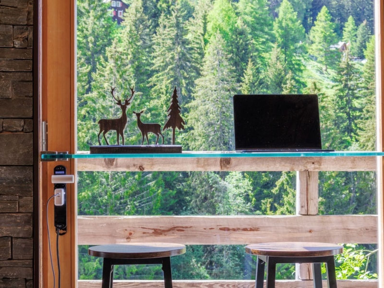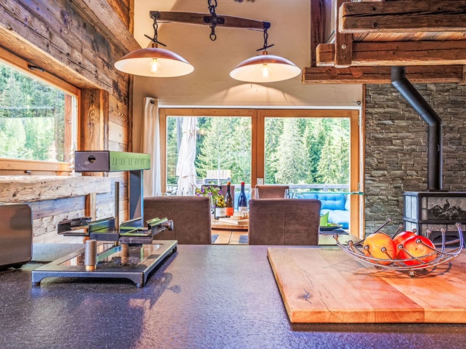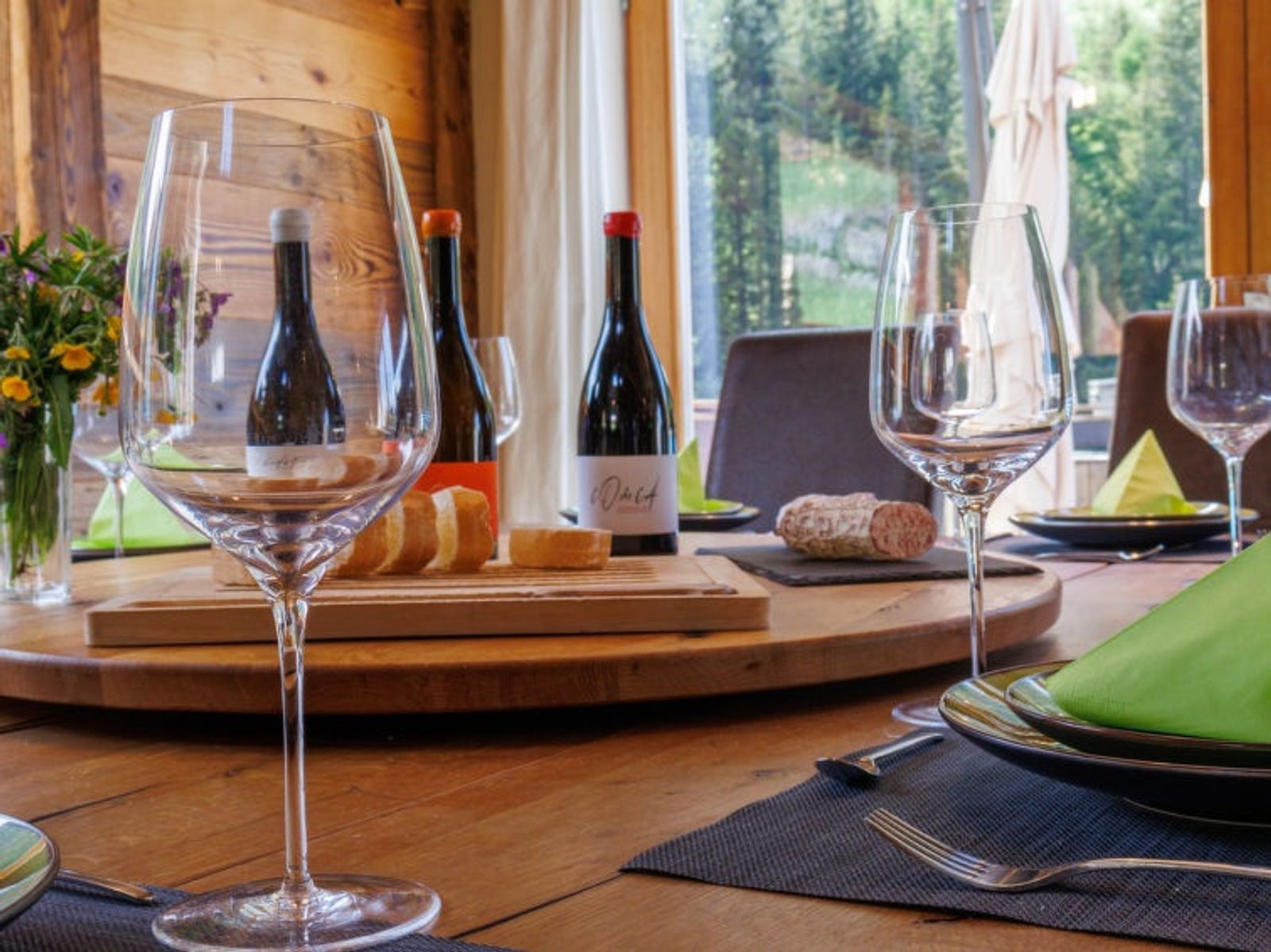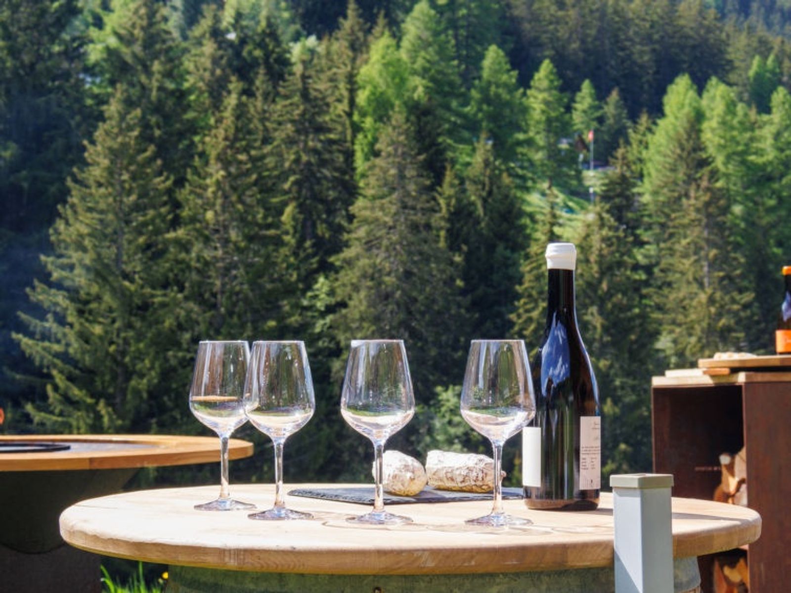 " Chalet Gaea", 5-Zimmer-Chalet 140 m2 auf 3 Stockwerken, Nordostlage. Objekt geeignet für 6 Erwachsene + 3 Kinder. Teilweise abgeschrägt, sehr komfortabel und schön eingerichtet: Eingang. Wohn-/Esszimmer mit Schwedenofen und Heimkino. Ausgang zur Terrasse. Offene Küche (Backofen, Geschirrspüler, 4 Induktionskochplatten, Toaster, Wasserkocher, Mikrowelle, Tiefkühler, elektrische Kaffeemaschine, Kapseln für die Kaffeemaschine (Nespresso) extra, Racletteofen, Fondue Set (Käse)). Bad/Dusche/WC. Unteres Geschoss: 1 Zimmer mit 1 franz. Bett (180 cm, Länge 200 cm), Bad/Dusche/WC. Obergeschoss: 1 Zimmer mit 1 Bett (90 cm, Länge 200 cm), 1 franz. Bett (160 cm, Länge 200 cm). (Leiter) abgeschrägte, offene kleine Galerie, Deckenhöhe 120 - 145 cm mit 1 Bett (90 cm, Länge 200 cm). 1 Zimmer, ohne Schrank mit 1 Doppeldiwanbett (140 cm, Länge 200 cm). Dachgeschoss: (Leiter) abgeschrägte, offene Galerie, Deckenhöhe 48 - 135 cm mit 1 Bett (90 cm, Länge 200 cm). Grosse Terrasse. Terrassenmöbel, Gartengrill, Liegestühle. Sehr schöne Sicht auf die Berge. Zur Verfügung: Waschmaschine, Wäschetrockner, Haartrockner. Internet (WLAN, gratis). Parkplatz (3 Autos). Bitte beachten: nicht geeignet für Kinder unter 8 Jahren. Nichtraucher-Unterkunft. Anstelle eines abgeschlossenen Schlafzimmers befinden sich manche Schlafplätze in einem offenen Bereich (Galerie, Nische etc.).