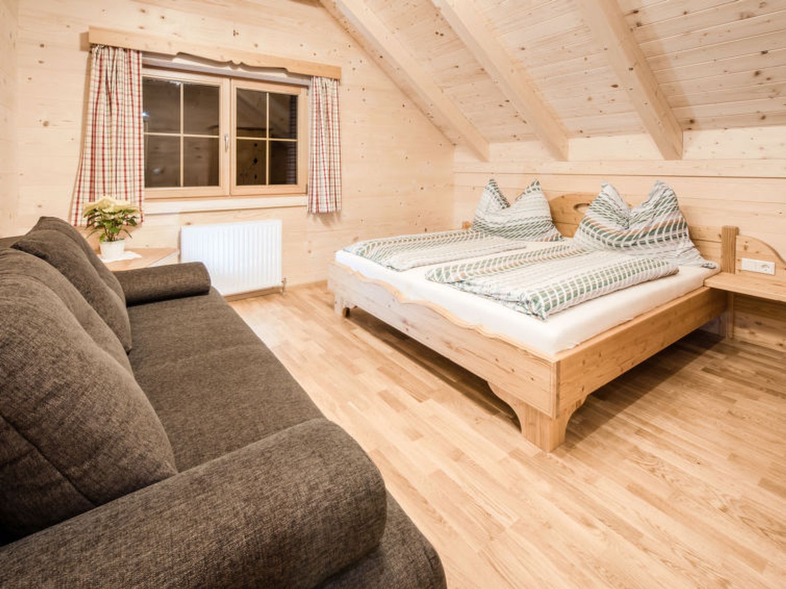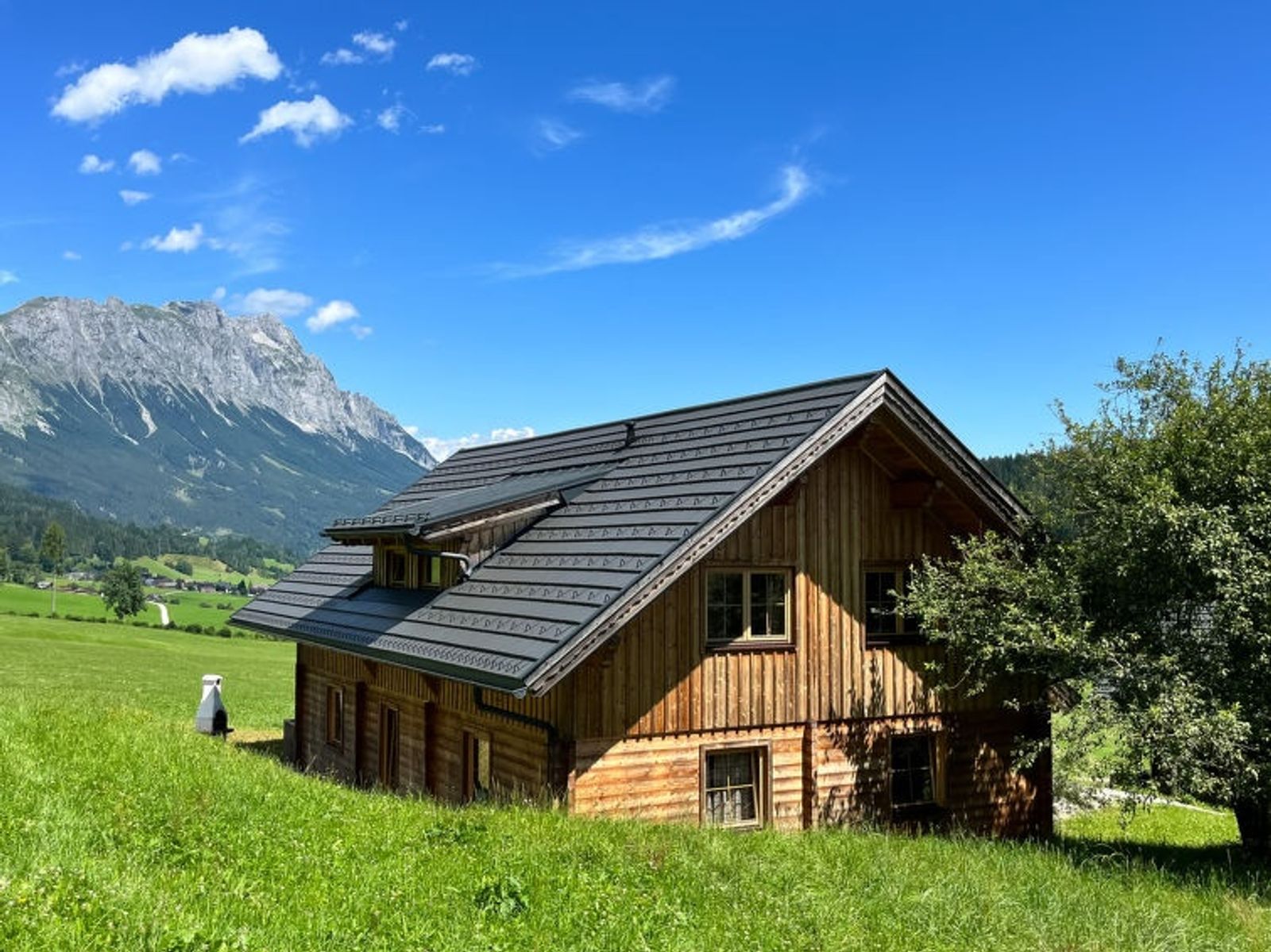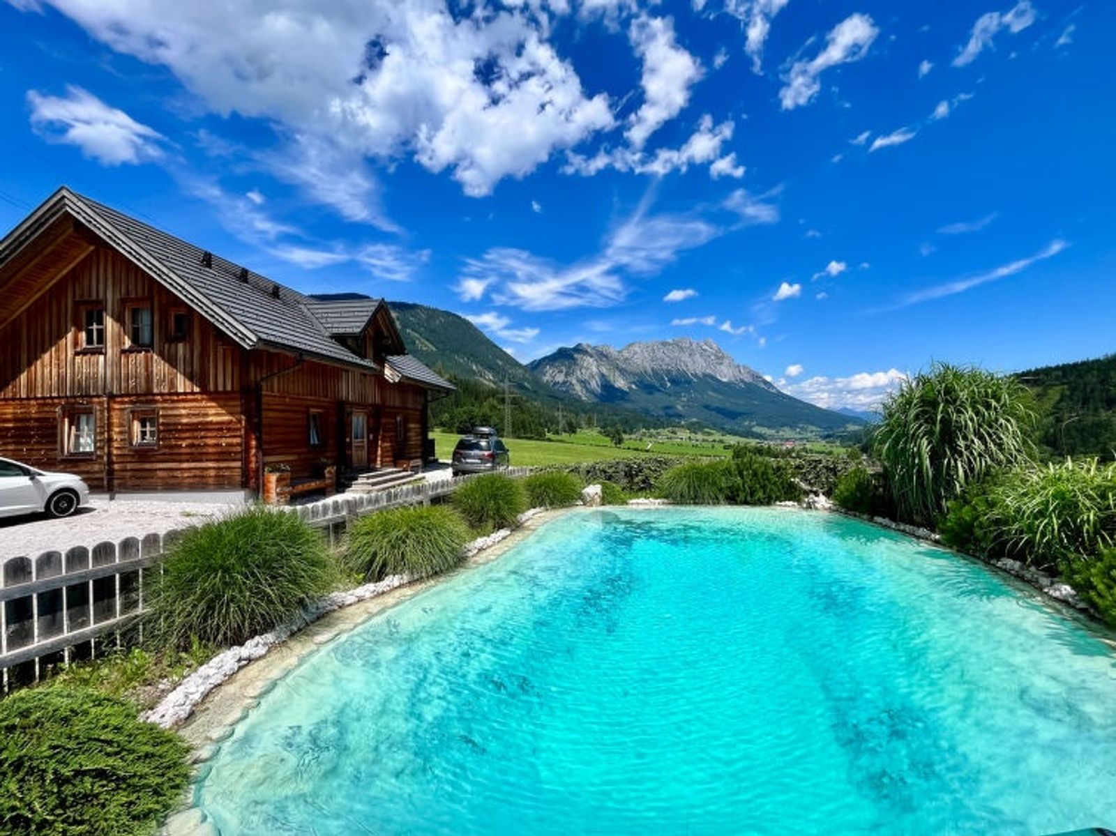 "Grimmingblickhütte", 7-Zimmer-Haus 205 m2 auf 2 Stockwerken. Geräumig, sehr stilvoll und mit viel Holz eingerichtet: grosses Wohn-/Esszimmer mit Schwedenofen, Esstisch, Essecke, Bar und Sat-TV. 2 Zimmer, jedes Zimmer mit 1 Diwanbett und 1 Doppelbett. Offene Küche (Backofen, Geschirrspüler, 4 Glaskeramikplatten, Toaster, Wasserkocher, Mikrowelle, Tiefkühler, elektrische Kaffeemaschine). Dusche, sep. WC, Sauna. Dachgeschoss: 4 abgeschrägte Zimmer, jedes Zimmer mit 1 Diwanbett und 1 Doppelbett. 3 Duschen/WC, Doppelwaschbecken. Heizung, Fussbodenheizung. Holzdielenboden. Komfortable Einrichtung im Landhausstil. Terrasse teilweise überdacht. Terrassenmöbel, Gartengrill, Liegestühle (4). Sehr schöne Sicht auf die Berge, das Tal und Grimming. Zur Verfügung: Sauna, Babybett. Internet (WLAN, gratis). Parkplatz (5 Autos) in 20 m. Bitte beachten: Nichtraucher-Haus. Maximal 1 Haustier/Hund erlaubt. Rauchmelder.