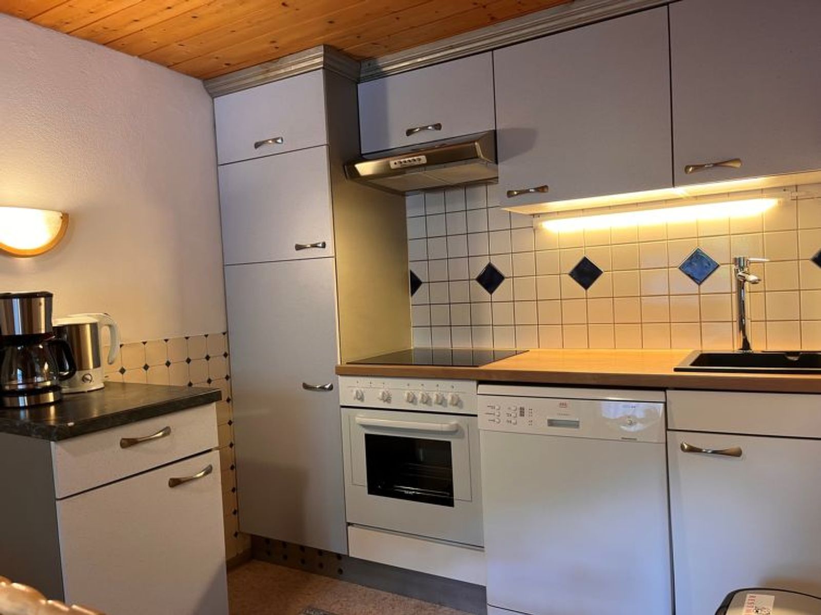 "Hannelore", 5-Zimmer-Haus 150 m2 auf 2 Stockwerken. Rustikal und gemütlich eingerichtet: Wohn-/Schlafzimmer mit 2 Diwanbetten, Sat-TV und Kachelofen. 1 Zimmer mit 1 Doppelbett. Küche (Geschirrspüler, 4 Glaskeramikplatten, Wasserkocher, elektrische Kaffeemaschine) mit Essecke. Bad, sep. WC, Doppelwaschbecken. Obergeschoss: Wohn-/Schlafzimmer mit 1 Doppeldiwanbett und Sat-TV. 2 Doppelzimmer. Kochnische im Eingang (4 Kochplatten, Toaster, Wasserkocher, Mikrowelle, elektrische Kaffeemaschine) mit Essecke. Bad, sep. WC, Doppelwaschbecken. Ölheizung. Balkon, Terrasse. Terrassenmöbel. Zur Verfügung: Internet (WLAN, gratis). Maximal 2 Haustiere/Hunde erlaubt.