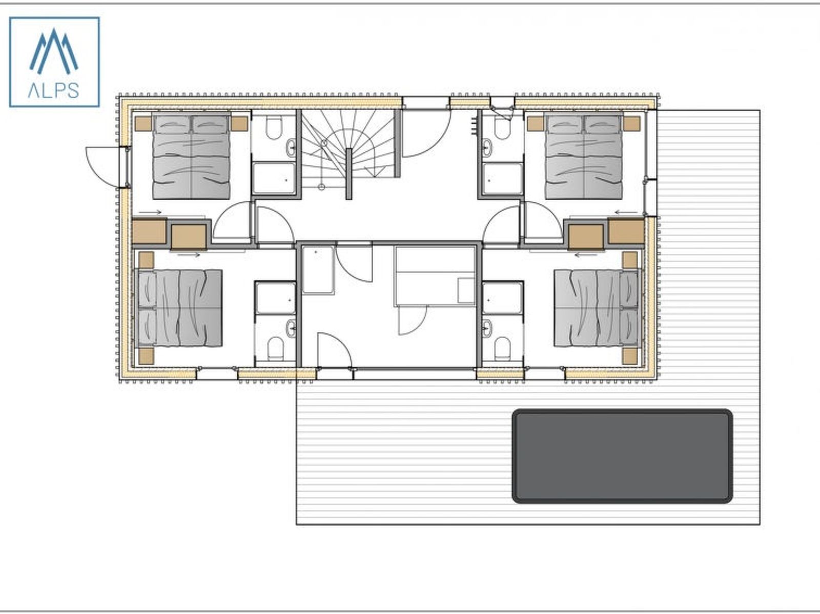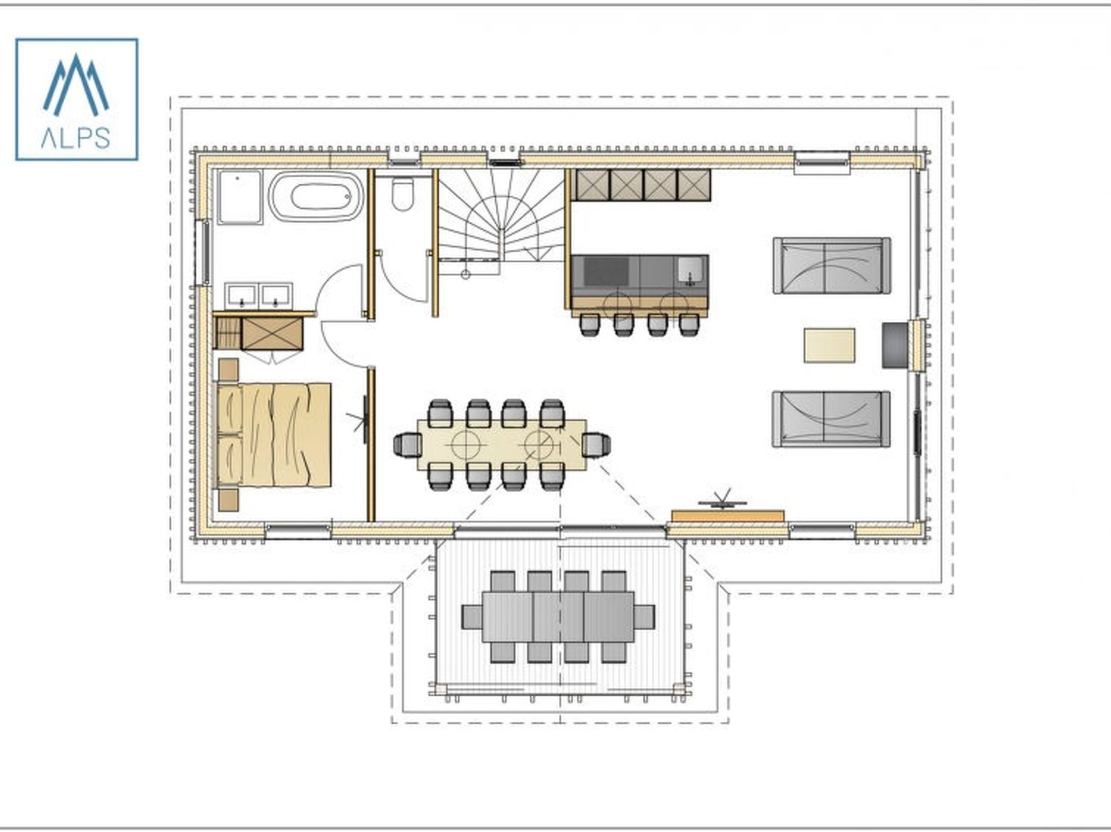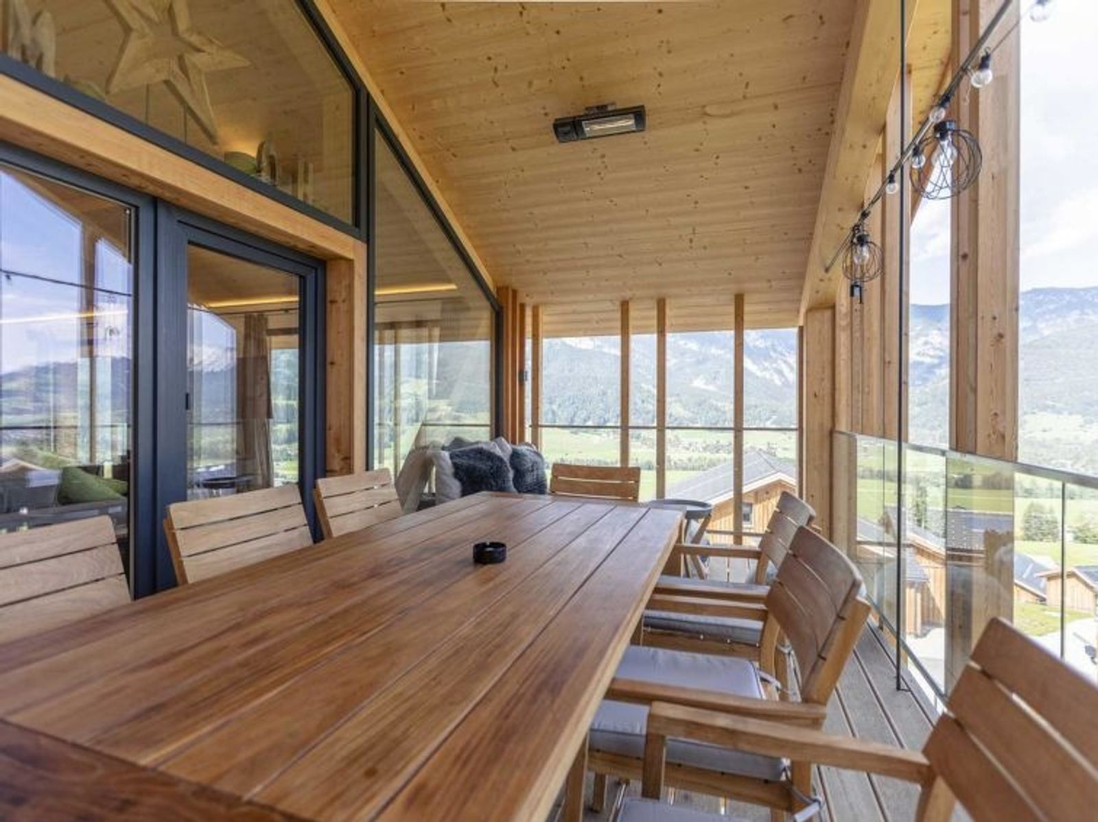 "Premium mit 5 Schlafzimmern, Sauna &Pool", 6-Zimmer-Chalet 150 m2. Hell, komfortabel und luxuriös eingerichtet: Wohn-/Esszimmer mit Schwedenofen, Esstisch, Sat-TV, Flachbildschirm und G-Heizofen. 4 Doppelzimmer, jedes Zimmer mit Dusche/WC. 1 Doppelzimmer. Offene Küche (Backofen, Geschirrspüler, 4 Glaskeramikplatten, Toaster, Wasserkocher, Mikrowelle, elektrische Kaffeemaschine). Bad/WC, sep. WC, Hydromassage-Dusche, Sauna. Balkon. Balkonmöbel. Sehr schöne Panoramasicht auf die Berge. Zur Verfügung: Internet (Wireless LAN, gratis). E-Ladestation. Bitte beachten: Nichtraucher-Unterkunft. Beim Mietobjekt handelt es sich um ein Typenhaus bzw. Um eine Typenwohnung. Das Chalet Dachstein verfügt über einen eigenen beheizten Aussenpool.