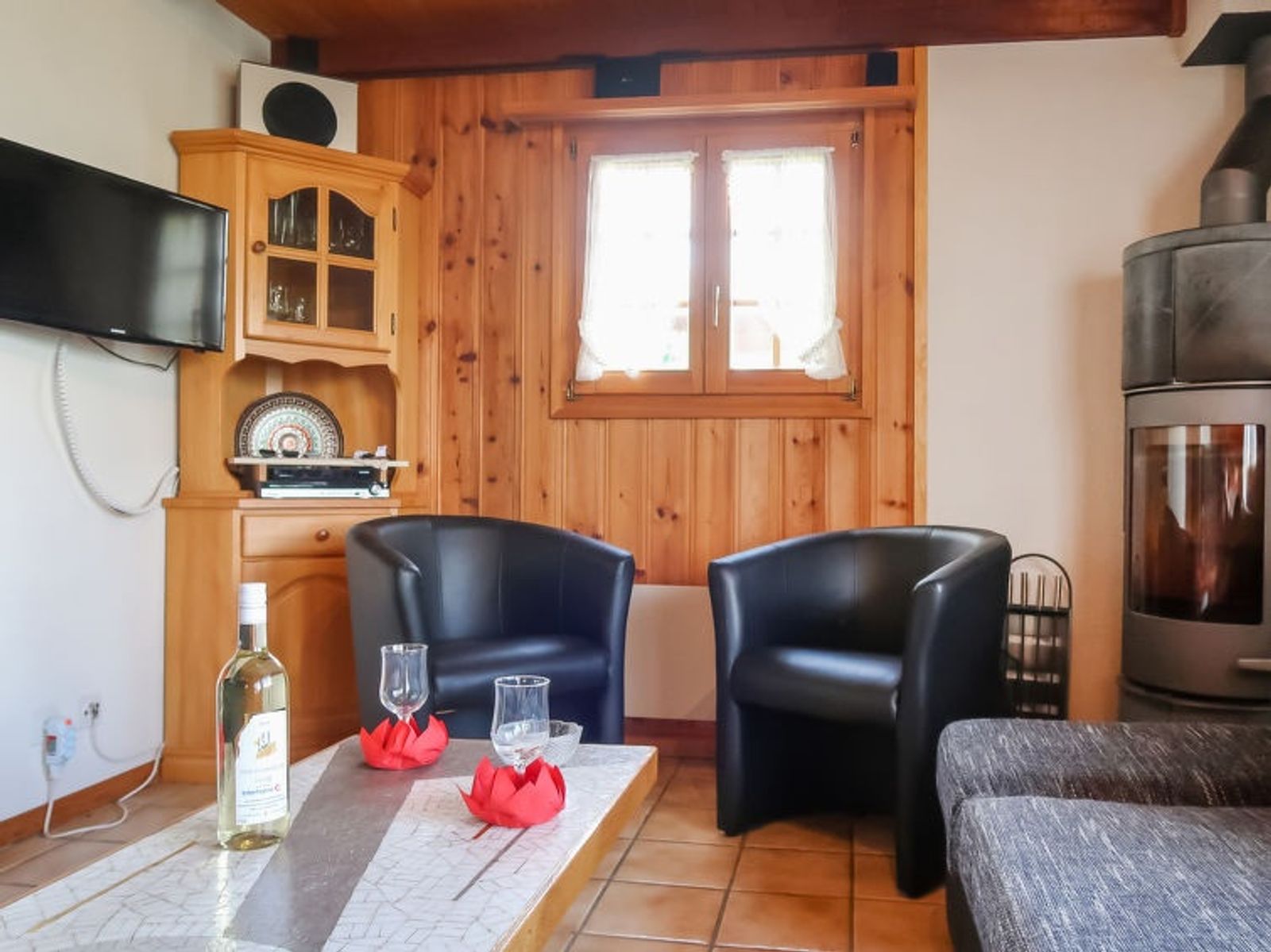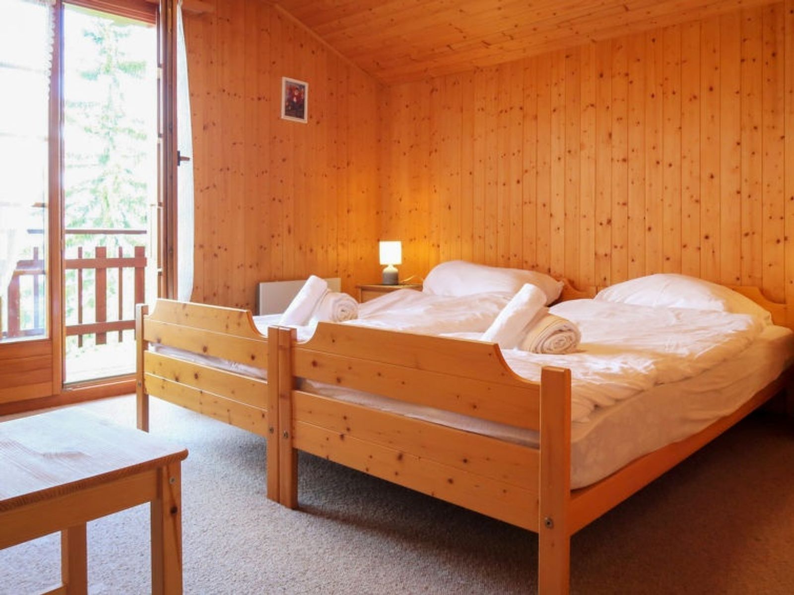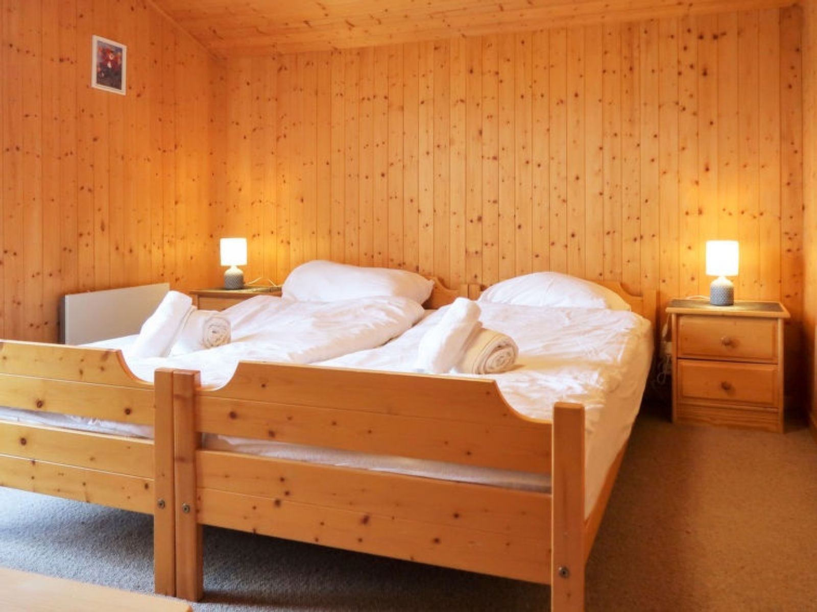 "Joseva", 4-Zimmer-Chalet 85 m2 im 2. Stock. Zweckmässig und schön eingerichtet: Eingang. Wohn-/Esszimmer mit Schwedenofen und Sat-TV. Ausgang zur Terrasse, Richtung Norden. Offene Küche (Backofen, Geschirrspüler, 4 Glaskeramikplatten, Toaster, Wasserkocher, elektrische Kaffeemaschine, Kapseln für die Kaffeemaschine (Delizio) extra, Racletteofen, Fondue Set (Käse)). Dusche/WC. E-Heizung. Obergeschoss: 1 Zimmer mit 1 franz. Bett (160 cm, Länge 200 cm). Ausgang zum Balkon. 1 Zimmer mit 2 Betten (90 cm, Länge 200 cm). Ausgang zum Balkon. 1 kleines Kinderzimmer mit 1 x 2 Etagenbetten (90 cm, Länge 190 cm). Bad/WC. Balkon, Nordlage, Terrasse, Nordlage und Westlage. Terrassenmöbel, Liegestühle (2). Schöne Sicht auf die Berge. Zur Verfügung: Waschmaschine, Wäschetrockner, Haartrockner. Internet (WLAN, gratis). Parkplatz, Garage beim Haus, Höhe 240 cm, Breite 200 cm. Bitte beachten: Nichtraucher-Unterkunft. Maximal 1 Haustier/Hund erlaubt.