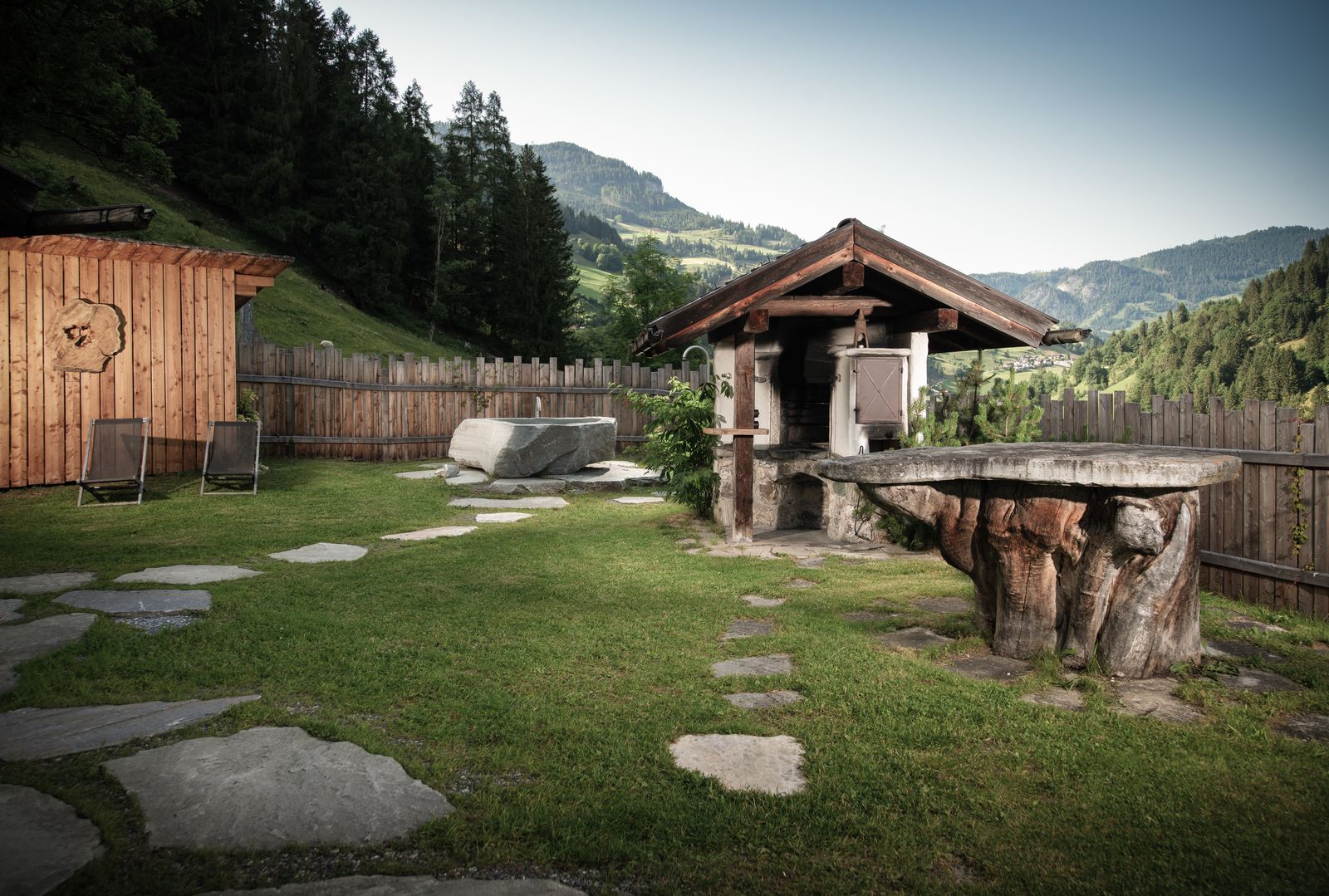 - Steinbadewanne im Außenbereich