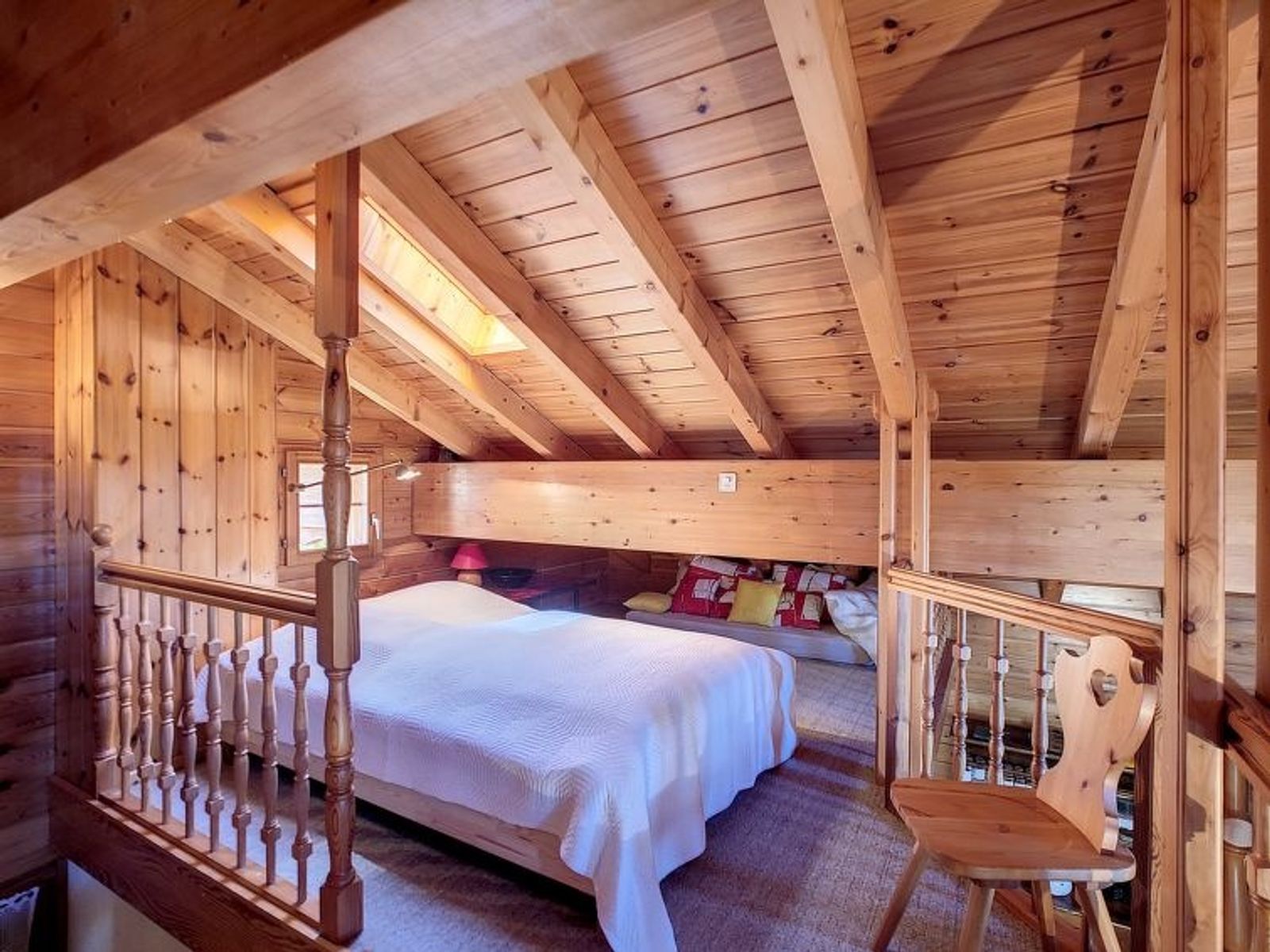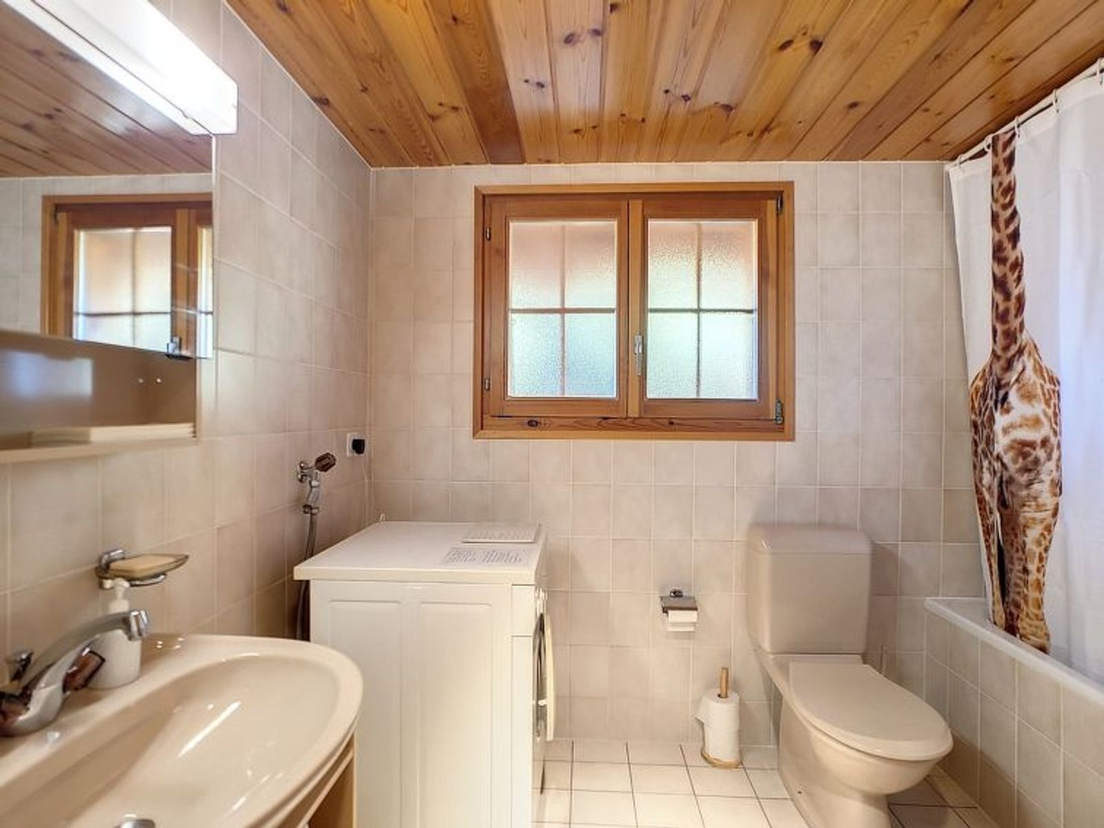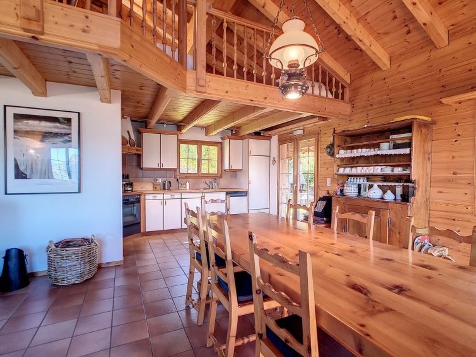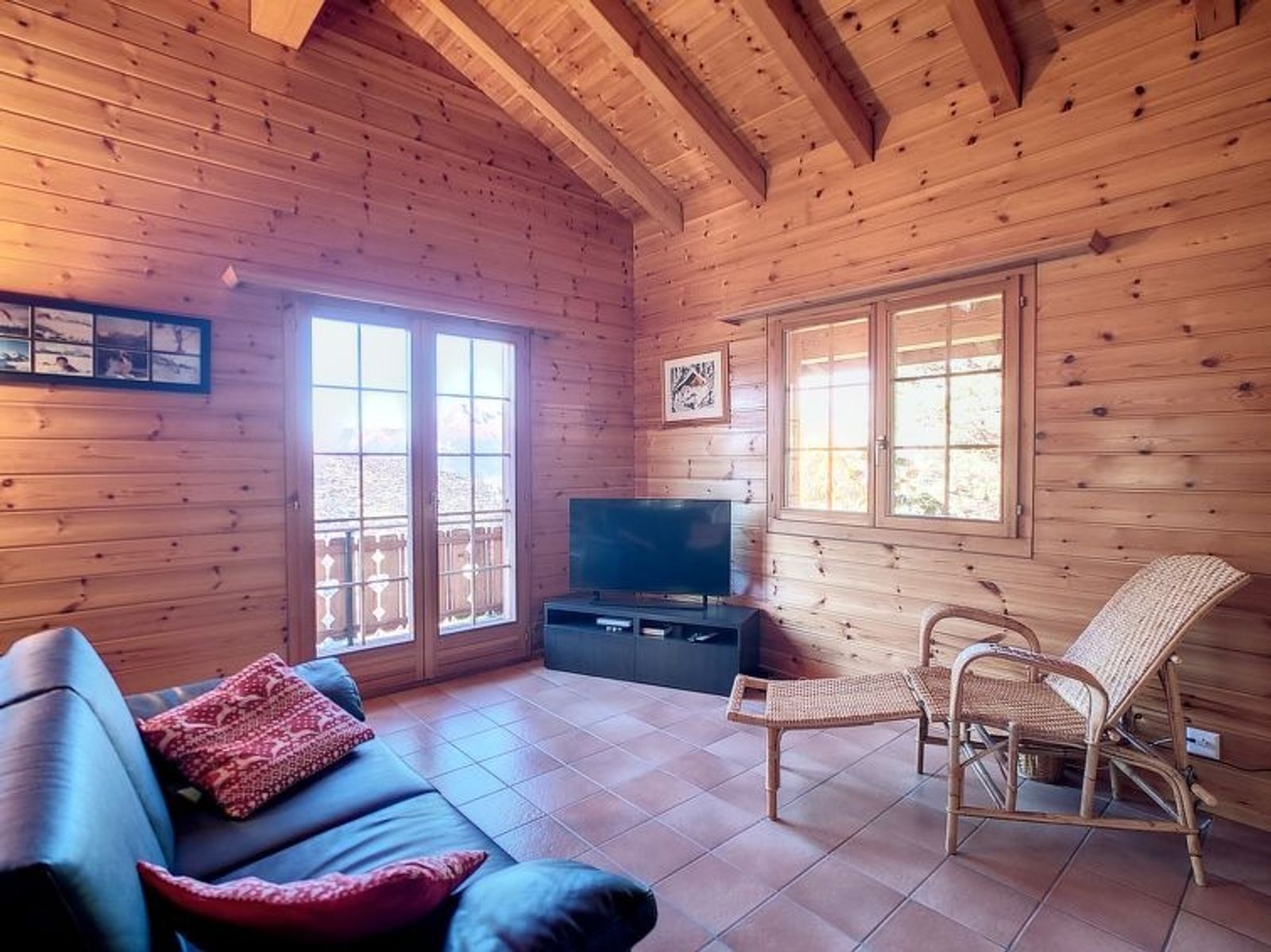 "Les 4 Saisons", 4-Zimmer-Chalet 180 m2 auf 3 Stockwerken, Südostlage. Geräumig, komfortabel und mit viel Holz eingerichtet: grosses Wohn-/Esszimmer mit Schwedenofen und Kabel-TV. Ausgang zum Balkon, zur Terrasse, Richtung Süden und Richtung Westen. Grosse, offene Küche (Backofen, Geschirrspüler, 4 Glaskeramikplatten, elektrische Kaffeemaschine, Racletteofen, Fondue Set (Chinoise, Käse)). Bad/WC. Ölheizung. Unteres Geschoss: 1 Zimmer mit 1 Doppelbett (2 x 90 cm, Länge 190 cm). Ausgang zum Garten. 1 Zimmer mit 1 franz. Bett (140 cm, Länge 190 cm). Ausgang zum Garten. 1 Zimmer mit 1 x 2 Etagenbetten (90 cm, Länge 190 cm). Ausgang zum Garten. Dusche/WC. Obergeschoss: abgeschrägte, offene Galerie mit 1 franz. Bett (140 cm, Länge 190 cm) (2 Pers.). Grosser Balkon, Südlage und Ostlage, Garten, Rasen. Terrassenmöbel, Gartengrill. Panoramasicht auf die Berge und den Wald. Zur Verfügung: Waschmaschine, Haartrockner. Internet (Wireless LAN, gratis). Garage (2 Autos) in 150 m, Höhe 200 cm. Bitte beachten: Nichtraucher-Haus. Anstelle eines abgeschlossenen Schlafzimmers befinden sich manche Schlafplätze in einem offenen Bereich (Galerie, Nische etc.).