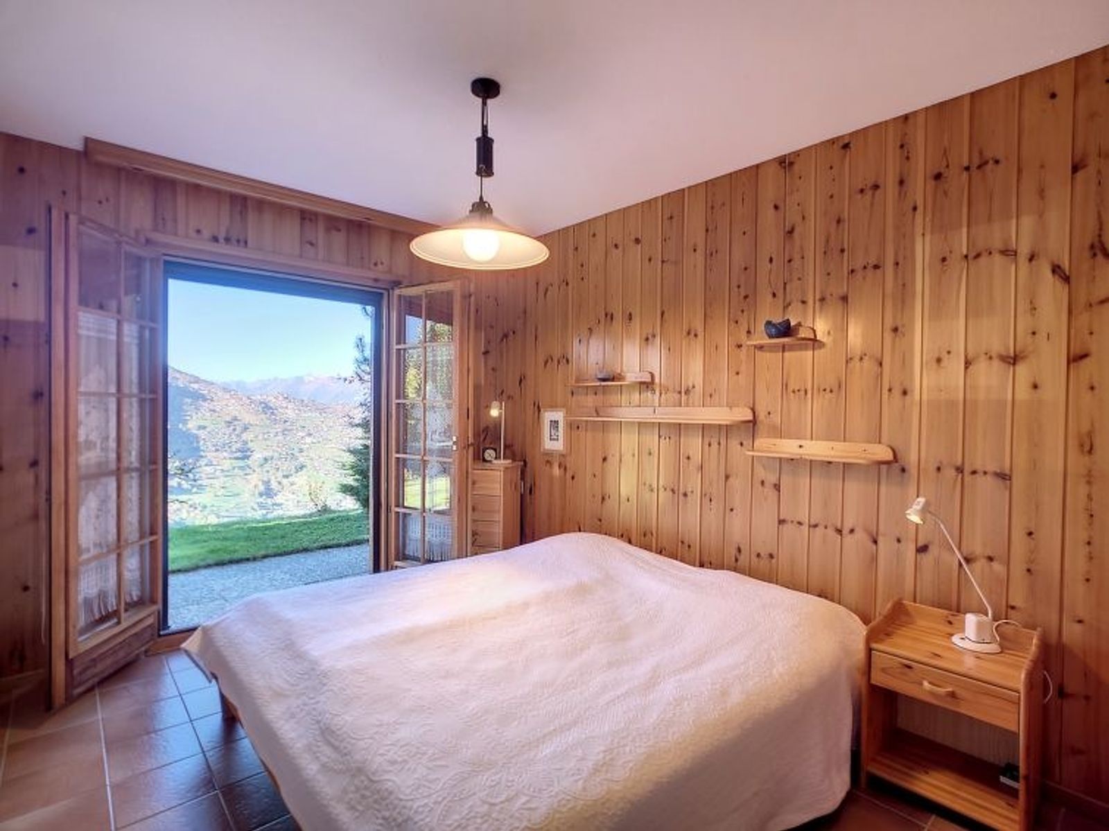 Veysonnaz: Gemütliches Chalet "Les 4 Saisons", auf 3 Stockwerken. Am Ortsrand, 500 m vom Zentrum, ruhige, sonnige Lage, 1 km vom Skigebiet, Richtung Südosten. Zur Alleinbenutzung: grosser terrassierter Garten Rasen. Terrasse, Gartenmöbel. Zufahrt (Bergstrasse). Im Winter bitte Schneeketten mitbringen. Treppenweg (10 Stufen) bis zum Haus. Einzelgarage in 150 m. Supermarkt 1 km, Bushaltestelle "skibus" 100 m. Skisportanlagen 1 km, Skipisten 1 km. Bekannte Skigebiete sind gut erreichbar: Veysonnaz 4 Vallées 1 km. Der Besitzer akzeptiert keine Jugendgruppen.