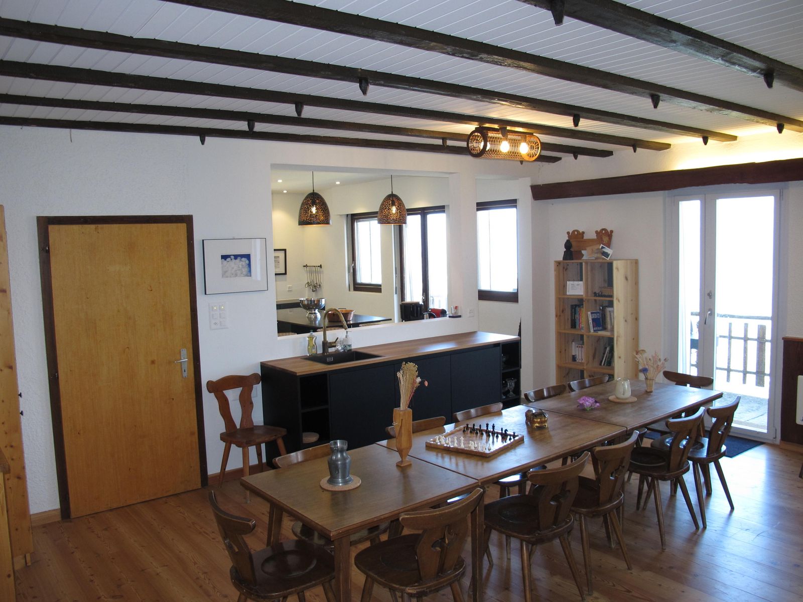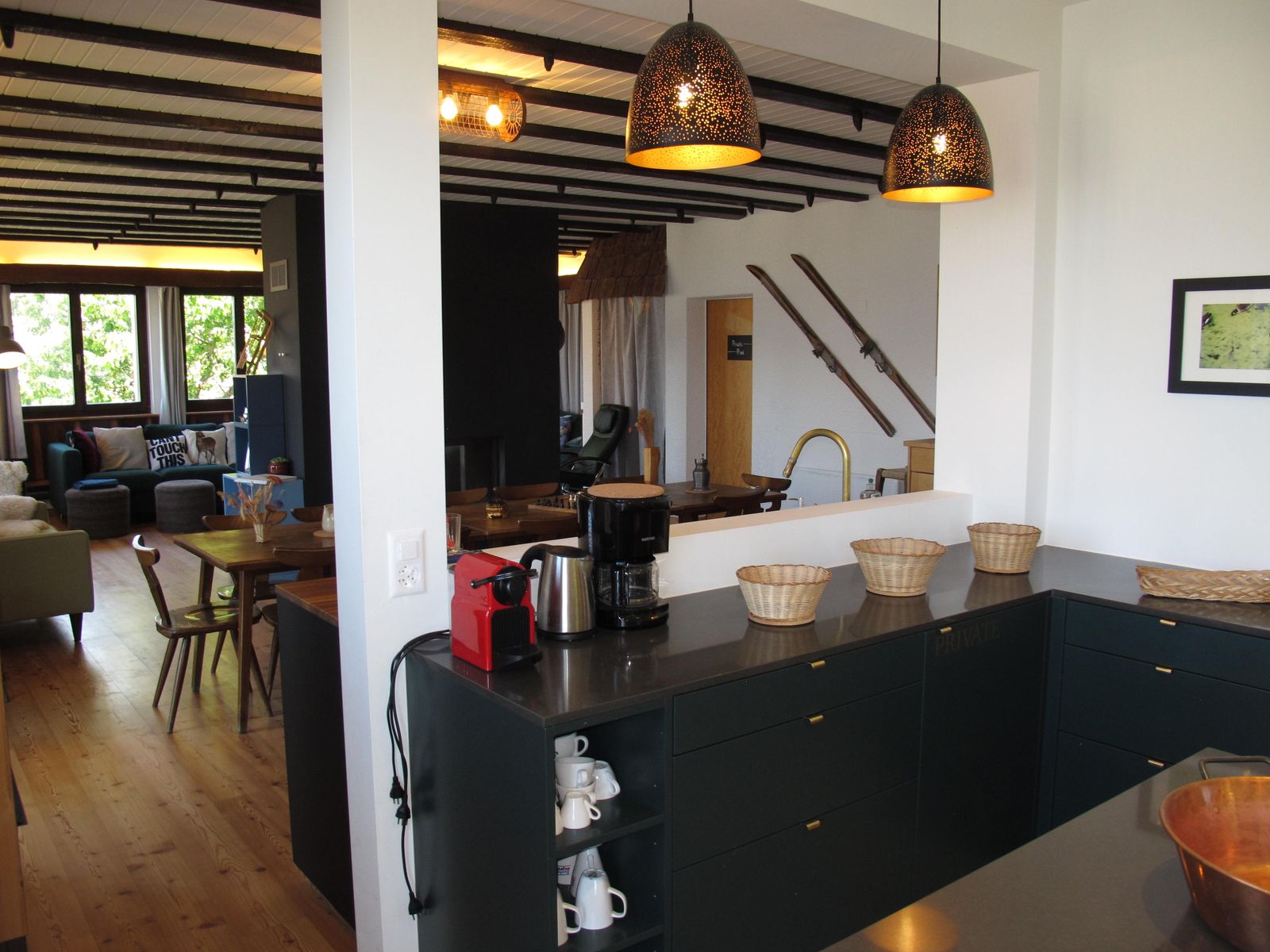 - Küchenausstattung: Herd mit 4 Ceranfelder, 2x Kühlschrank, Gefrierschrank, Backofen, 2x Geschirrspülmaschine, 2x Kaffeemaschine mit Kapseln, Mikrowelle, Wasserkocher, Toaster, 2x Raclette-Gerät und 2x Fondue-Rechaud