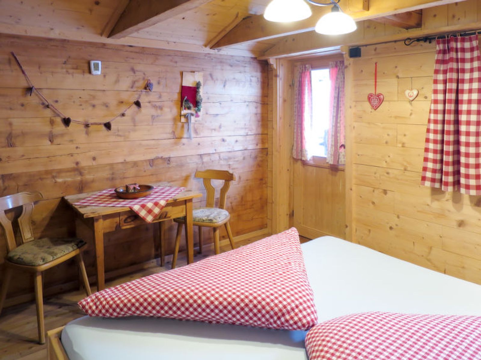 "Simonhütte", 6-Zimmer-Chalet 120 m2 auf 2 Stockwerken. Gemütlich und mit viel Holz eingerichtet: Wohn-/Esszimmer mit Schwedenofen, Essecke, Sat-TV, CD und Stereoanlage. 1 Zimmer mit 1 Bett und 1 Doppelbett. Küche (4 Kochplatten, Geschirrspüler, Toaster, Wasserkocher, Mikrowelle, elektrische Kaffeemaschine). 2 Duschen, sep. WC. Dachgeschoss: 1 abgeschrägtes Zimmer mit 1 Doppelbett. Ausgang zum Balkon. 1 abgeschrägtes Zimmer mit 1 Doppelbett. 2 abgeschrägte Zimmer, jedes Zimmer mit 1 Bett und 1 Doppelbett. Sep. WC. E-Heizung. Holzdielenboden. Balkon, Terrasse überdacht. Herrliche Panoramasicht. Zur Verfügung: Kinderhochstuhl, Babybett. Internet (WLAN, gratis). E-Ladestation. Maximal 2 Haustiere/Hunde erlaubt.