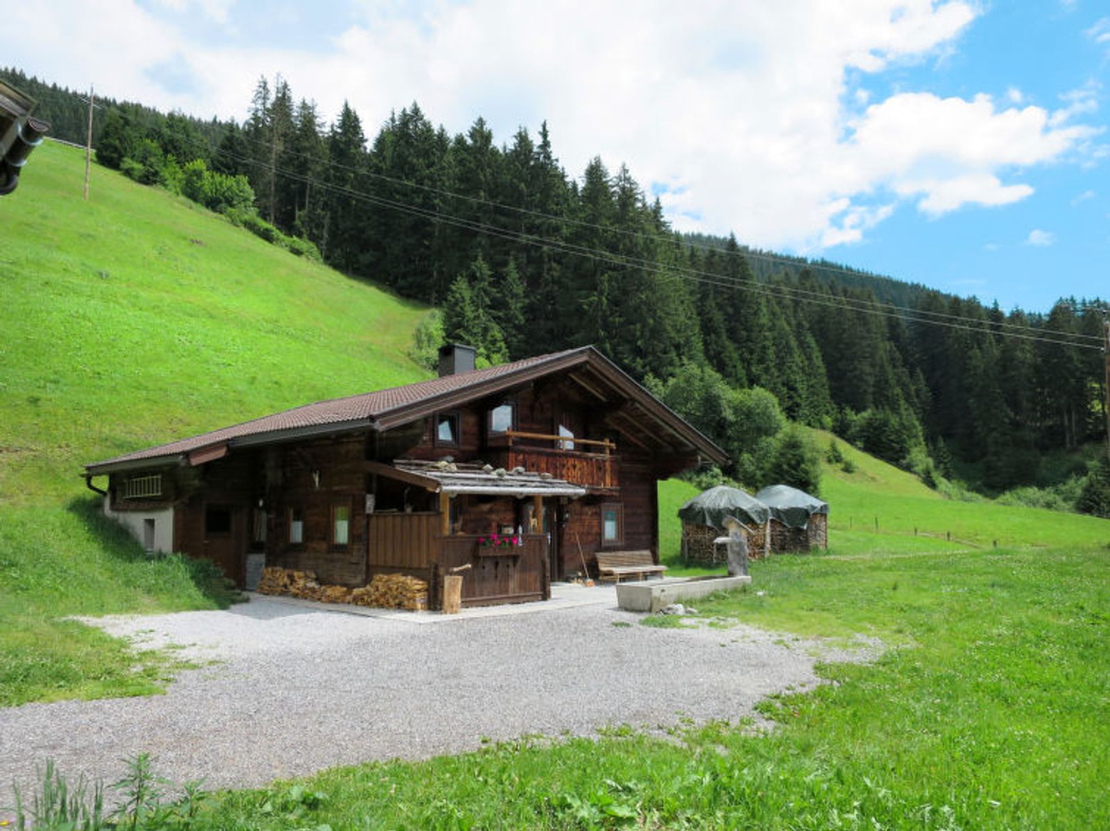 Hochschwendberg 16 km von Mayrhofen: Freistehendes Chalet "Simonhütte", 1'500 m.ü.M., umgeben von Bäumen, Wiesen und Feldern. 16 km vom Zentrum von Mayrhofen, 11 km vom Zentrum von Hippach, am Hang. Zur Alleinbenutzung: Grundstück mit Wiese. Im Hause: Skiraum, Skischuhtrockner. 11 km lange steile, schmale Zufahrt. Im Winter bitte Schneeketten mitbringen. Parkplatz auf dem Grundstück. E-Ladestation. Einkaufsgeschäft 11 km, Restaurant 2 km, Bushaltestelle "Schwendberg Mösl" 2.4 km, Bahnstation "Ramsau i.Z.-Hippach Bahnhof" 11.1 km. Wanderwege ab Haus 50 m, Gondelbahn 1.4 km, Skipisten 2 km.