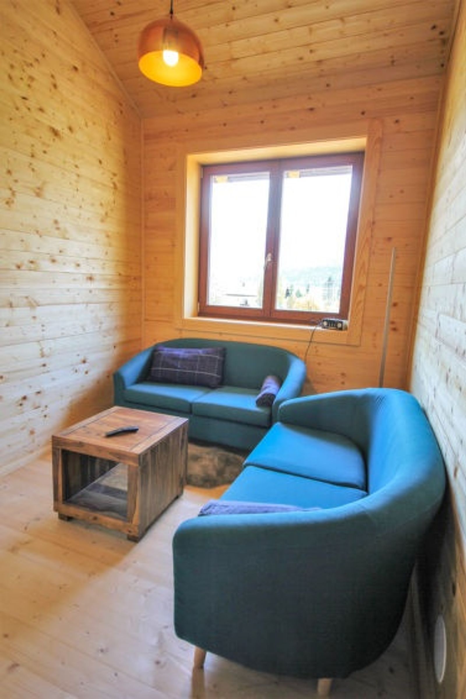 3-Zimmer-Chalet 60 m2. Objekt geeignet für 4 Erwachsene. Mit viel Holz eingerichtet: Wohn-/Esszimmer mit Sat-TV und Holzofen. Ausgang zur Loggia. 1 Doppelzimmer mit 1 Doppelbett. 1 Zimmer mit 2 Betten. Offene Küche (Backofen, Geschirrspüler, 4 Glaskeramikplatten, Toaster, Wasserkocher, elektrische Kaffeemaschine). Dusche, sep. WC. Liegestühle (2), Loggia. Zur Verfügung: Waschmaschine. Bitte beachten: Nichtraucher-Haus. Rauchmelder.