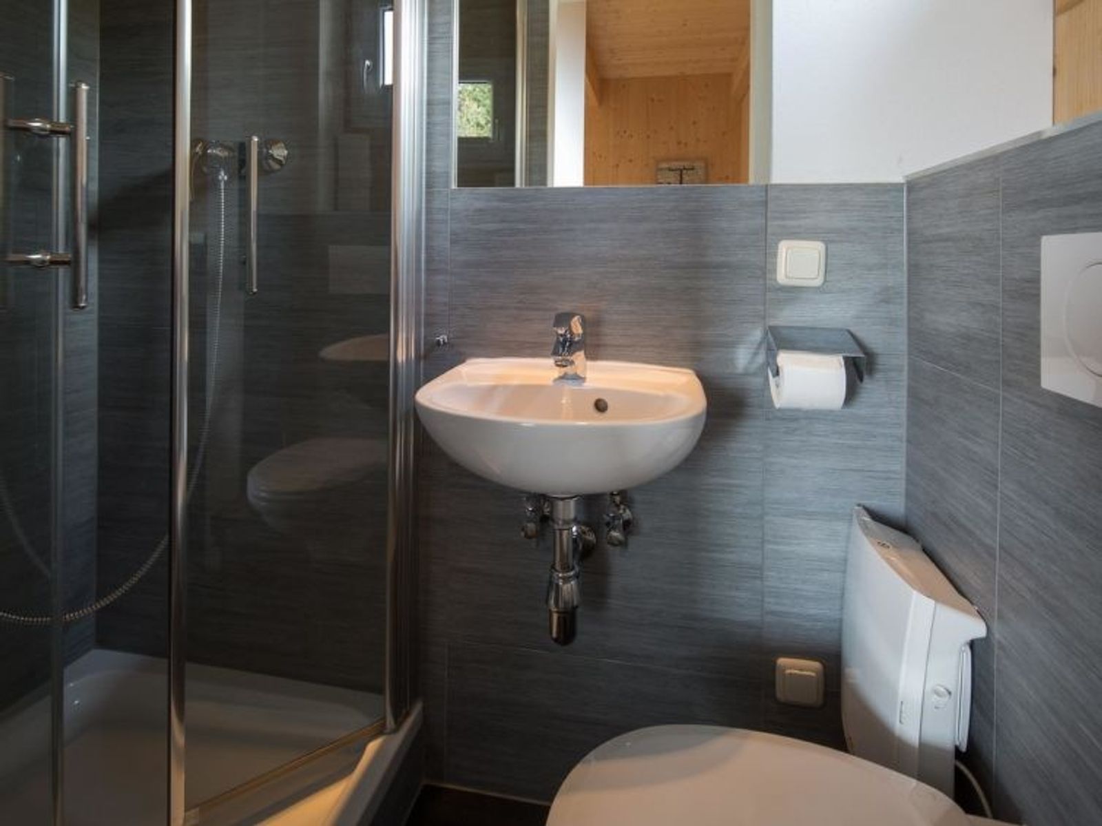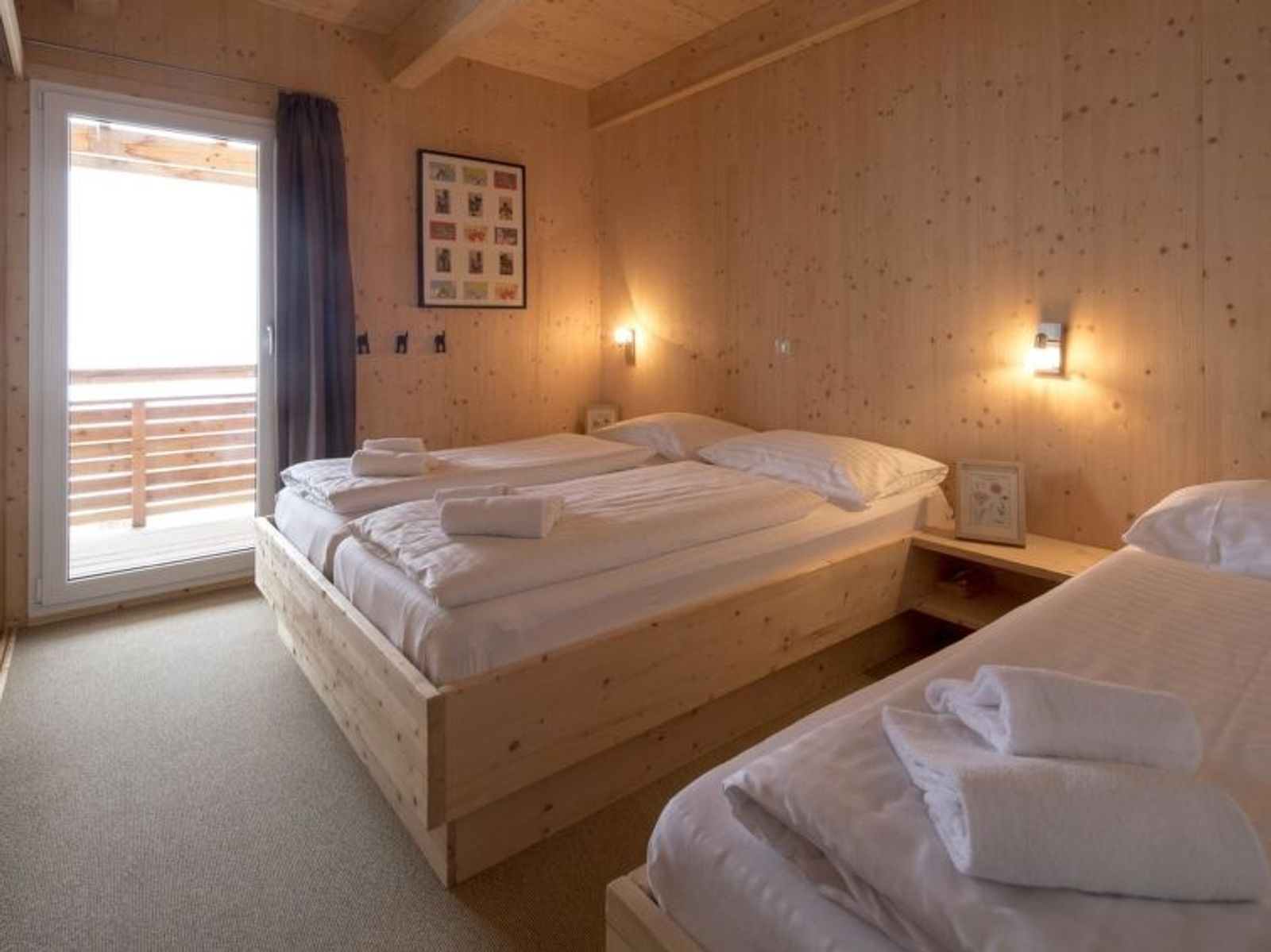 " 5 mit IR-Sauna&Sprudelbad innen", 5-Zimmer-Chalet 120 m2 auf 2 Stockwerken. Luxuriös und geschmackvoll eingerichtet: Wohn-/Esszimmer mit Essecke und Sat-TV (Flachbildschirm). Offene Küche (Backofen, Geschirrspüler, 4 Glaskeramikplatten, Toaster, Wasserkocher, Mikrowelle, elektrische Kaffeemaschine). Dusche/WC. Obergeschoss: 2 Doppelzimmer. 1 Zimmer mit 1 Bett und 1 Doppelbett. 1 Zimmer mit 2 x 2 Etagenbetten. Bad/WC, Dusche/WC, Whirlbadewanne, Sauna. Balkon. Balkonmöbel. Schöne Sicht auf die Berge. Zur Verfügung: Internet (Wireless LAN, gratis). Bitte beachten: Nichtraucher-Unterkunft. Die Sauna ist eine Infrarotkabine!
