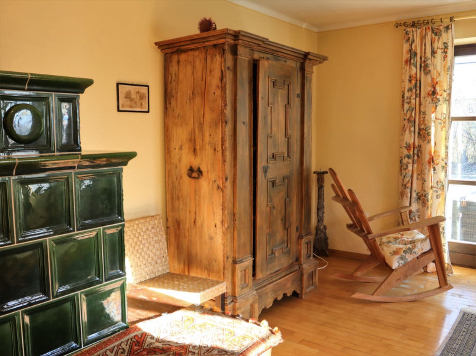 5-Zimmer-Haus 120 m2 auf 2 Stockwerken. Geschmackvoll und gemütlich eingerichtet: 1 Doppelzimmer mit Waschbecken. Grosses Wohnzimmer mit Kabel-TV (Flachbildschirm), Kachelofen. Ausgang zum Garten, zur Terrasse. Dusche, sep. WC. Obergeschoss: Esszimmer mit Schwedenofen, Essecke und Radio. 1 Doppelzimmer. 1 Zimmer mit 2 Betten und Waschbecken. Küche (Backofen, Geschirrspüler, 4 Glaskeramikplatten, Mikrowelle). Sep. WC. E-Heizung. Holzdielenboden. Balkon, Terrasse. Terrassenmöbel, Liegestühle. Sehr schöne Sicht auf die Berge und die Landschaft. Zur Verfügung: Internet (WLAN, gratis). Bitte beachten: Nichtraucher-Haus. Maximal 1 Haustier/Hund erlaubt. Rauchmelder. 50336-000849-2020
