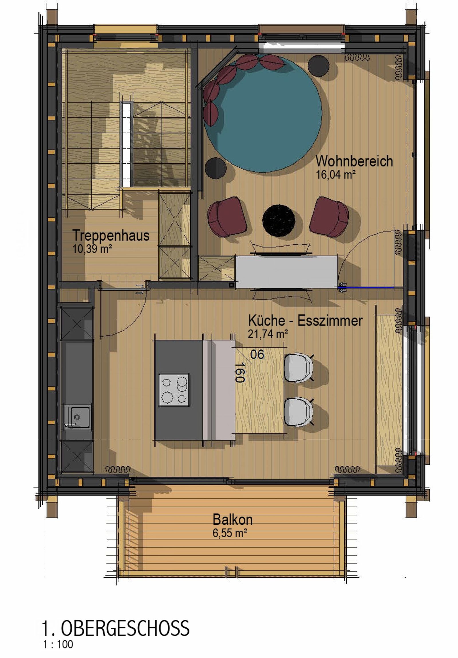 - möblierterBalkon im OG mit Zugang vom Küchen-Essbereich
