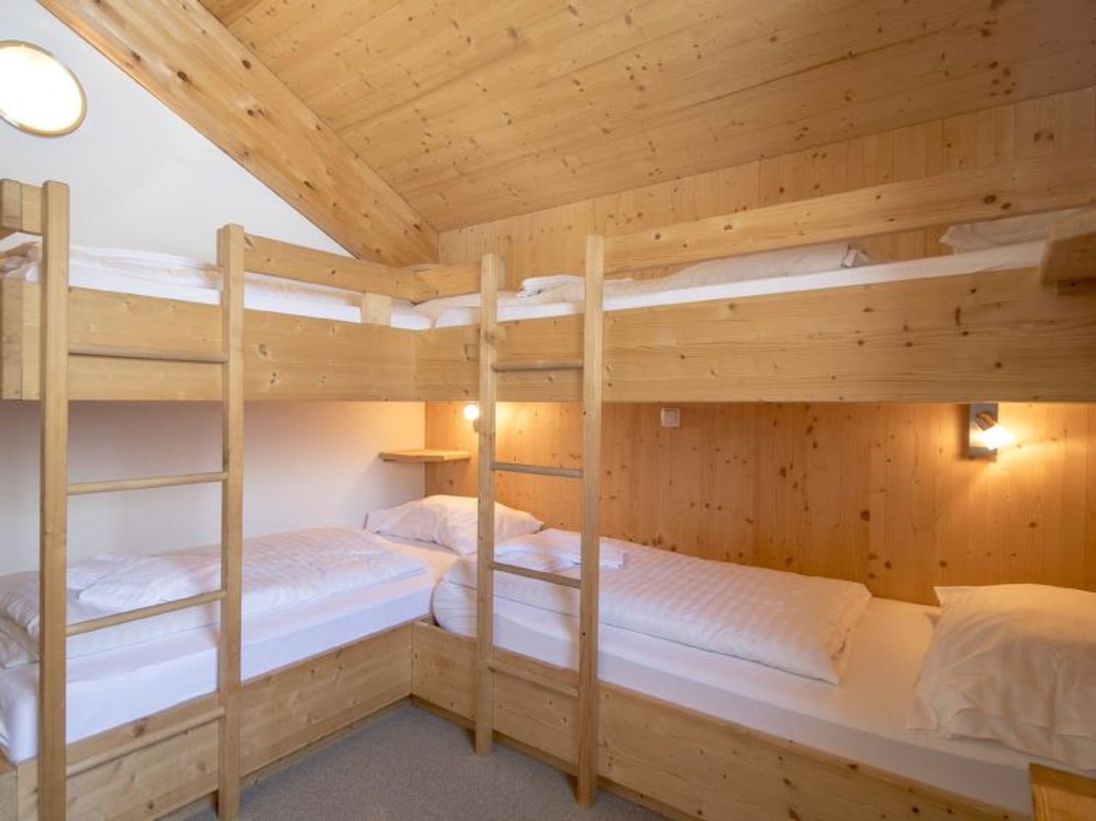 " 19 mit IR-Sauna und Sprudelbad", 5-Zimmer-Chalet 130 m2. Komfortabel und geschmackvoll eingerichtet: offenes Wohn-/Esszimmer mit Essecke, Sat-TV, Flachbildschirm und G-Heizofen. Offene Küche (Backofen, Geschirrspüler, 4 Glaskeramikplatten, Tiefkühler, elektrische Kaffeemaschine). 2 Duschen/WC. Obergeschoss: 2 Doppelzimmer. 1 Zimmer mit 1 Bett und 2 x 2 Etagenbetten. 1 Zimmer mit 2 x 2 Etagenbetten. Dusche/WC, Doppelwaschbecken, Whirlbadewanne, Sauna. Terrasse. Terrassenmöbel. Sicht auf die Berge und die Landschaft. Zur Verfügung: Internet (Wireless LAN, gratis). Parkplatz (2 Autos) beim Haus. Bitte beachten: Nichtraucher-Unterkunft. Beim Mietobjekt handelt es sich um ein Typenhaus bzw. Um eine Typenwohnung. Die Zimmereinteilung kann variieren. Die Sauna ist eine Infrarot Sauna. Der Abstellraum ist der Ski und Waschmaschinenraum. Bei Belegung mit weniger Personen als der maximalen Personenzahl stehen nicht alle Wohneinheiten zur Verfügung.