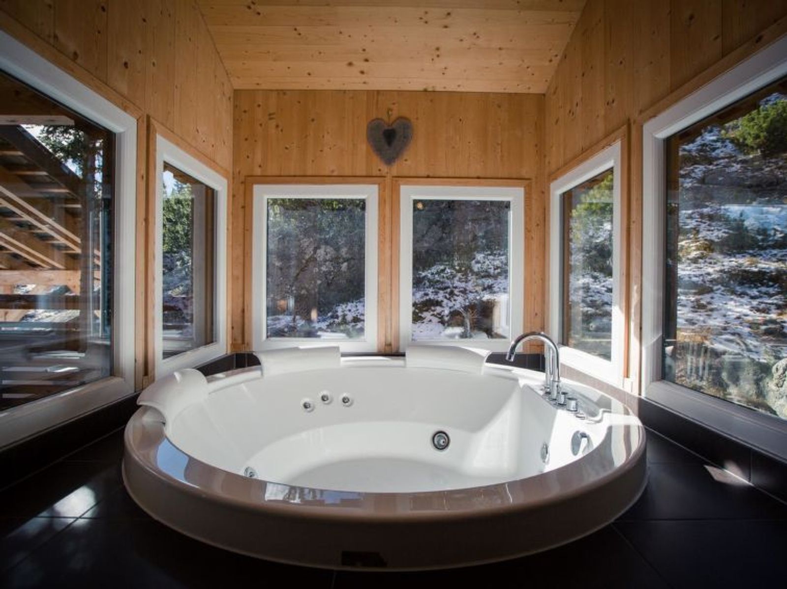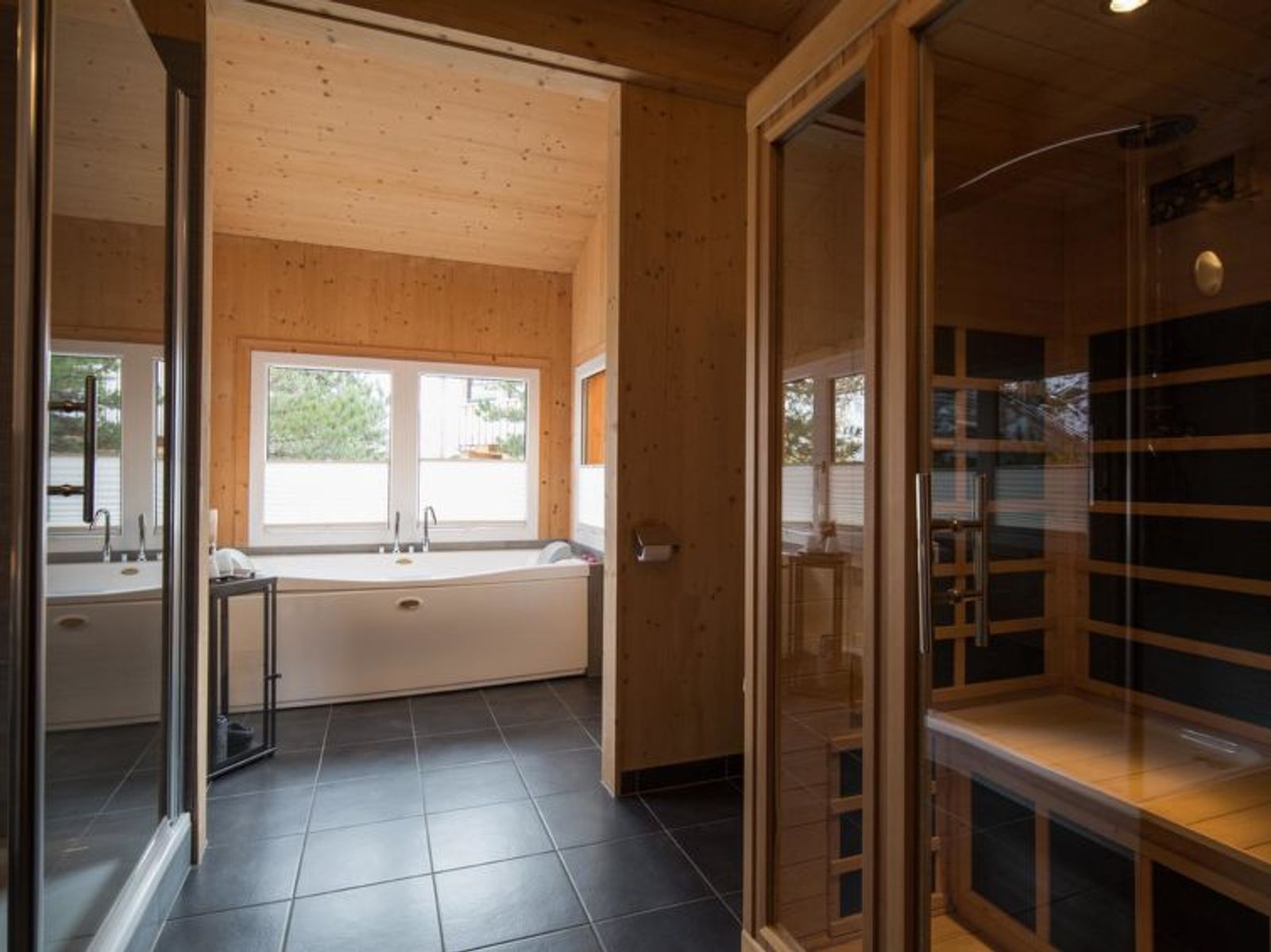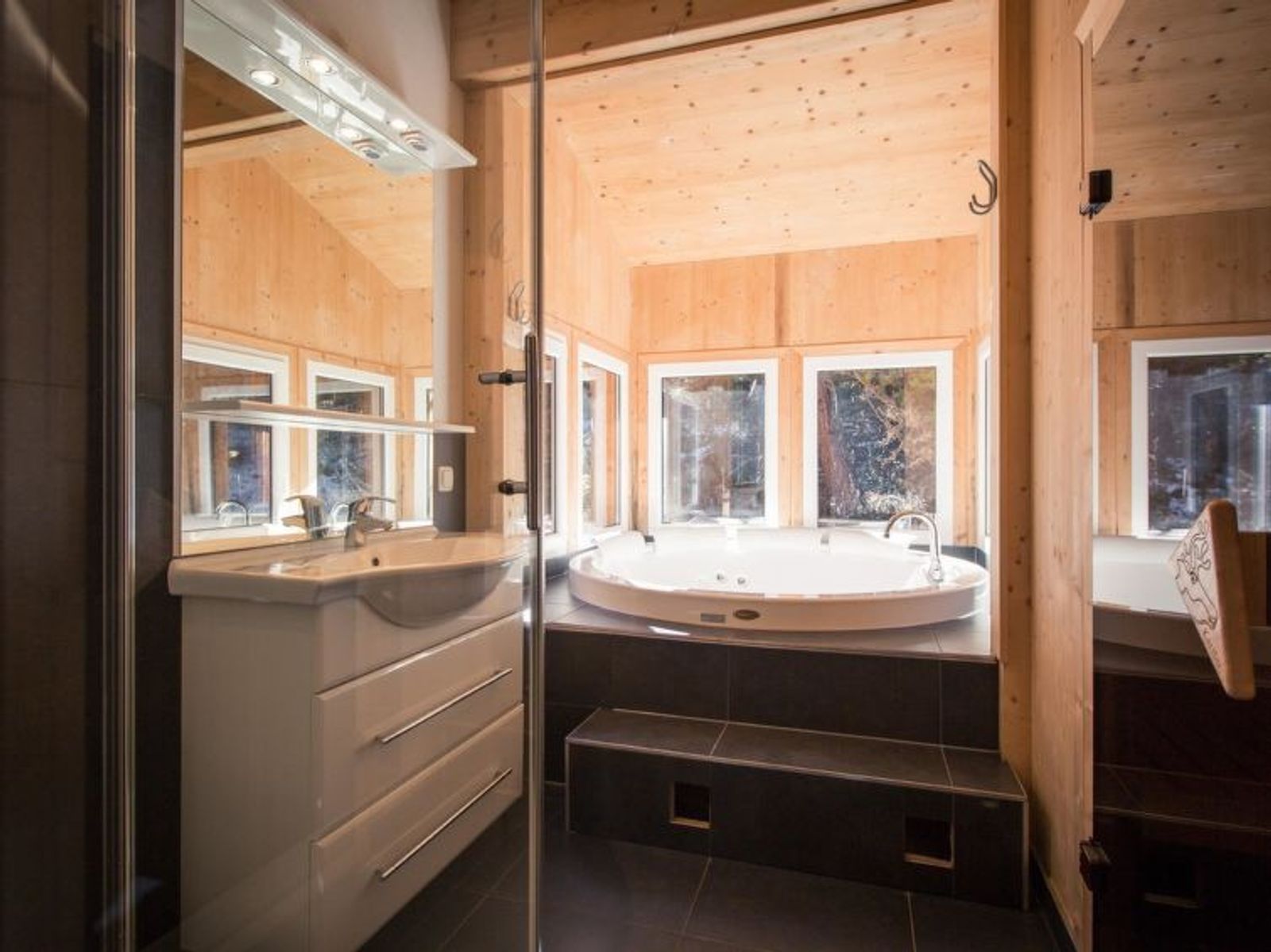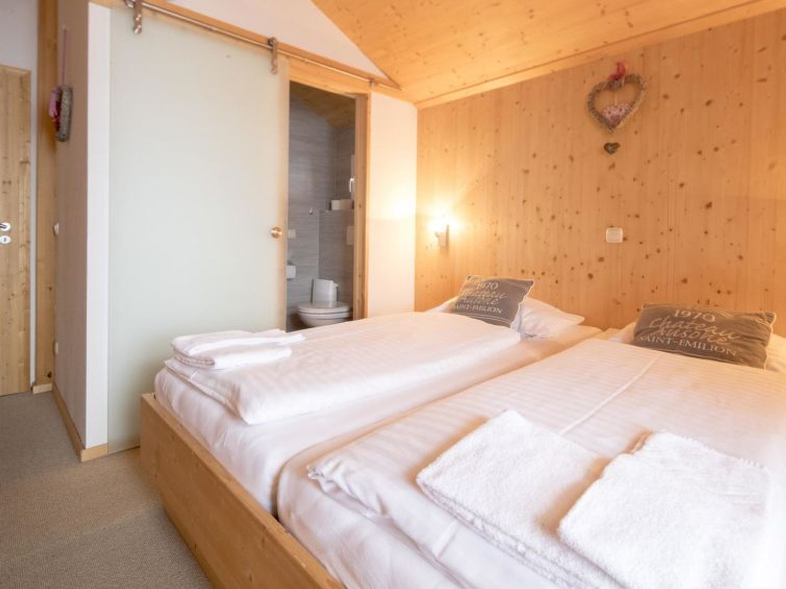 " 1 mit IR-Sauna&Sprudelbad innen", 5-Zimmer-Chalet 120 m2. Luxuriös und geschmackvoll eingerichtet: offenes Wohn-/Esszimmer mit Essecke, Sat-TV und Flachbildschirm. Offene Küche (Backofen, Geschirrspüler, 4 Glaskeramikplatten, Mikrowelle, Tiefkühler, elektrische Kaffeemaschine). 2 Duschen/WC. Obergeschoss: 2 Doppelzimmer. 1 Doppelzimmer mit 1 Bett. 1 Zimmer mit 2 x 2 Etagenbetten. Bad/WC, Whirlbadewanne, Sauna. Balkon Terrasse. Schöne Sicht auf die Berge. Zur Verfügung: Internet (Wireless LAN, gratis). Parkplatz (2 Autos) beim Haus. Bitte beachten: Nichtraucher-Unterkunft. Rauchmelder. Beim Mietobjekt handelt es sich um ein Typenhaus bzw. Um eine Typenwohnung. Die Sauna ist eine Infrarot Sauna.