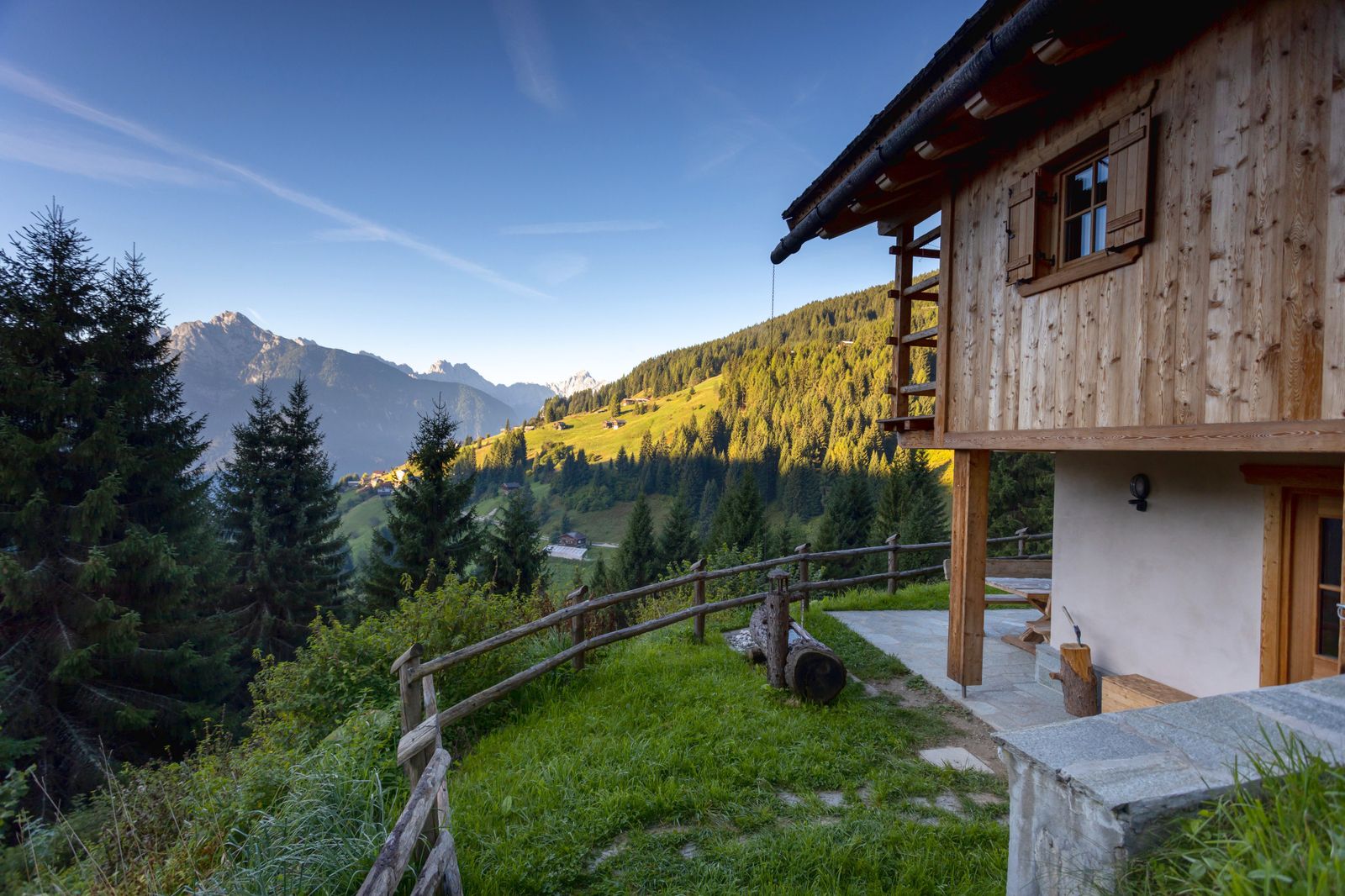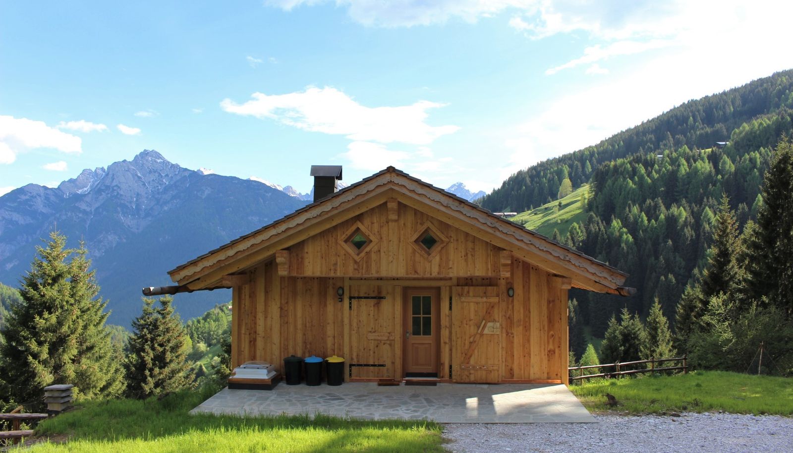 Die Costetoi Hütte liegt auf einer Bergwiese am Waldrand, in einer idyllischen Landschaft. Sie ist sonnig gelegen und hat einen freien Ausblick auf die umliegenden Berge und Wälder.