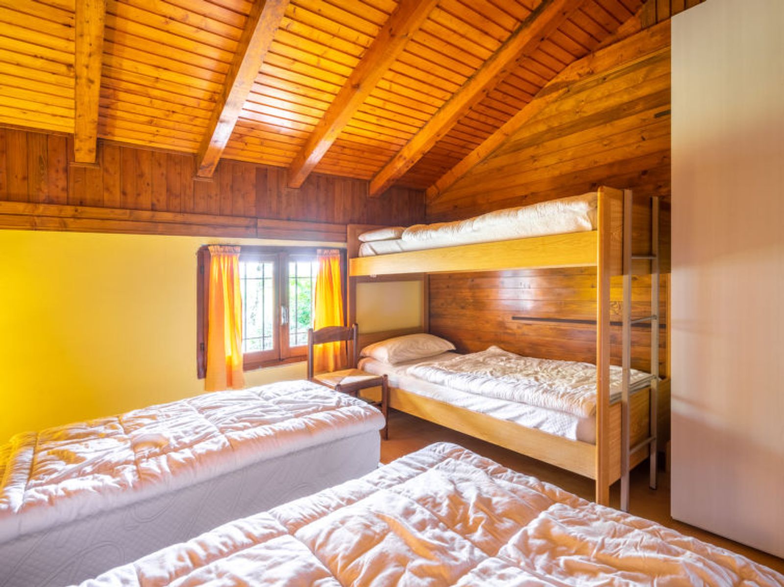 3-Zimmer-Haus 70 m2 auf 2 Stockwerken. Zweckmässig und rustikal eingerichtet: Wohn-/Esszimmer mit offenem Kamin, Esstisch und Sat-TV. Ausgang zum Gartensitzplatz. Kochnische (4 Kochplatten, Backofen, Geschirrspüler, Tiefkühler, elektrische Kaffeemaschine). Dusche/WC. G-Heizung. Dachgeschoss: 1 Doppelzimmer. Ausgang zum Balkon. 1 Zimmer mit 2 Betten und 1 x 2 Etagenbetten. Abgeschrägte, offene Schlafnische, ohne Schrank mit 1 Bett. Balkon, Gartensitzplatz 20 m2, überdacht. Terrassenmöbel, Gartengrill, Liegestühle (2). Panoramasicht auf den See und die Berge. Zur Verfügung: Waschmaschine, Kinderhochstuhl, Babybett bis 2 Jahre. Internet (Wireless LAN, gratis). Bitte beachten: Nichtraucher-Unterkunft. Maximal 2 Haustiere/Hunde erlaubt. Anstelle eines abgeschlossenen Schlafzimmers befinden sich manche Schlafplätze in einem offenen Bereich (Galerie, Nische etc.). IT103066C2TXVCSI5P