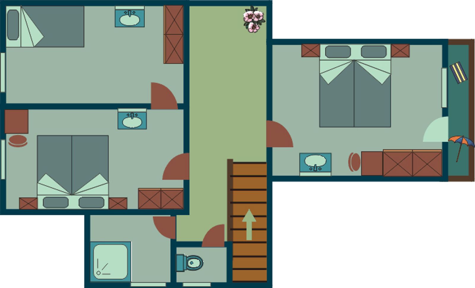 - 1 Schlafzimmer mit Doppelbett und Einzelbett im 1. OG