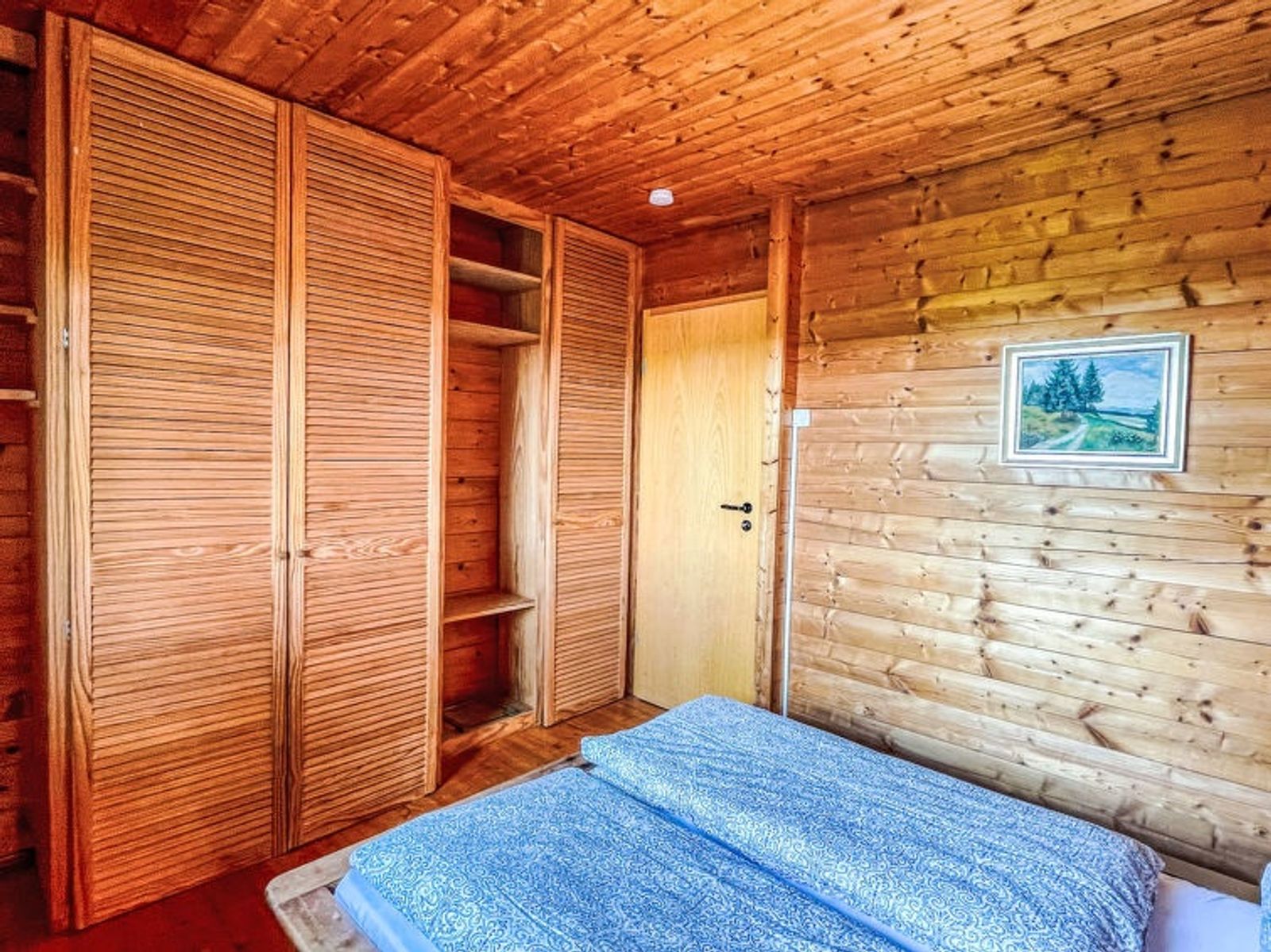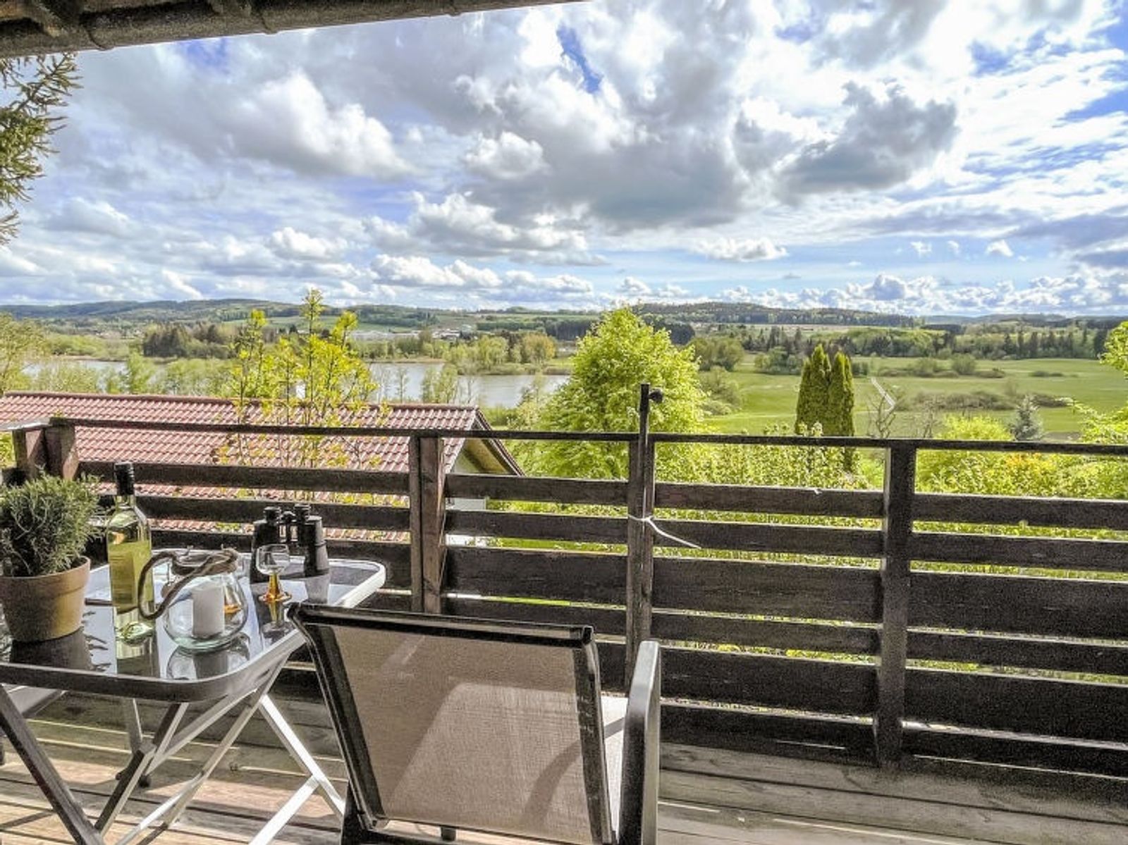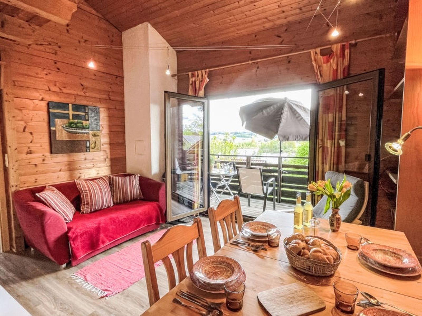 "Alpenblick", 3-Zimmer-Haus 58 m2. Objekt geeignet für 2 Erwachsene + 2 Kinder. Einfach und mit viel Holz eingerichtet: Wohn-/Esszimmer mit Sat-TV (Flachbildschirm). Ausgang zum Balkon. 1 kleines Zimmer mit 1 franz. Bett (1 x 140 cm, Länge 200 cm). 1 kleines Zimmer mit 1 x 1 Etagenbetten (140 cm, Länge 200 cm). Küche (Backofen, Geschirrspüler, 4 Induktionskochplatten, Toaster, Wasserkocher, Tiefkühler, elektrische Kaffeemaschine). Dusche/WC. E-Heizung. Unteres Geschoss: sep. WC. E-Heizung. Holzdielenboden. Balkon, Terrasse. Terrassenmöbel, Gartengrill, Liegestühle (2). Herrliche Sicht auf die Landschaft und Ruschweiler See. Zur Verfügung: Waschmaschine, Kinderhochstuhl, Babybett. Internet (WLAN, gratis). Bitte beachten: Nichtraucher-Unterkunft. Rauchmelder. Bitte beachten: Die Betten in beiden Schlafzimmern sind schmal (140 x 200 cm)! Unsere Empfehlung: Belegung mit maximal 2 Erwachsenen und 2 Kindern.