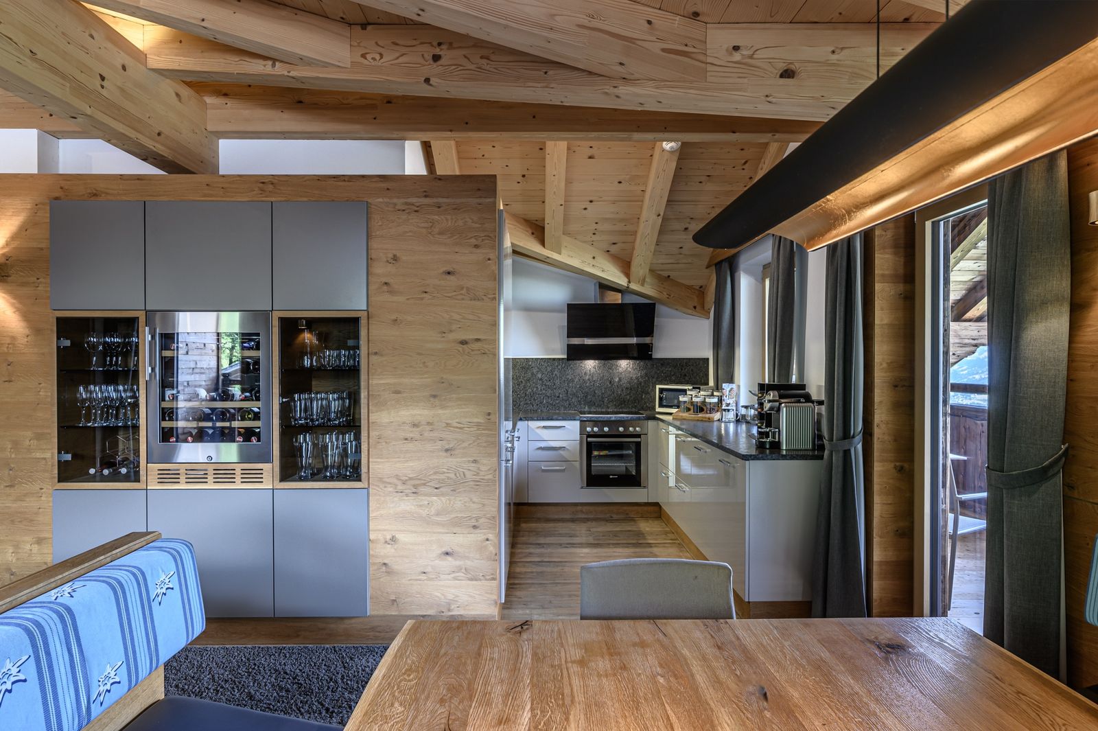 - eine voll ausgestattete Küche mit Nespresso-Maschine, Weinklimaschrank und Teebar